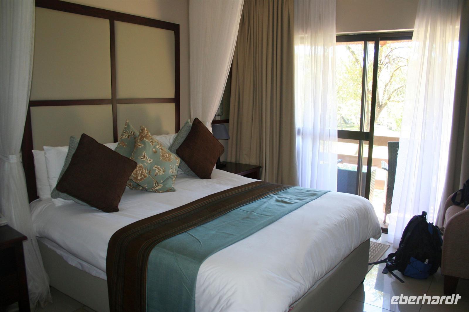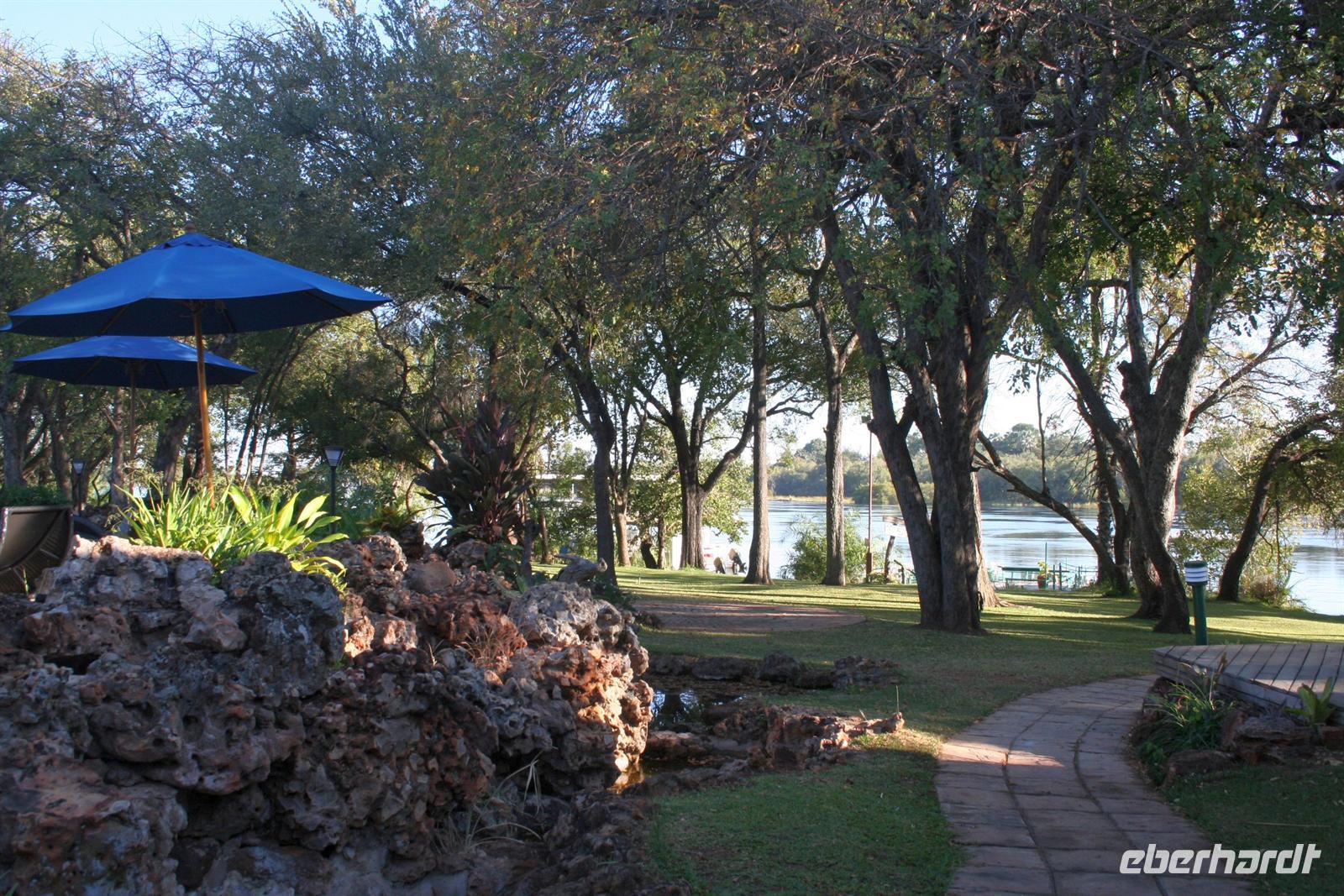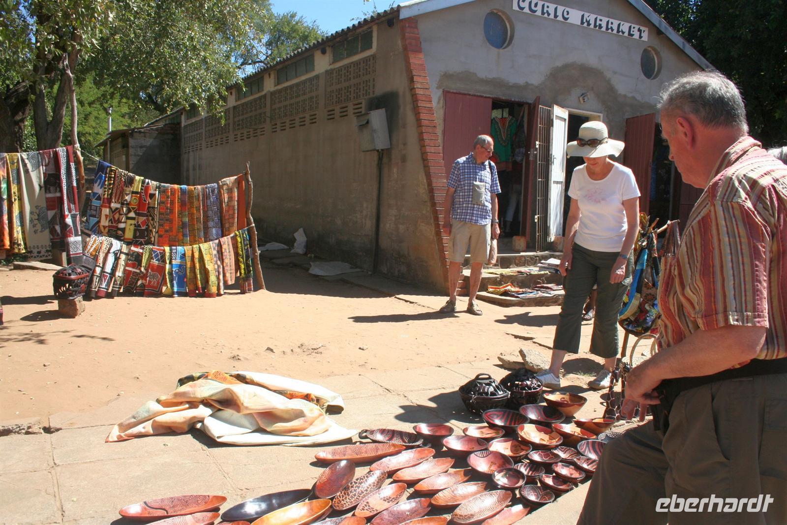 Am Denkmal von David Livingstone erfuhren wir mehr zu Geschichte der Region und der Fälle. Nach eigenen, mehr oder weniger feuchten Entdeckungen der Wasserfälle, trafen wir uns uns wieder, um im Städtchen Vic Falls, welches ausschließlich vom Tourismus lebt, und dem hiesigen lokalen Markt einen Besuch abzustatten. Hier wurde natürlich gefeilscht und das ein oder andere Souvenir im intensiven Verkaufsgespräch erworben. Am frühen Nachmittag checkten wir in unserer luxuriösen "A`Zambesi River Lodge" ein.