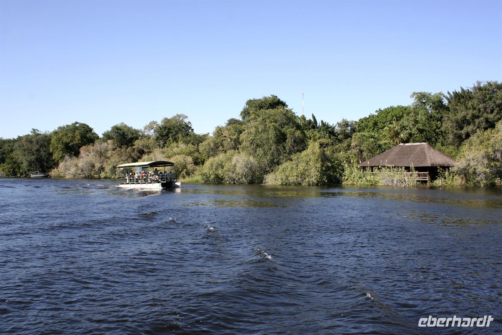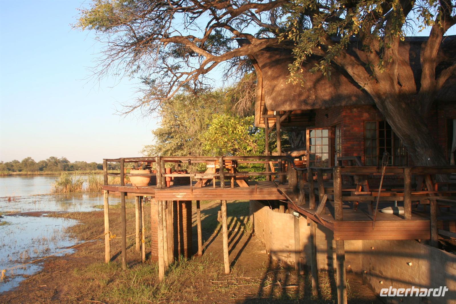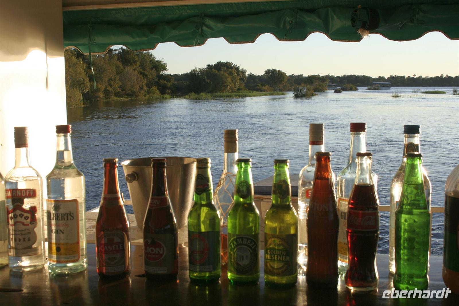 In der komfortablen Lodge, mitten einer gepflegten, blumenreichen Gartenanlage mit Pool und direkt am Ufer gelegen, fühlten wir uns sofort wohl und genossen eine Tasse Kaffee auf unseren Terrassen oder Balkonen. Nach einer Ruhepause trafen wir uns am hoteleigenen Bootssteg und unternahmen eine fantastische Bootscruise auf dem Zambesi. Dabei wurden wir mit Getränken und kleinen Snacks fürsorglich bewirtet. Als Entree stieß unsere Gruppe mit einem Gin & Tonic an. Der letzte Abend unserer Reise konnte nicht schöner beginnen.
