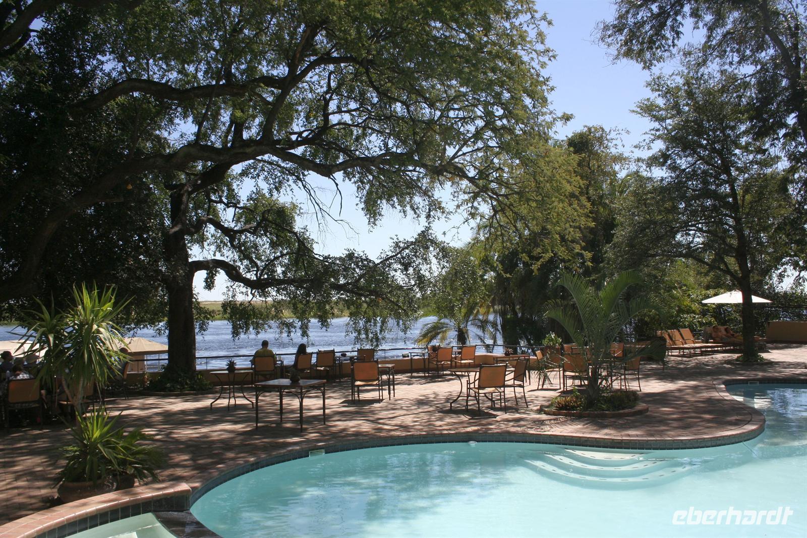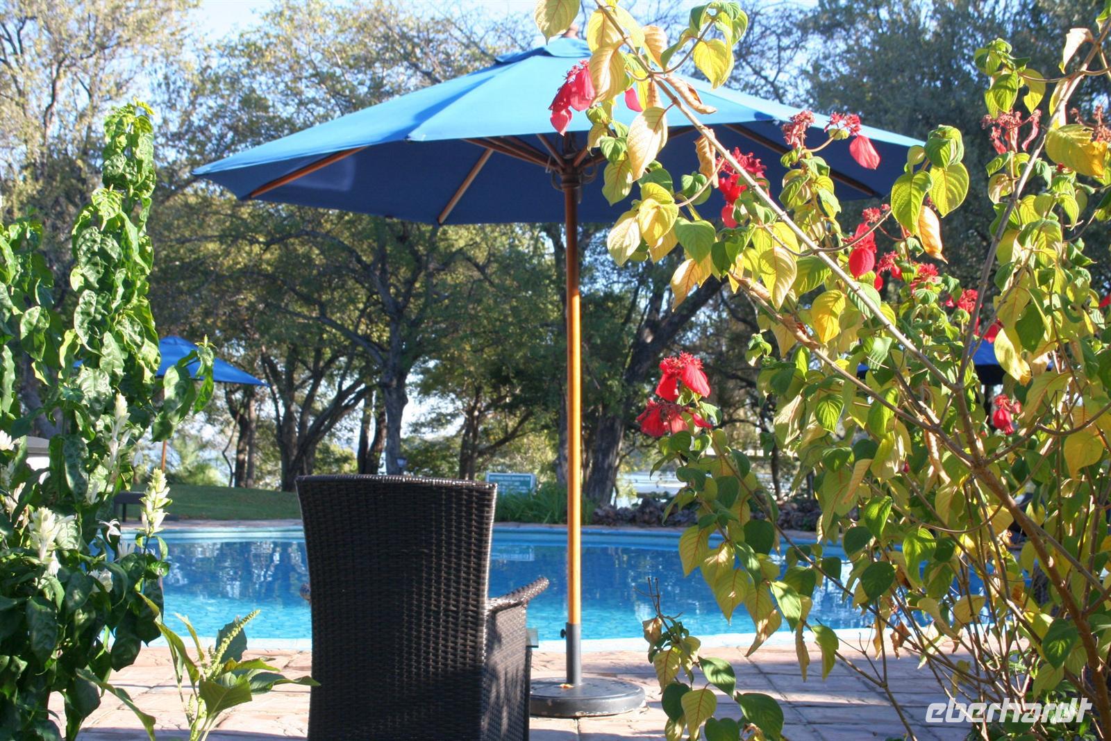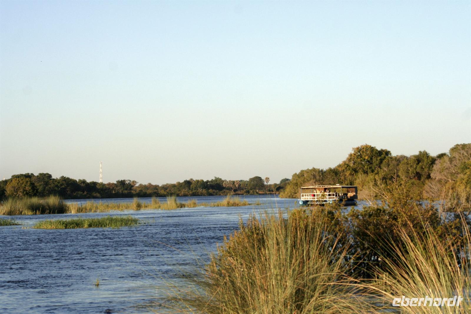 In der komfortablen Lodge, mitten einer gepflegten, blumenreichen Gartenanlage mit Pool und direkt am Ufer gelegen, fühlten wir uns sofort wohl und genossen eine Tasse Kaffee auf unseren Terrassen oder Balkonen. Nach einer Ruhepause trafen wir uns am hoteleigenen Bootssteg und unternahmen eine fantastische Bootscruise auf dem Zambesi. Dabei wurden wir mit Getränken und kleinen Snacks fürsorglich bewirtet. Als Entree stieß unsere Gruppe mit einem Gin & Tonic an. Der letzte Abend unserer Reise konnte nicht schöner beginnen.