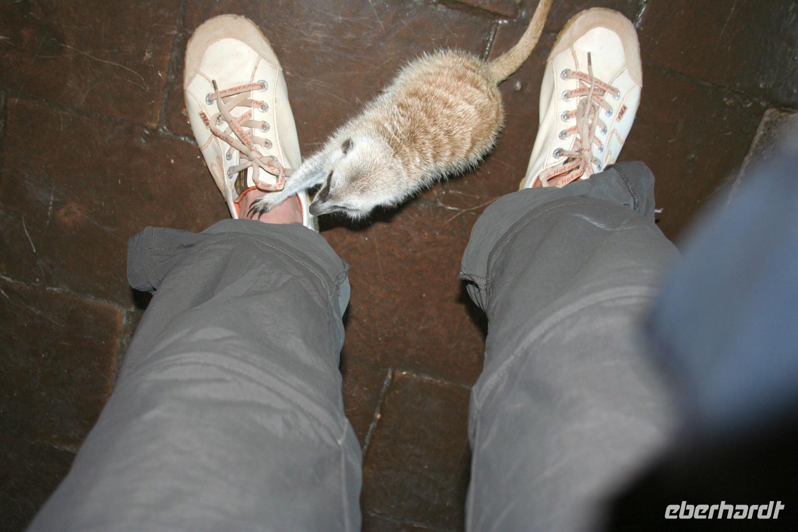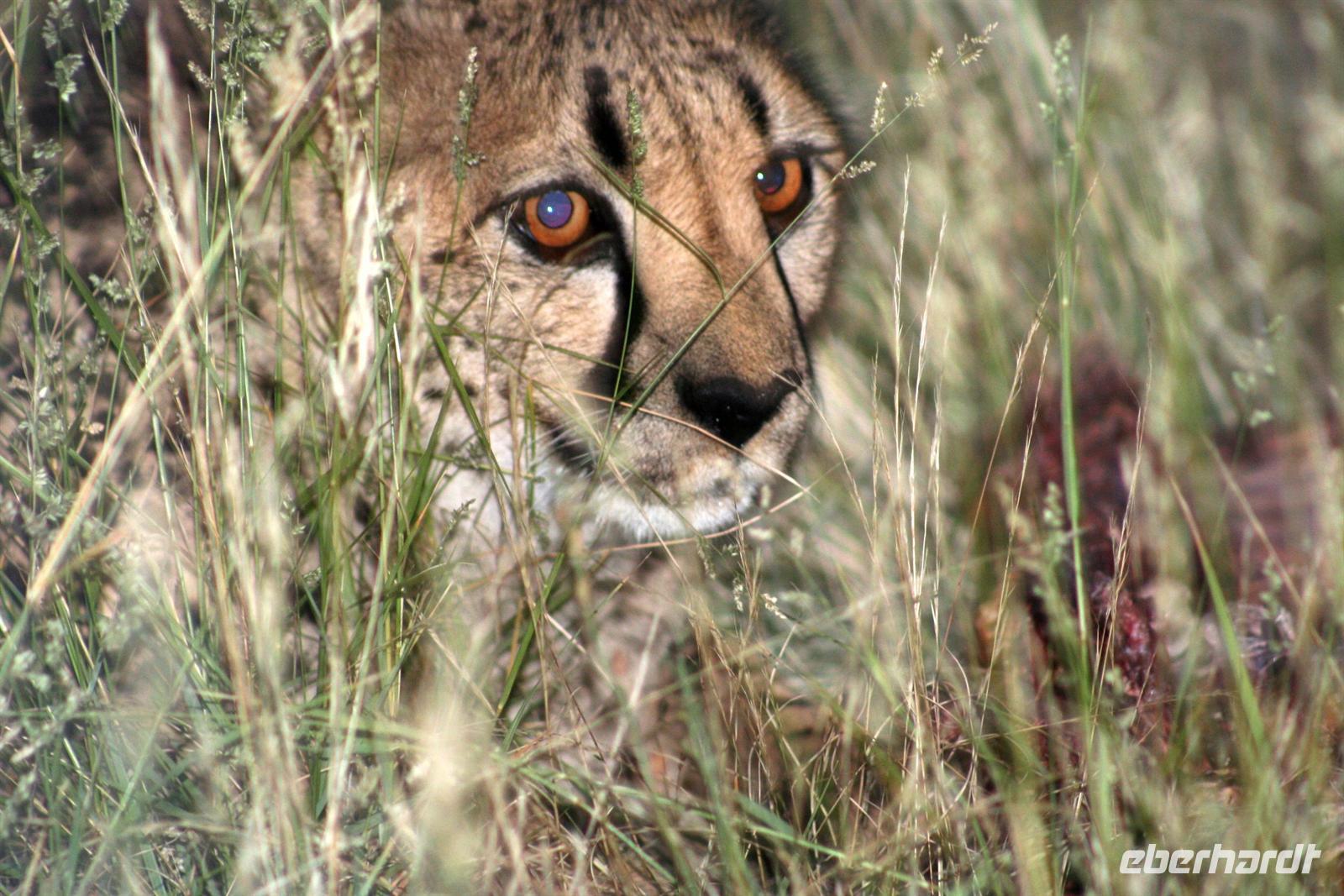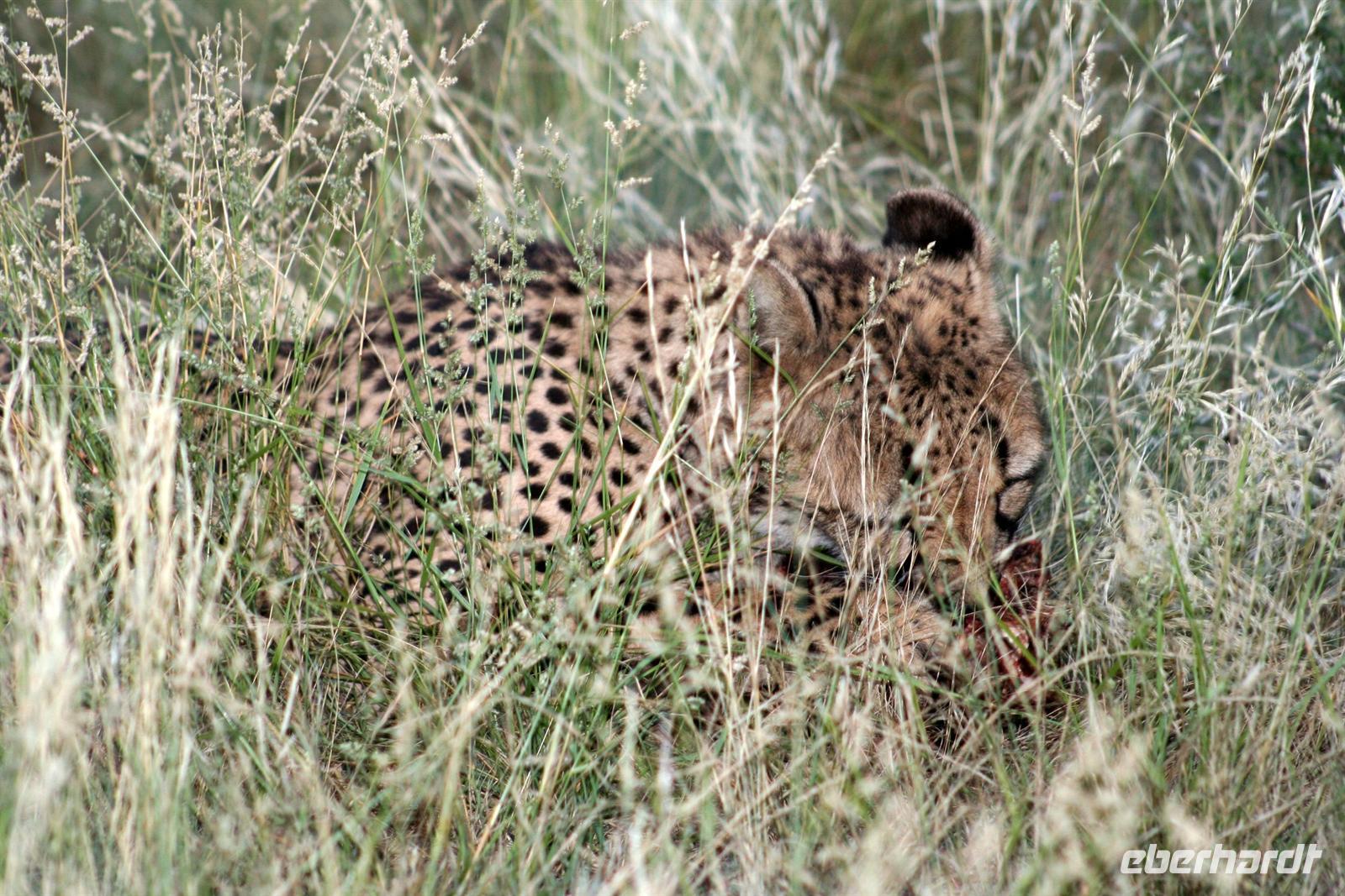 Am nächsten Tag fuhren wir in den Namib Naukluft Park. Am "Verkehrsknotenpunkt" Maltahöhe, einer ehemaligen Station der deutschen Schutztruppe, machten wir halt und verewigten uns an der Wand des kleinen Cafes. In der "Hammerstein Lodge" angekommen, begrüßte uns "Daisy", ein zahmes Springbockmädchen ohne Hörner. Entspannt beschnupperte Daisy unsere Inge, nur mich konnte sie nicht leiden. Am Nachmittag gingen wir auf "Katzentour". Wir durchstreiften das Gelände und begegneten African Wildcats, dem Leopard "Susi" und einem Gepardenpaar, welches sich durch uns nicht stören liess.