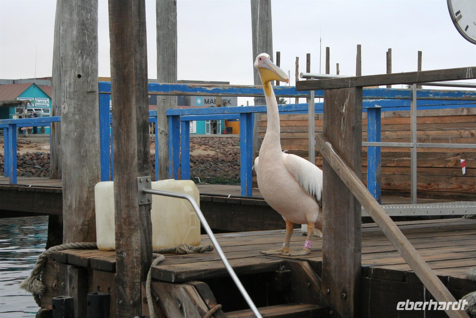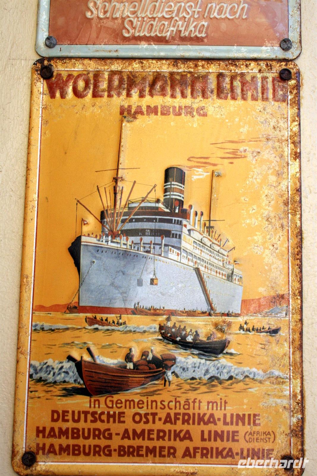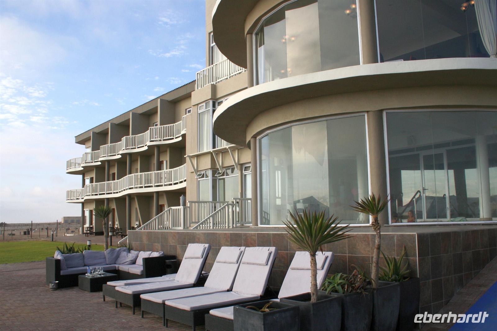Besonders das Robbenmädchen "Bubble" hatte uns es uns angetan und folgte aufmerksam den Informationen über die Bucht und die Austernzucht. Wir genossen den lohnenden Ausflug mit allen Sinnen. Zwischendurch wurden wir mit Kaffee, Tee, Sherry und Sekt und kleinen Leckereien bewirtet. Natürlich probierten wir auch frische Austern. Eine Handvoll Franzosen stürzte sich ungeniert auf die Delikatesse, als ob sie sich die letzten Tage nur von Wasser ernähren mußten. Am Nachmittag begann unsere Entdeckungstour durch Swakopmund, dem Küstenstädtchen mit deutscher Vergangenheit: Woermann-Haus mit Damaraturm, Bahnhof, "Ritterburg", Altes Amtsgericht, Leuchtturm, Hohenzollern-Haus und Prinzessin-Rupprecht-Haus. Später trafen wir uns an der "Jetty", der alten Seebrücke am Atlantik und erlebten den Sonnenuntergang bei einem Glas Rotwein. Zum Abendessen waren wir Gäste im urigen Restaurant "The Tug", direkt an der Beach.