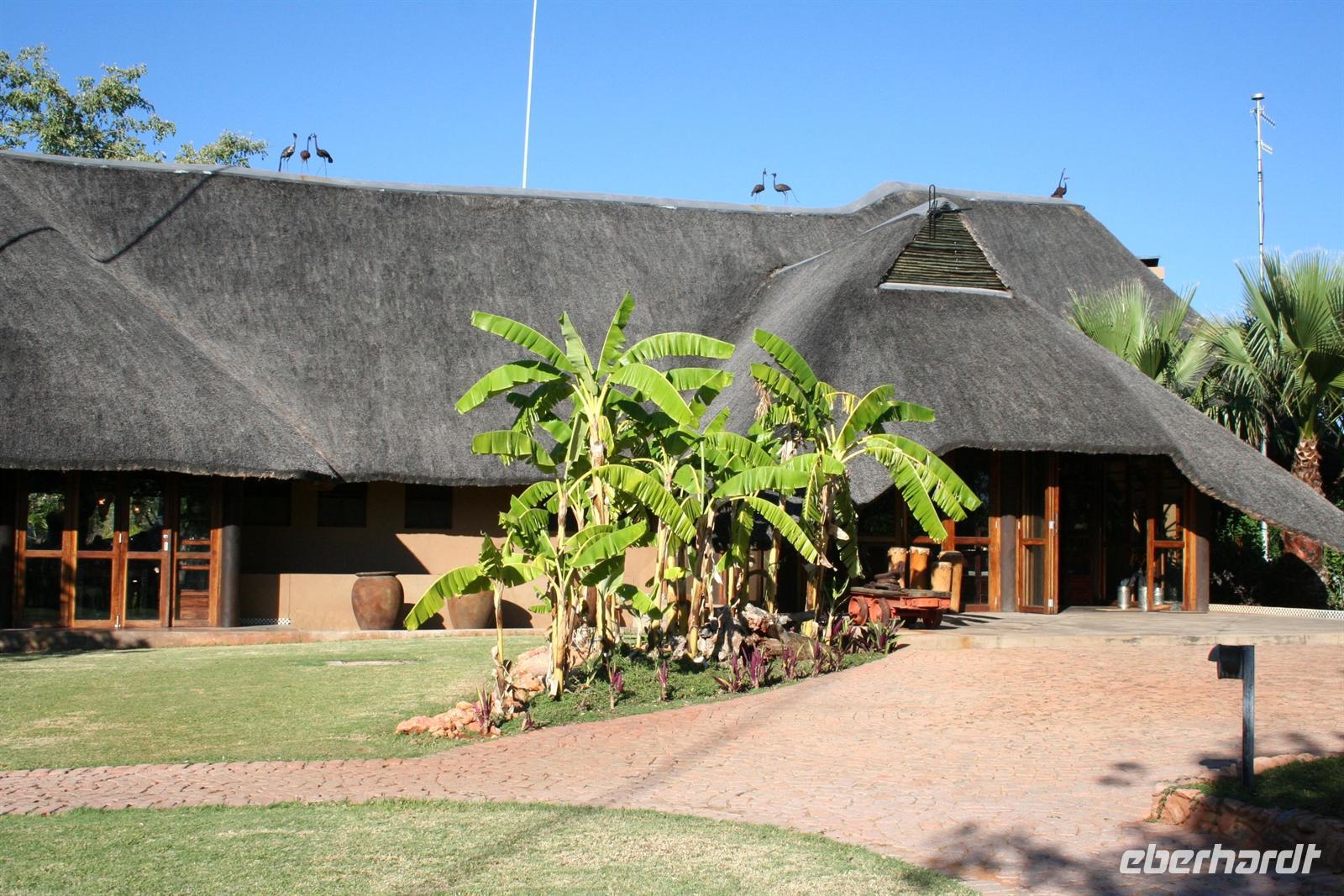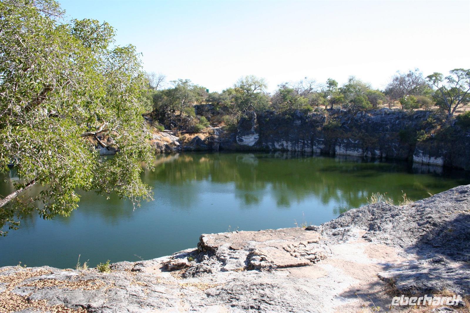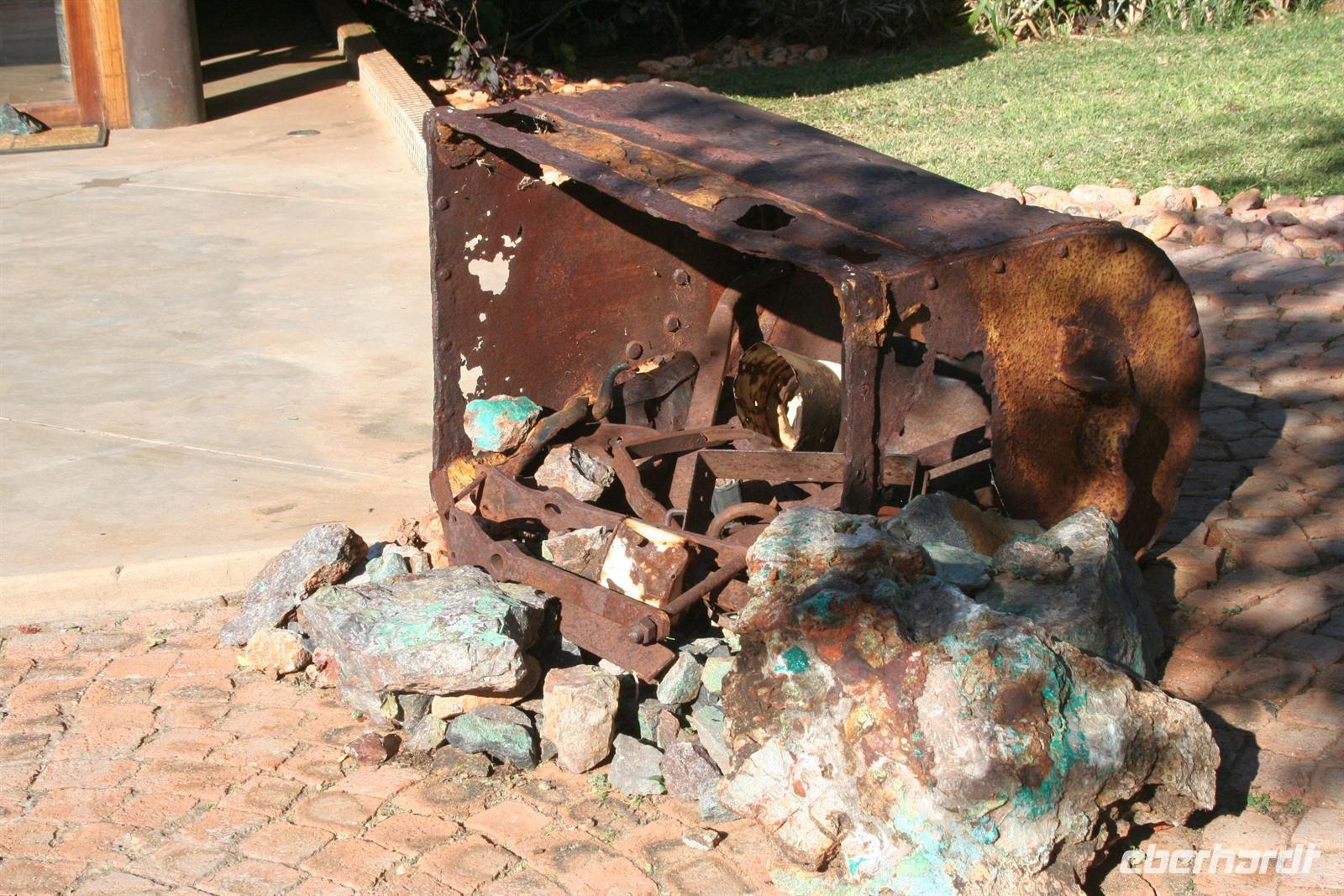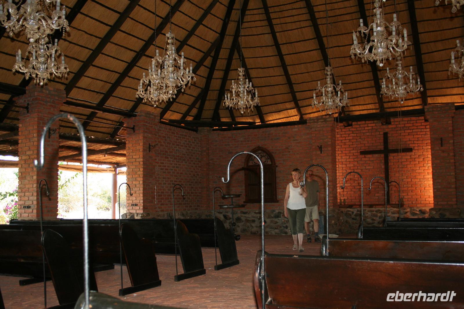 Von den vielen Tierbeobachtungen müde, machten die meisten ein Nickerchen im Bus. Am Nachmittag besichtigten wir den Otjikoto-See, in dem noch viele Hinterlassenschaften der deutschen Schutztruppe vermutet werden. Am Nachmittag erreichten wir die komfortable "Uris Safari Lodge", die sich auf dem Gelände einer alten Kupfermine befindet. Einige erkundeten die Umgebung, besichtigten die Freiluftkirche und durften in den privaten Weinkeller eintreten, der nur Platz für max. 5 Personen bietet. Die Vorräte waren leider aufgebraucht, da in der Lodge am Wochenende eine Hochzeit stattfand. Dennis, der charmante Rezeptionist zeigte uns anschließend die steinernen Schätze der Mine. Am Abend wurden wir an einer zauberhaft gedeckten Tafel bewirtet und die Mitarbeiter boten uns ein kleines Kulturprogramm.