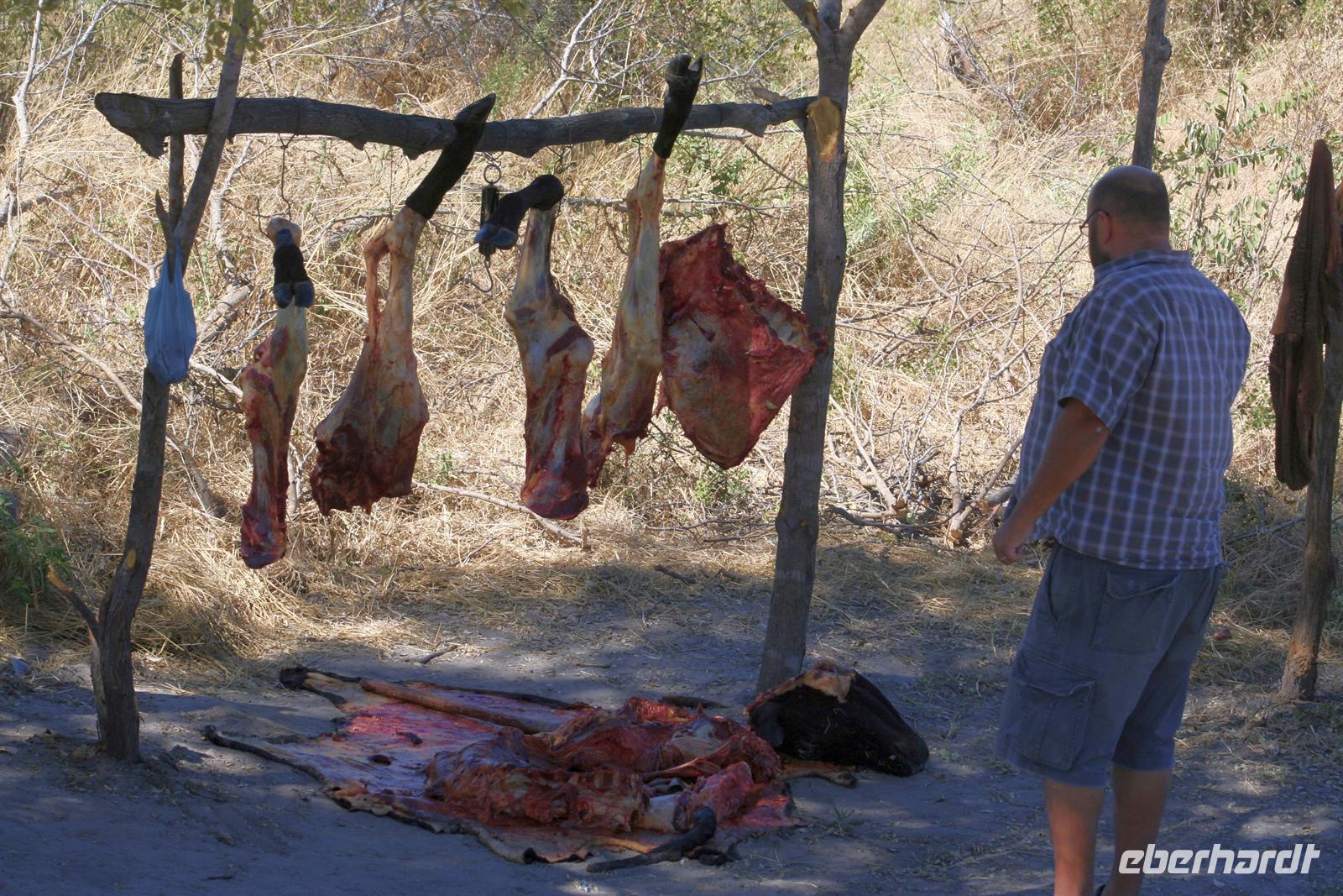 Vorbei an Tsumeb gelangten wir nach Grootfontein (große Quelle - den Namen erhielt die Stadt von den Buren), ein wichtiger Vorposten der Deutschen zum Caprivizipfel. Unterwegs hielten wir mehrmals am Straßenrand und durchstöberten die Stände der berühmten Holzschnitzer. Von den Einheimischen wurden wir neugierig und freundlich begrüßt.