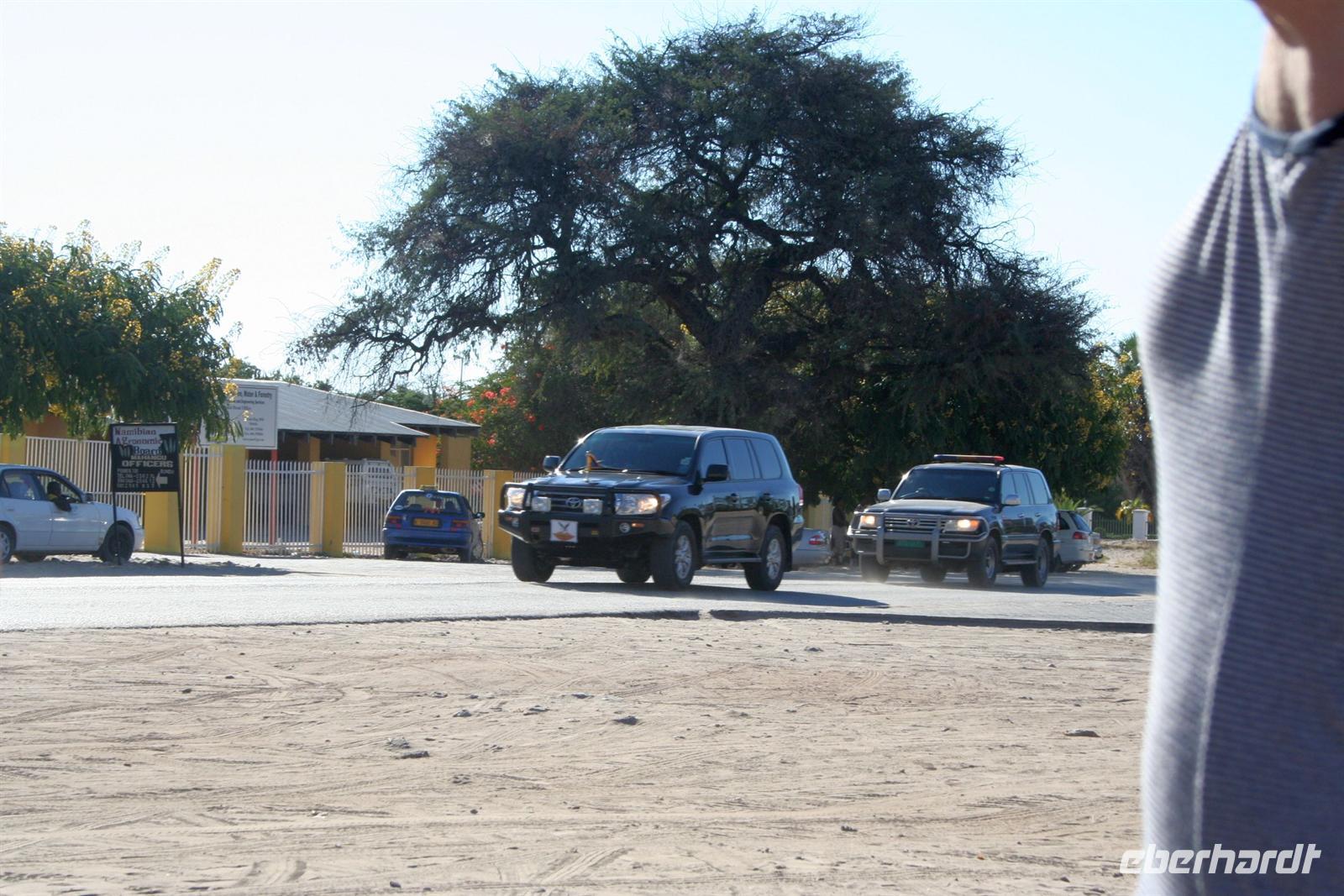 Bald gelangten wir nach Rundu, wo der Okavango die Grenze zu Angola bildet. Hier mußten wir wegen einer Straßensperre eine Zwangspause einlegen. Der Präsident von Namibia war zu Gast und fuhr in seinem gepanzerten Allradfahrzeug mit Staatsflaggge an uns vorbei. Etwas außerhalb von Rundu, direkt am Flussufer befindet sich die Kaisosi Lodge, wo wir nächtigten. Von hier konnten wir den kleinen Grenzverkehr nach Angola beoabachten.