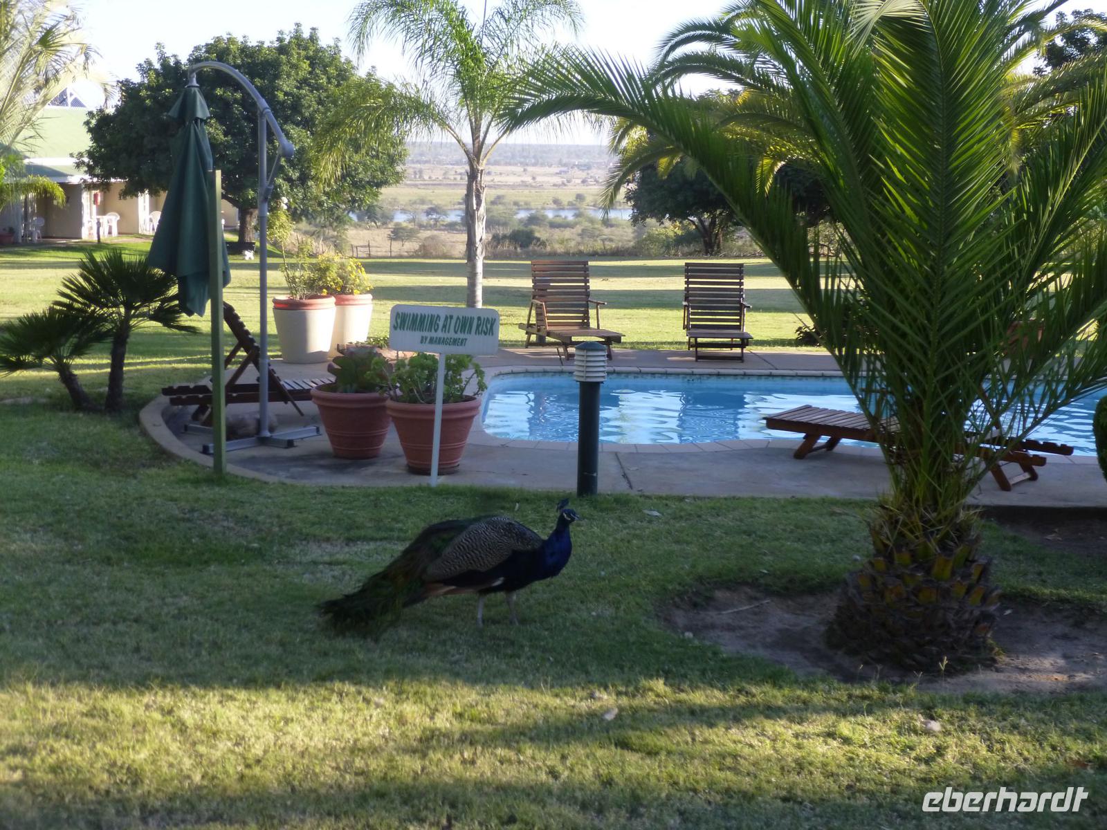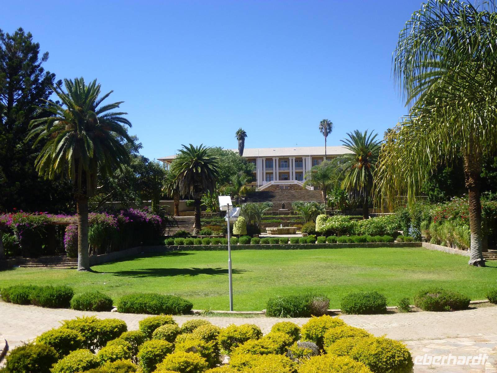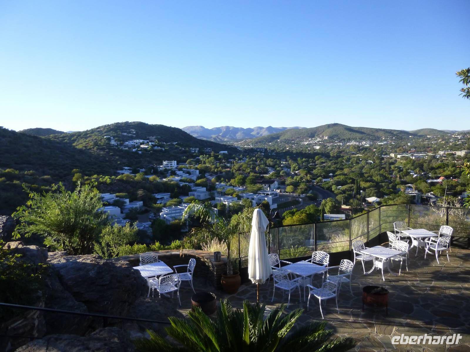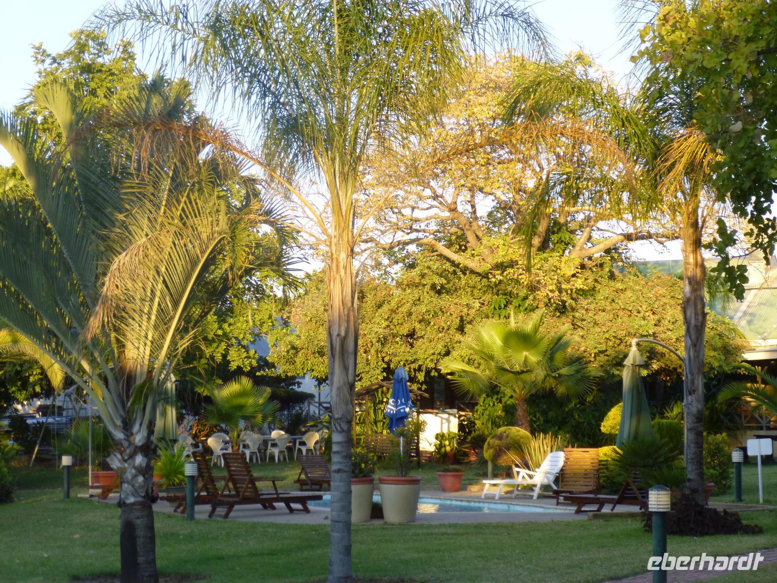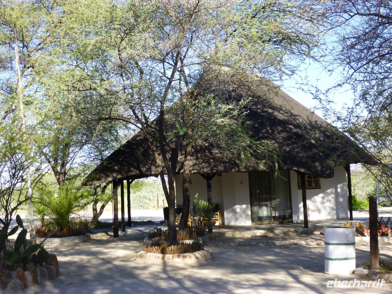 Wir freuen uns auf unsere Reise nach Namibia, Botswana und Zimbabwe. Unsere erste Station ist Windhoek. Wir sind alle sehr müde. Heute ist Sonntag und wir hatten das Gefühl, allein in der Stadt zu sein. Während unserer kleinen Rundfahrt sahen wir den Tintenpalast, die alte Festung, das Reiterdenkmal und die Christuskirche. Wir waren sehr erstaunt über das neu gebaute Unabhängigkeitsmuseum. Wir erreichen das Hotel "Thule". Es verfügte über eine schöne Lage oberhalb der Stadt. Wir nutzten die Zeit bis zum Abendessen für eine kleine Abkühlung im Pool oder einfach dafür, einen Kaffee zu trinken und zu relaxen. Nicht weit vom Hotel entfernt, besuchten wir am Abend Joes´Bierhaus. Das urige Restaurant ist ein Muss für jeden Touristen, der Windhoek besucht. Auch für uns war es ein Erlebnis, die verschieden eingerichteten Räumlichkeiten zu bestaunen. Wir konnten aus der Karte ein Gericht wählen und entschieden uns für einen Wildspieß mit verschiedenen Wildspezialitäten wie Zebra, Strauß, Krokodil, Onyx und Kudu. Jetzt freuten wir uns alle auf unser Bett.