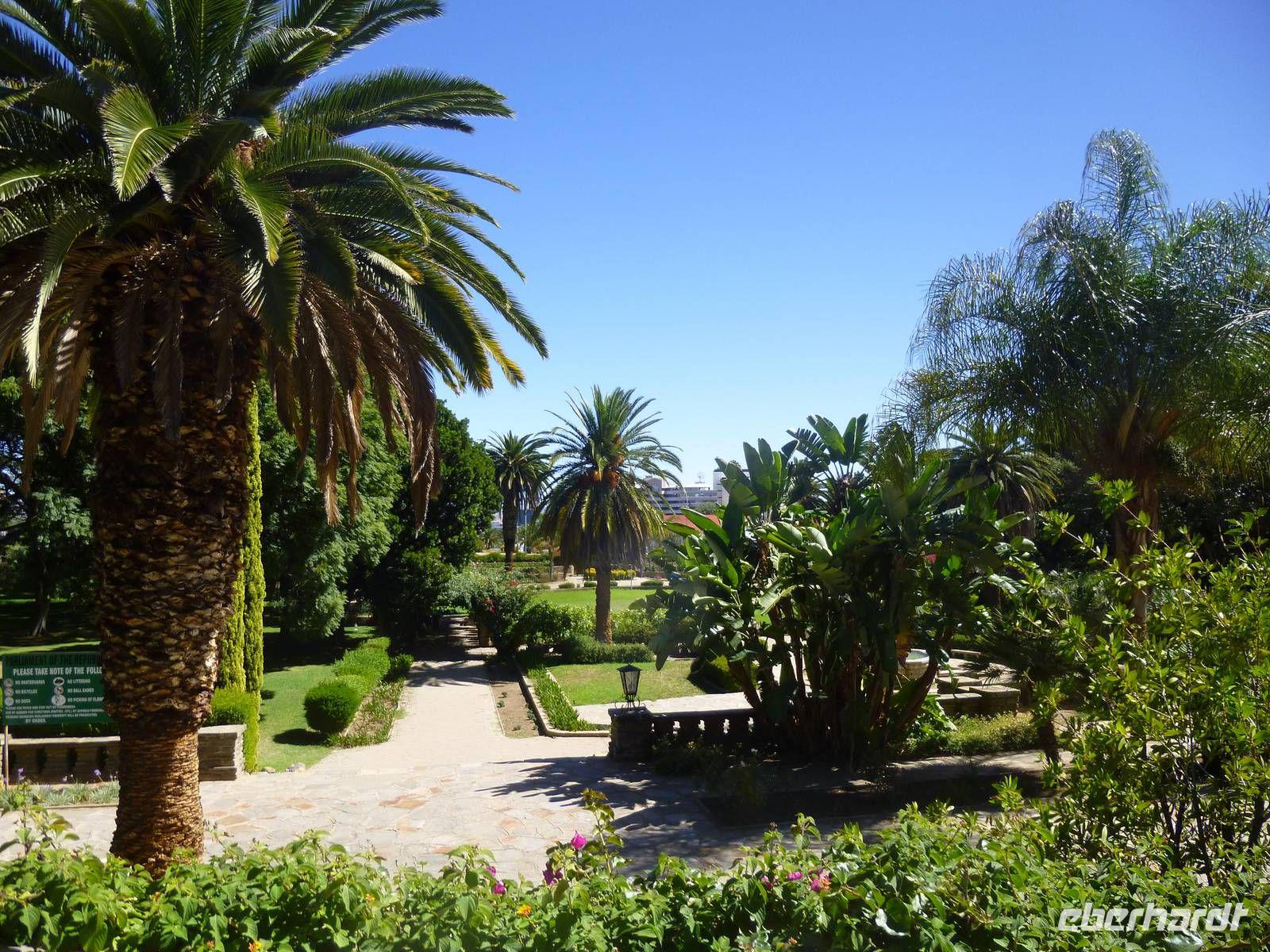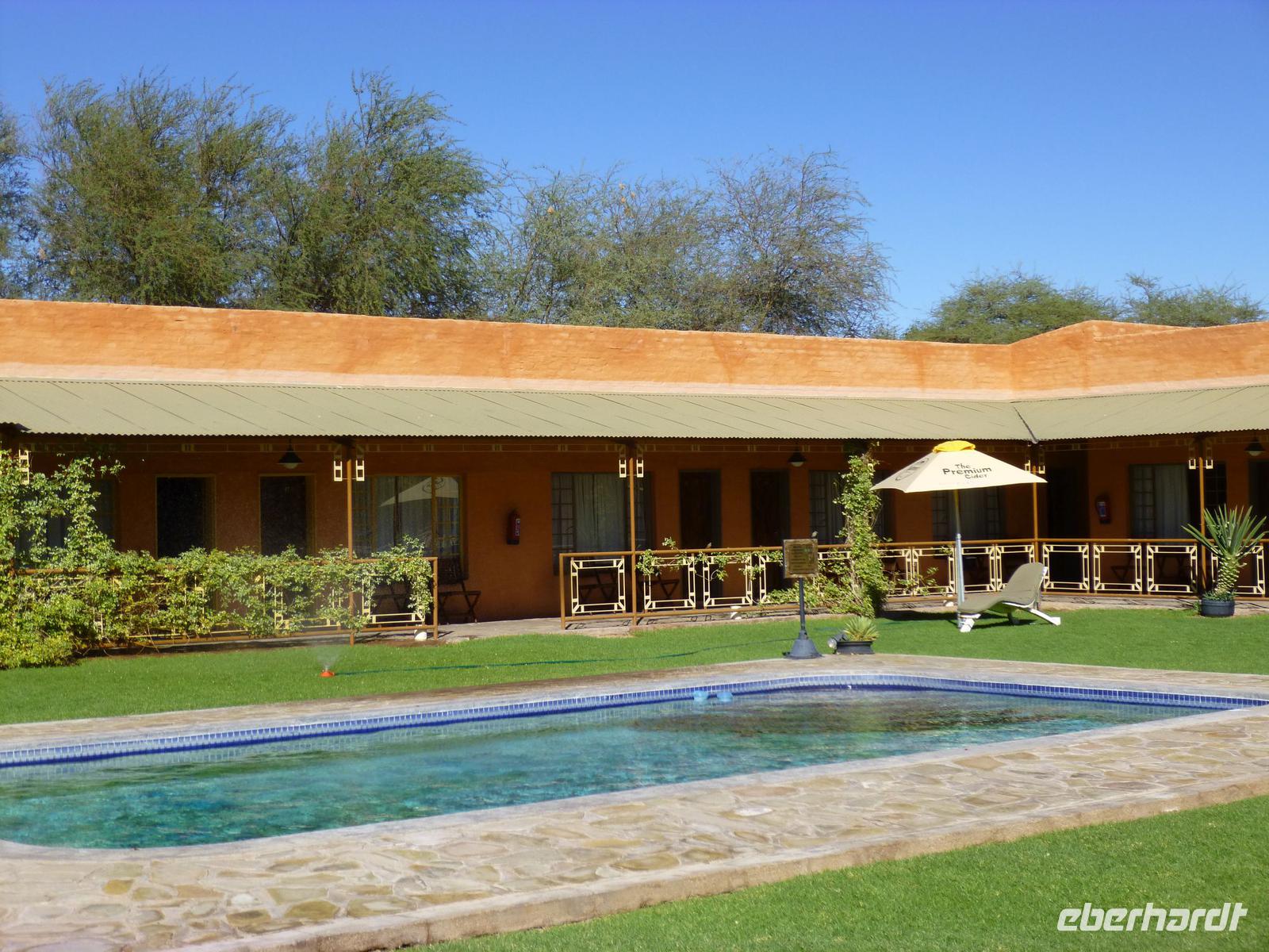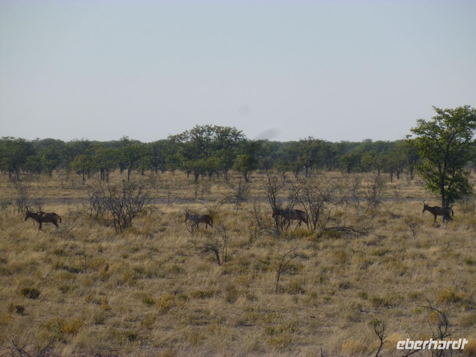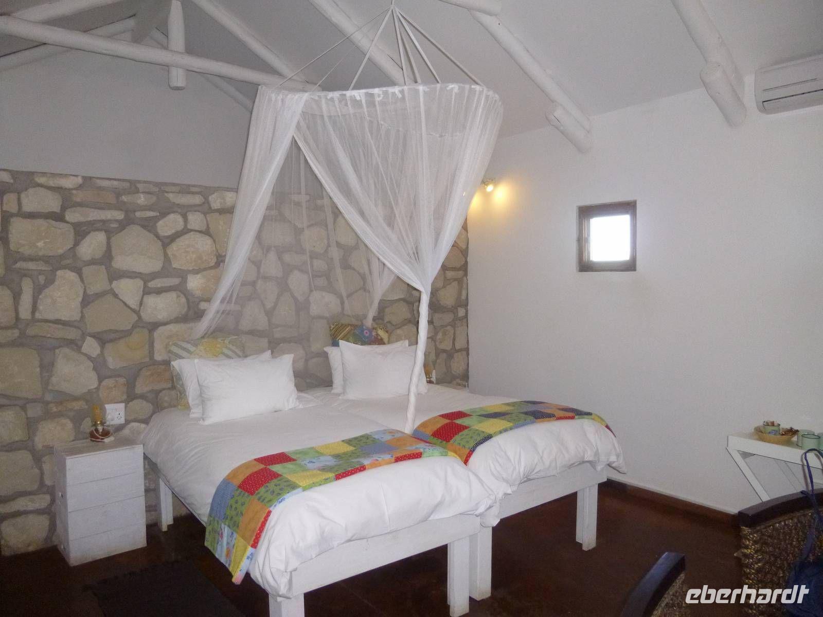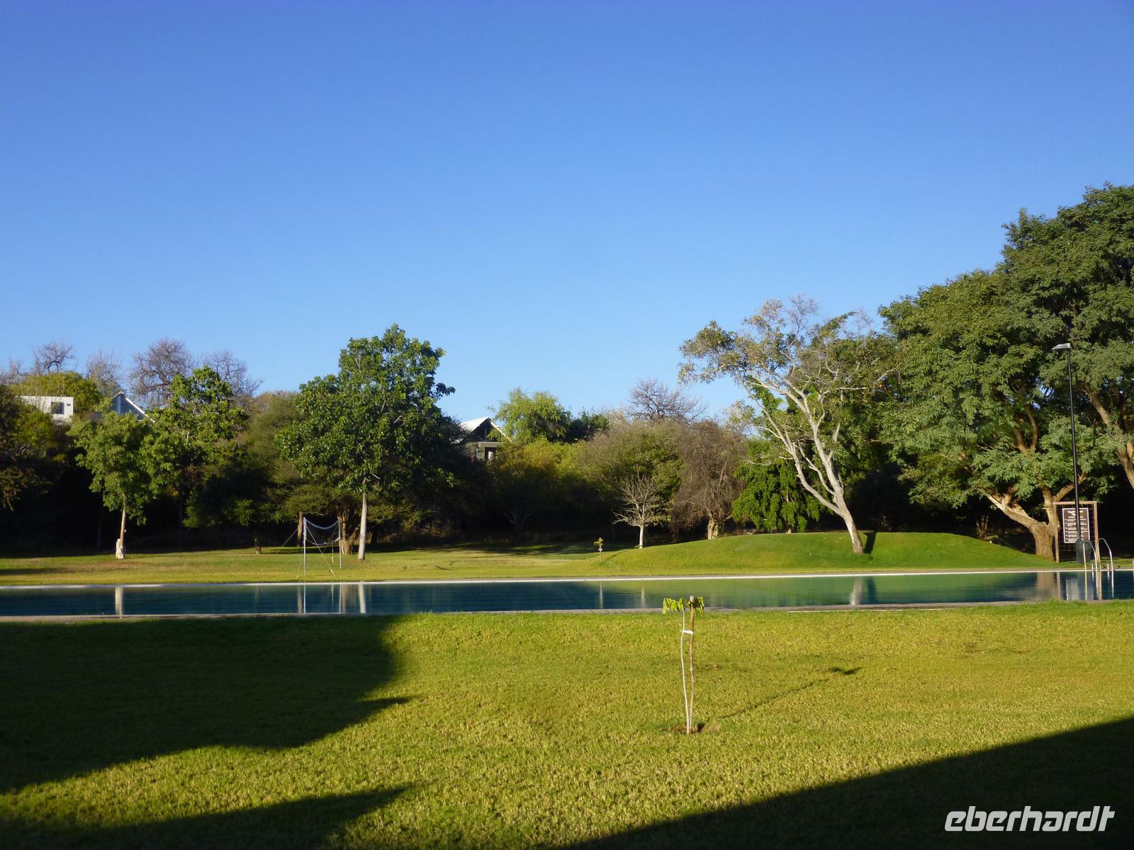 Wir freuen uns auf unsere Reise nach Namibia, Botswana und Zimbabwe. Unsere erste Station ist Windhoek. Wir sind alle sehr müde. Heute ist Sonntag und wir hatten das Gefühl, allein in der Stadt zu sein. Während unserer kleinen Rundfahrt sahen wir den Tintenpalast, die alte Festung, das Reiterdenkmal und die Christuskirche. Wir waren sehr erstaunt über das neu gebaute Unabhängigkeitsmuseum. Wir erreichen das Hotel "Thule". Es verfügte über eine schöne Lage oberhalb der Stadt. Wir nutzten die Zeit bis zum Abendessen für eine kleine Abkühlung im Pool oder einfach dafür, einen Kaffee zu trinken und zu relaxen. Nicht weit vom Hotel entfernt, besuchten wir am Abend Joes´Bierhaus. Das urige Restaurant ist ein Muss für jeden Touristen, der Windhoek besucht. Auch für uns war es ein Erlebnis, die verschieden eingerichteten Räumlichkeiten zu bestaunen. Wir konnten aus der Karte ein Gericht wählen und entschieden uns für einen Wildspieß mit verschiedenen Wildspezialitäten wie Zebra, Strauß, Krokodil, Onyx und Kudu. Jetzt freuten wir uns alle auf unser Bett.