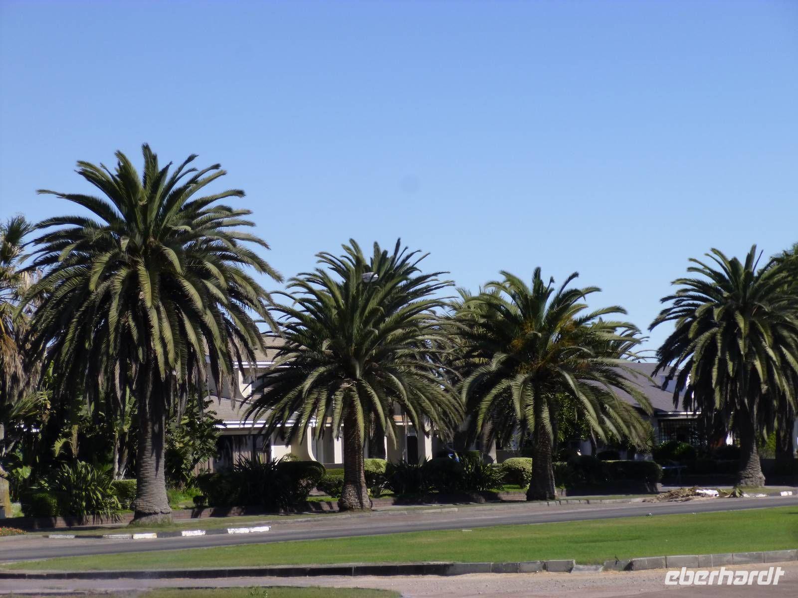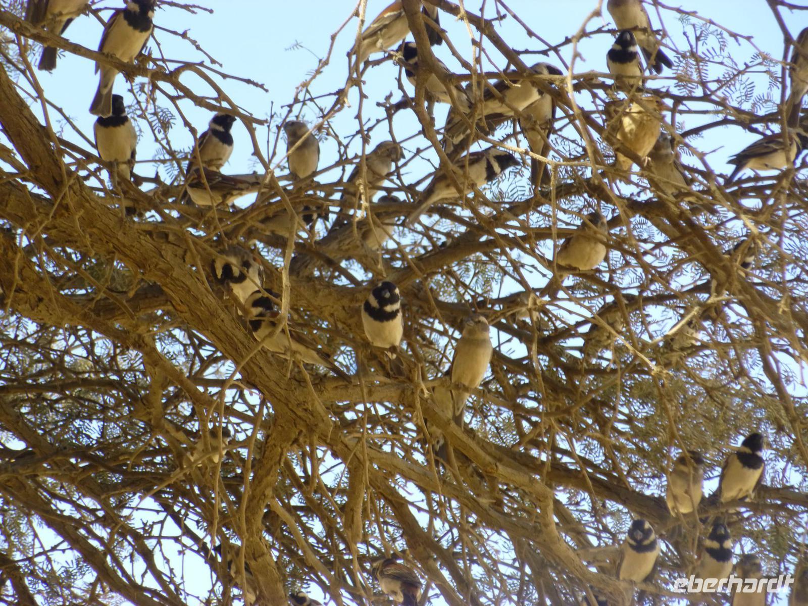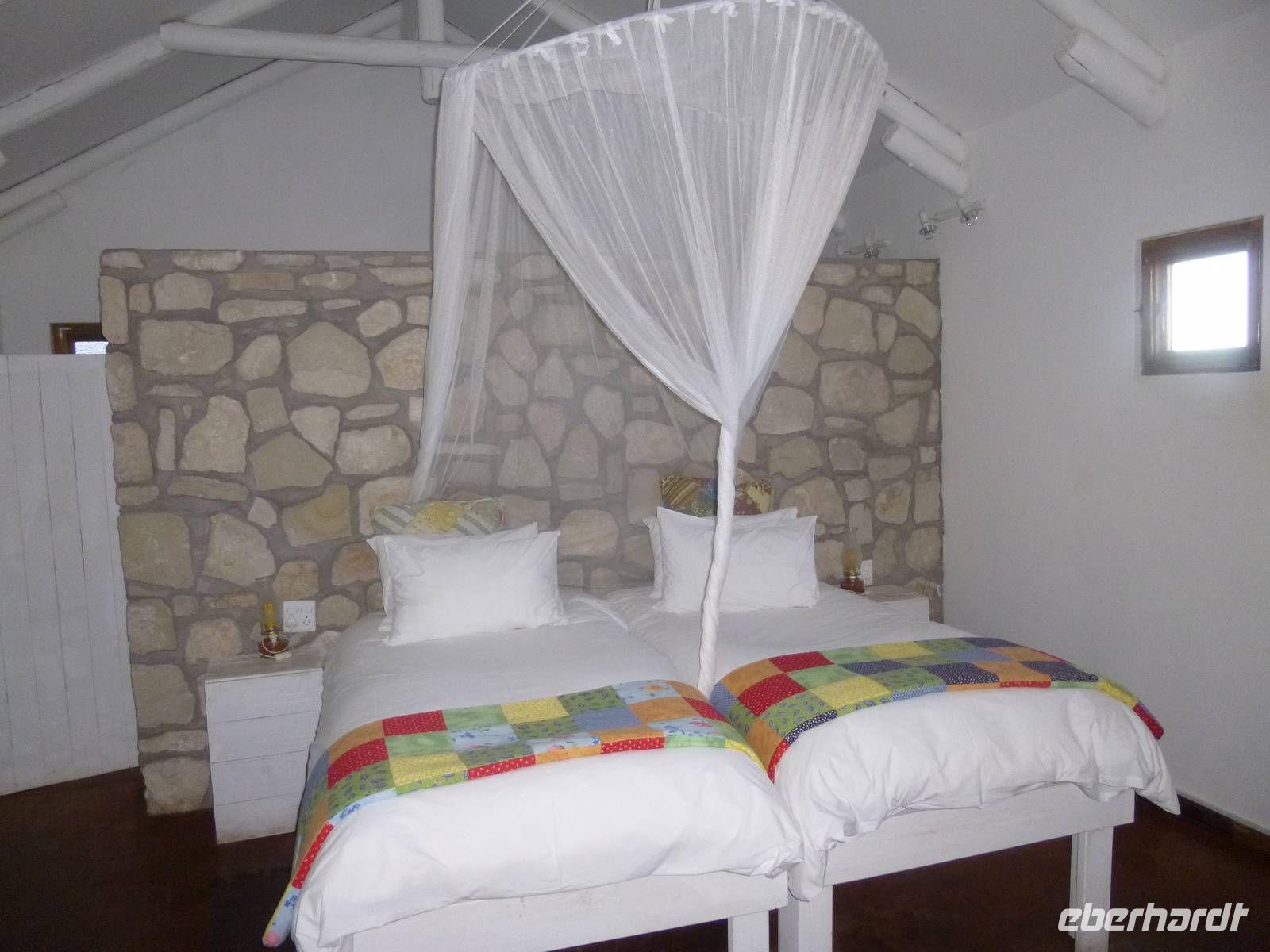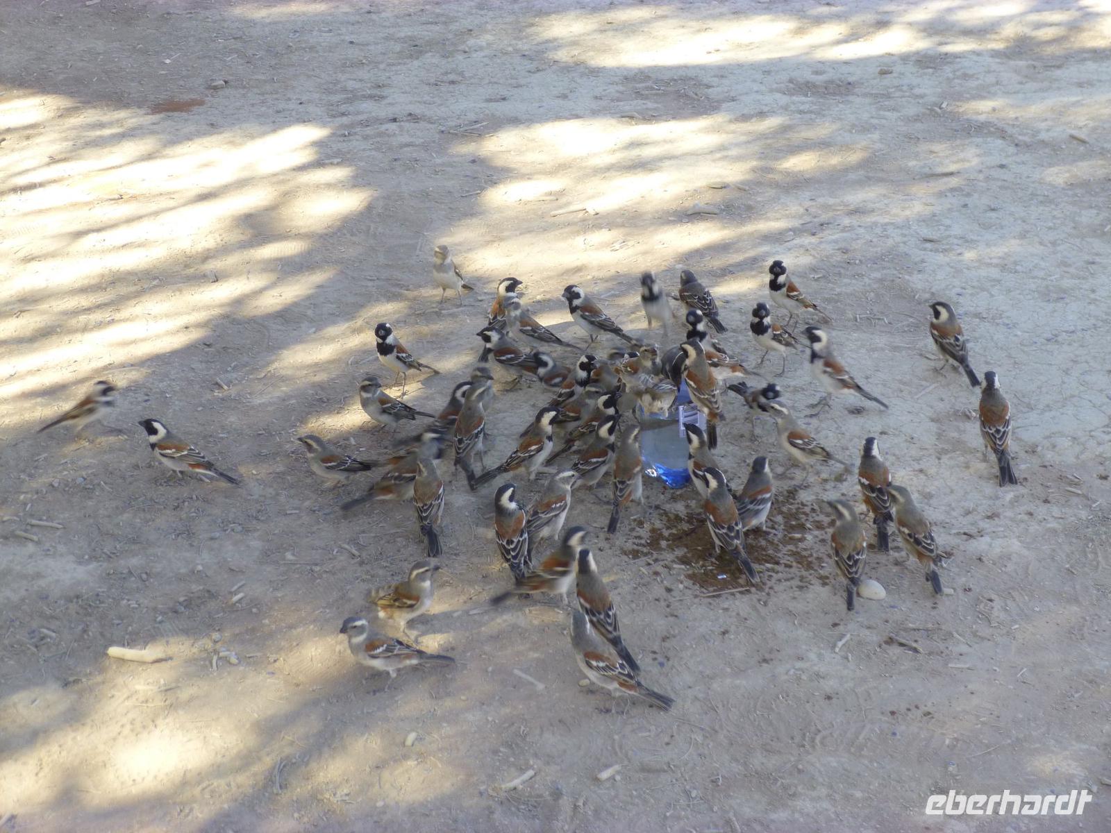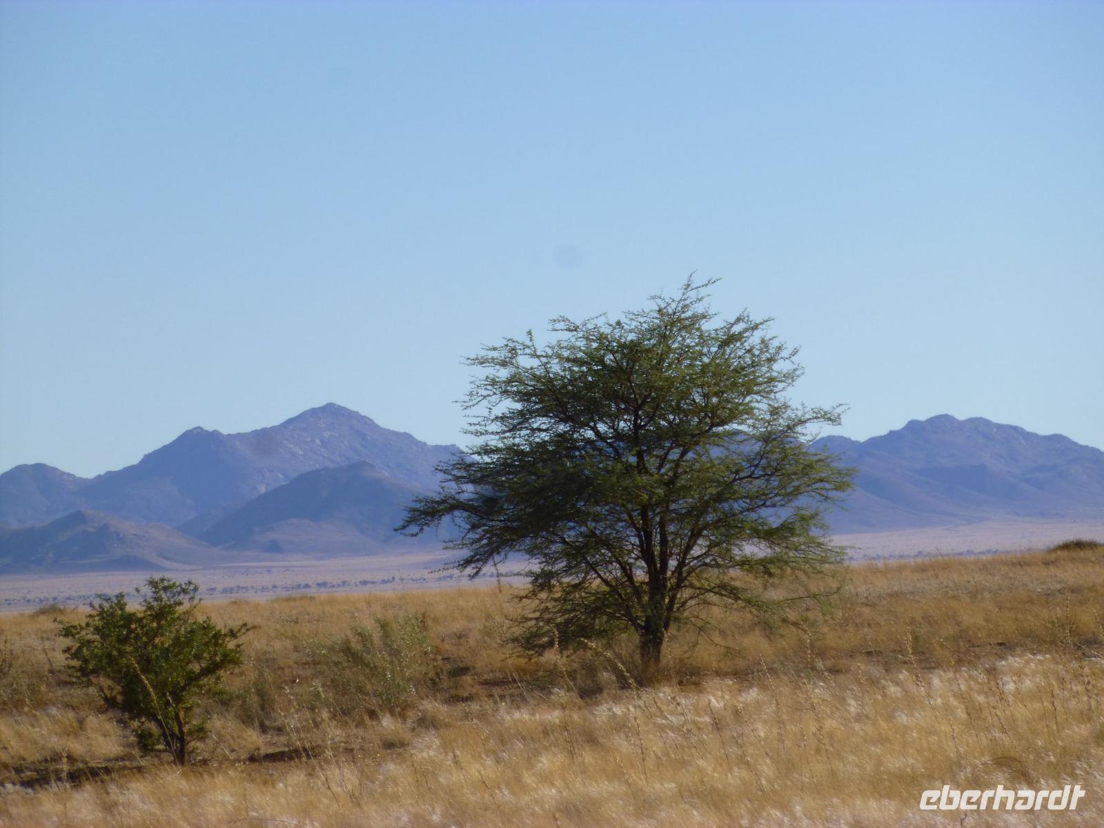 Wir fuhren entlang der Independence Avenue (Kaiser-Wilhelm-Str.). Von der einstigen Prachtstraße mit Ihren alten ehrwürdigen Häusern war leider nicht mehr viel zu sehen. Unser Safarie-Truck fuhr in Richtung Mariental. Dabei überquerten wir den südlichen Wendekreis. Unterwegs legten wir ein Picknick ein. Am Nachmittag erreichten wir die Kalahari Wüste, die größte zusammenhängende Sandfläche der Welt. Unterwegs bestaunten wir schon die großen Nester der Webervögel. Wir erreichten unseren Übernachtungsort Stampriet, der im fruchtbaren Tal des Aurob Flusses liegt. Das Kalahari-Farmhaus verfügt über einen Farmbetrieb. Uns erwartete eine kleine grüne Oase mit 11 Bungalows. Am Abend genießen wir die frischen Produkte der Farm.