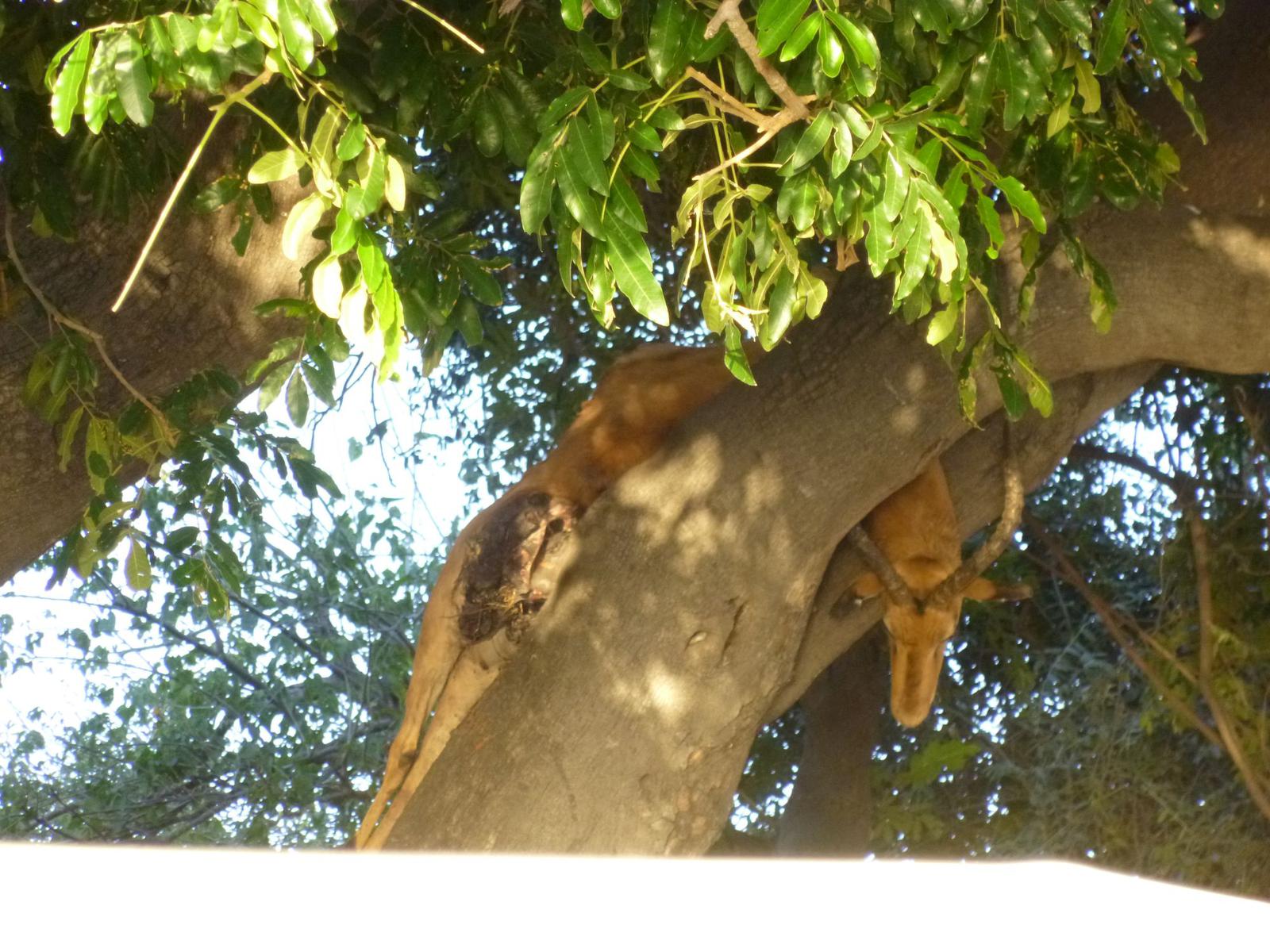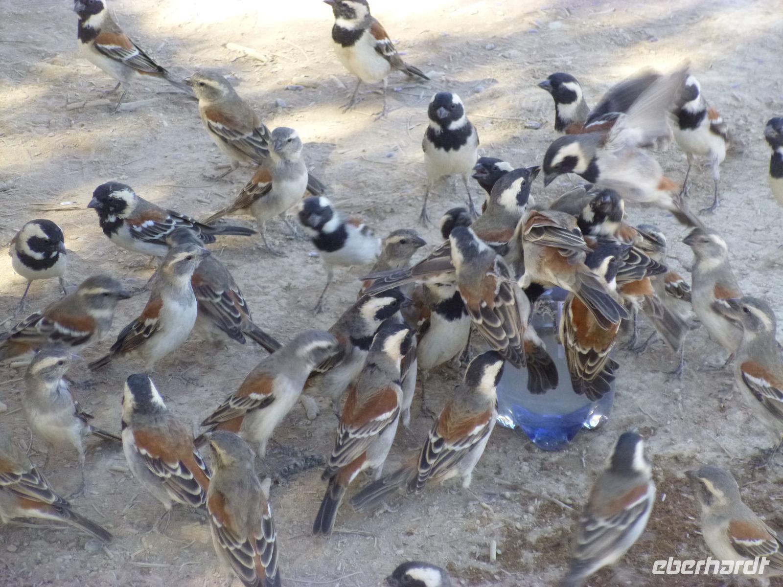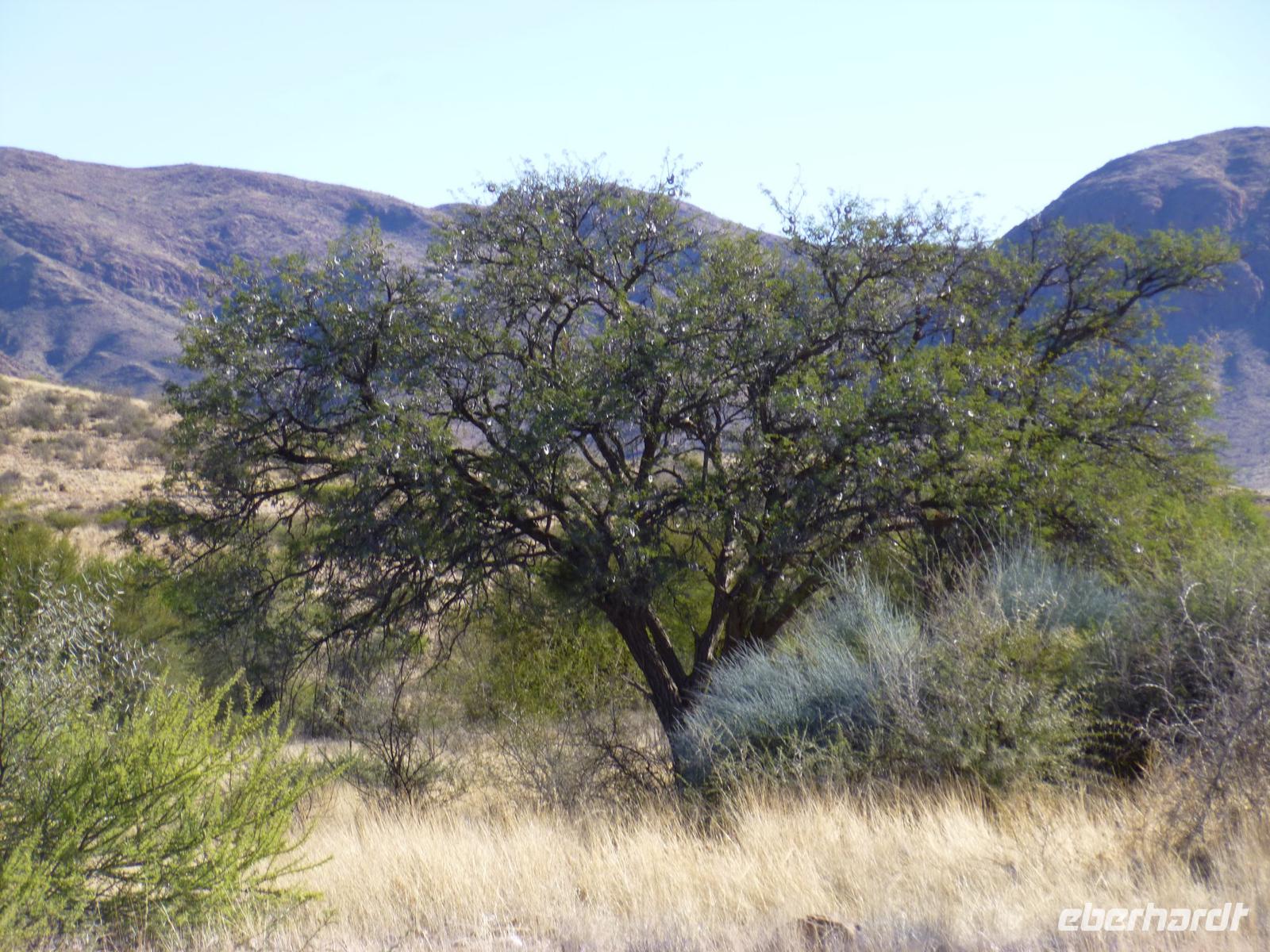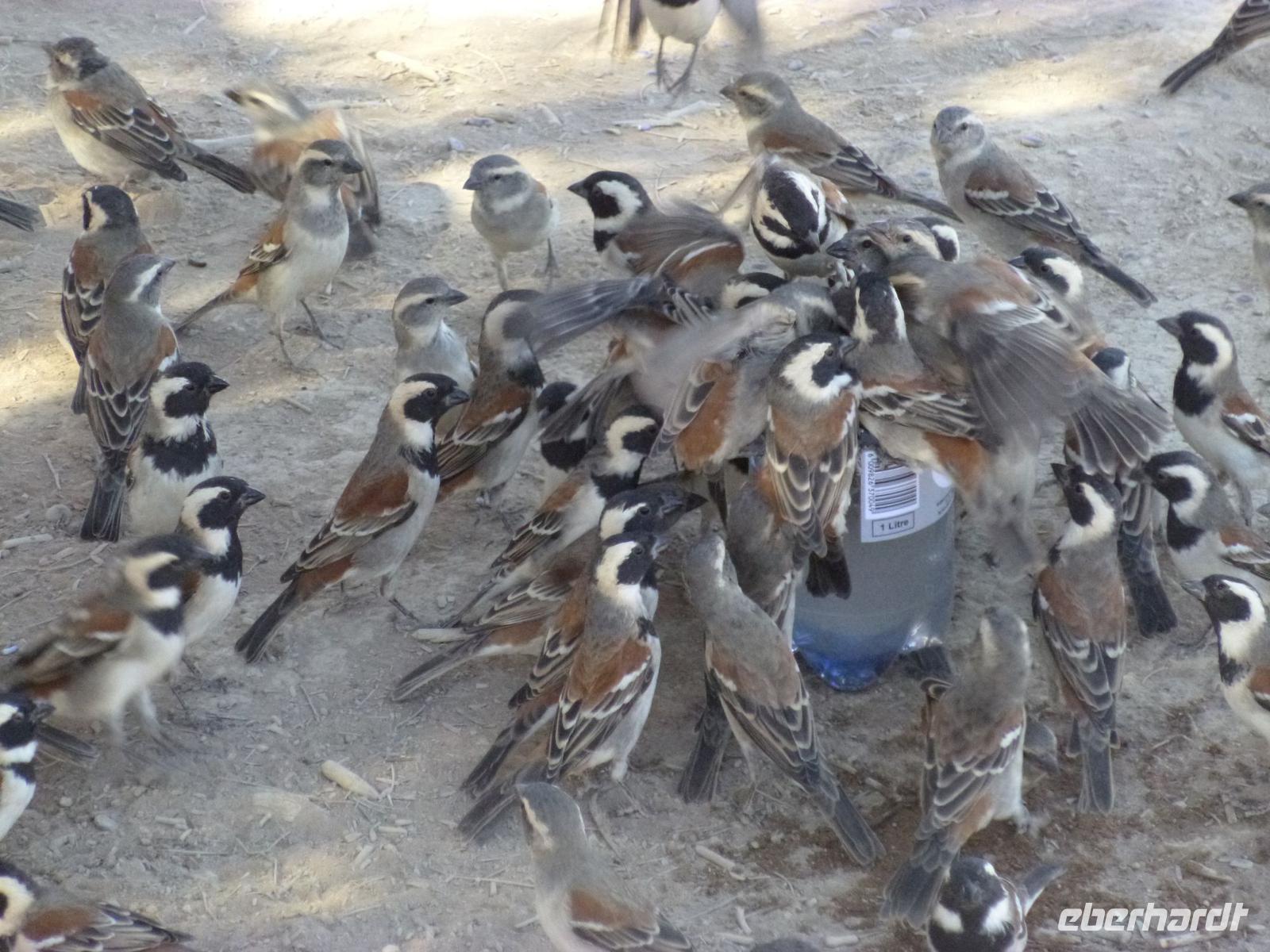 Wir fuhren entlang der Independence Avenue (Kaiser-Wilhelm-Str.). Von der einstigen Prachtstraße mit Ihren alten ehrwürdigen Häusern war leider nicht mehr viel zu sehen. Unser Safarie-Truck fuhr in Richtung Mariental. Dabei überquerten wir den südlichen Wendekreis. Unterwegs legten wir ein Picknick ein. Am Nachmittag erreichten wir die Kalahari Wüste, die größte zusammenhängende Sandfläche der Welt. Unterwegs bestaunten wir schon die großen Nester der Webervögel. Wir erreichten unseren Übernachtungsort Stampriet, der im fruchtbaren Tal des Aurob Flusses liegt. Das Kalahari-Farmhaus verfügt über einen Farmbetrieb. Uns erwartete eine kleine grüne Oase mit 11 Bungalows. Am Abend genießen wir die frischen Produkte der Farm.