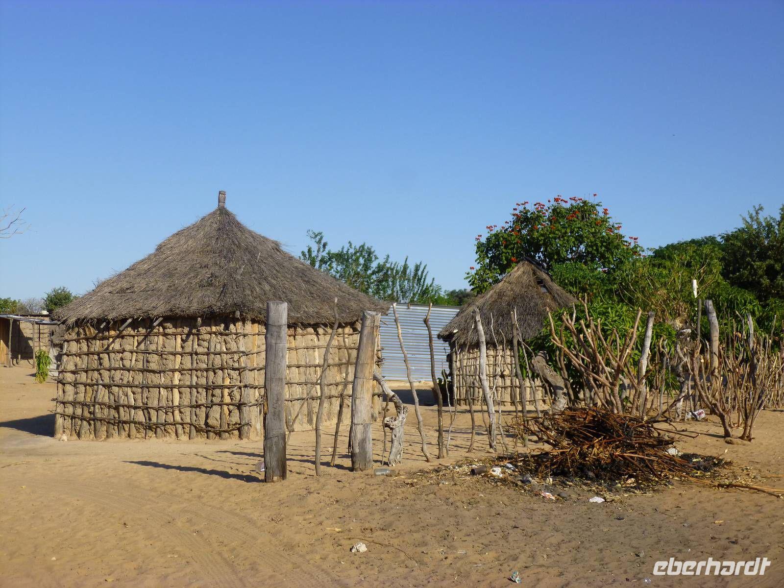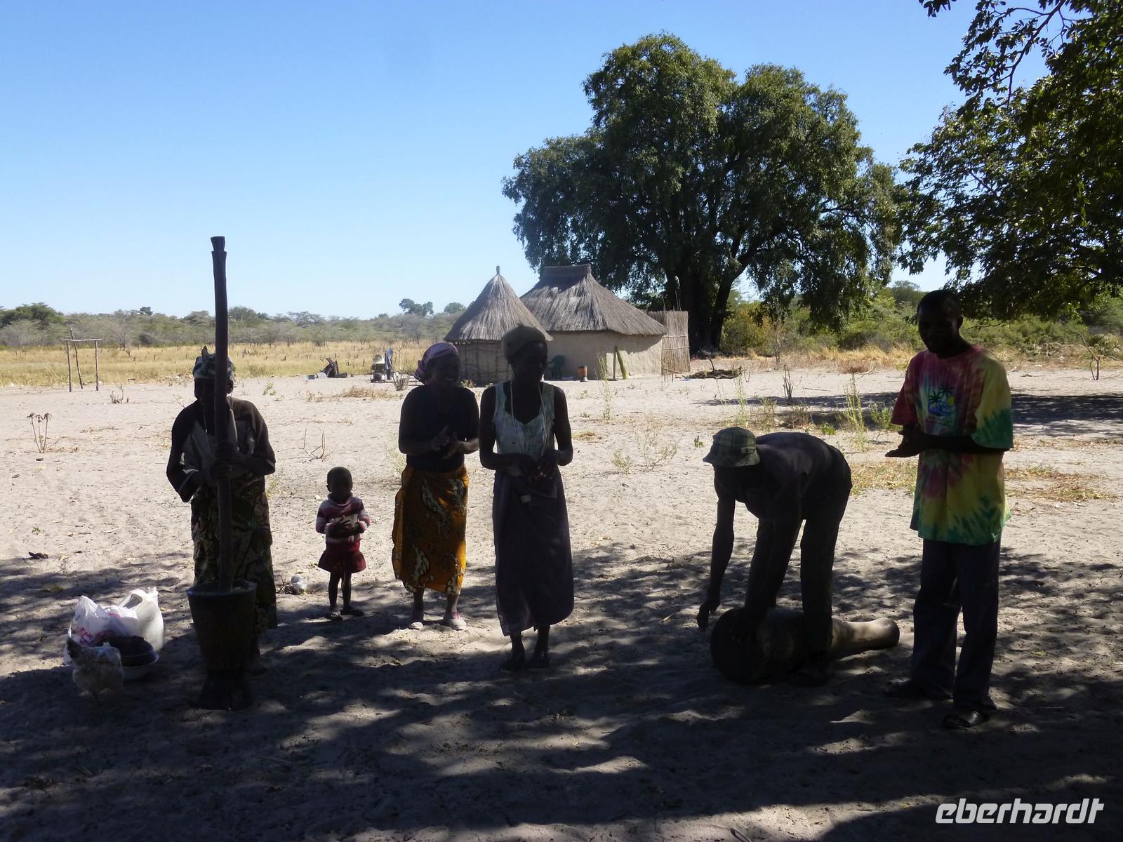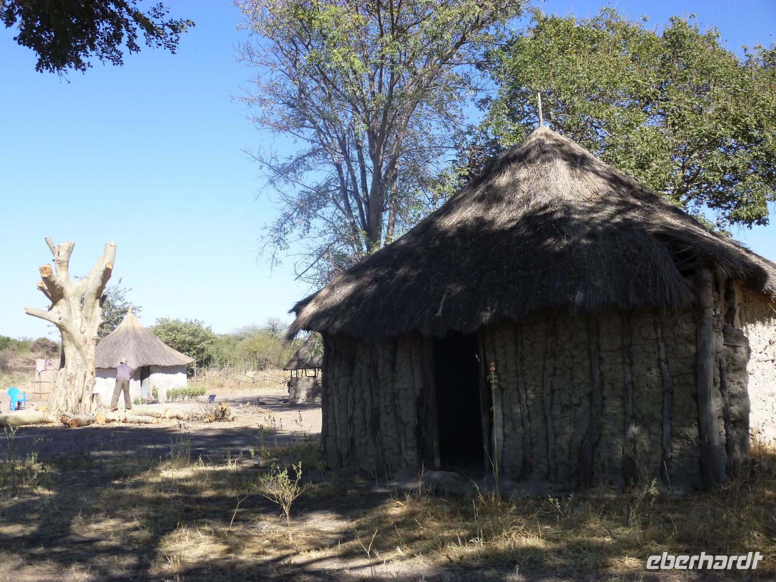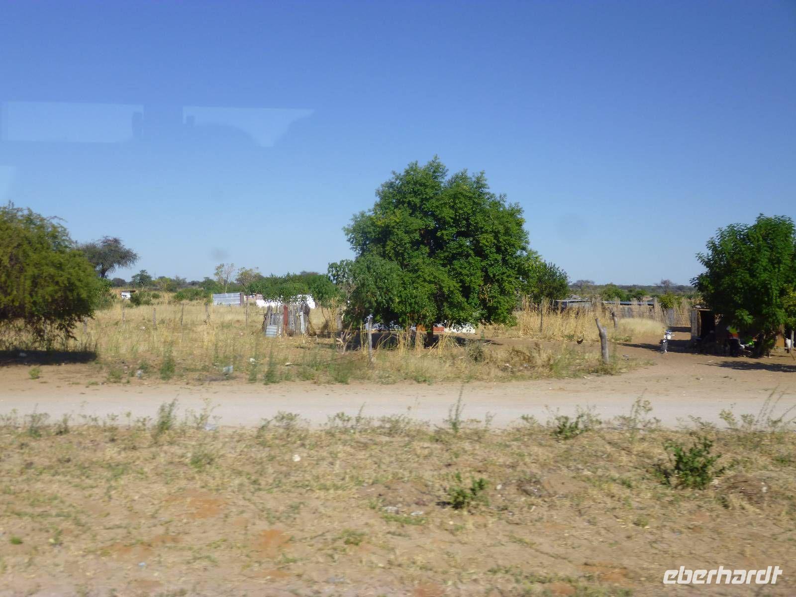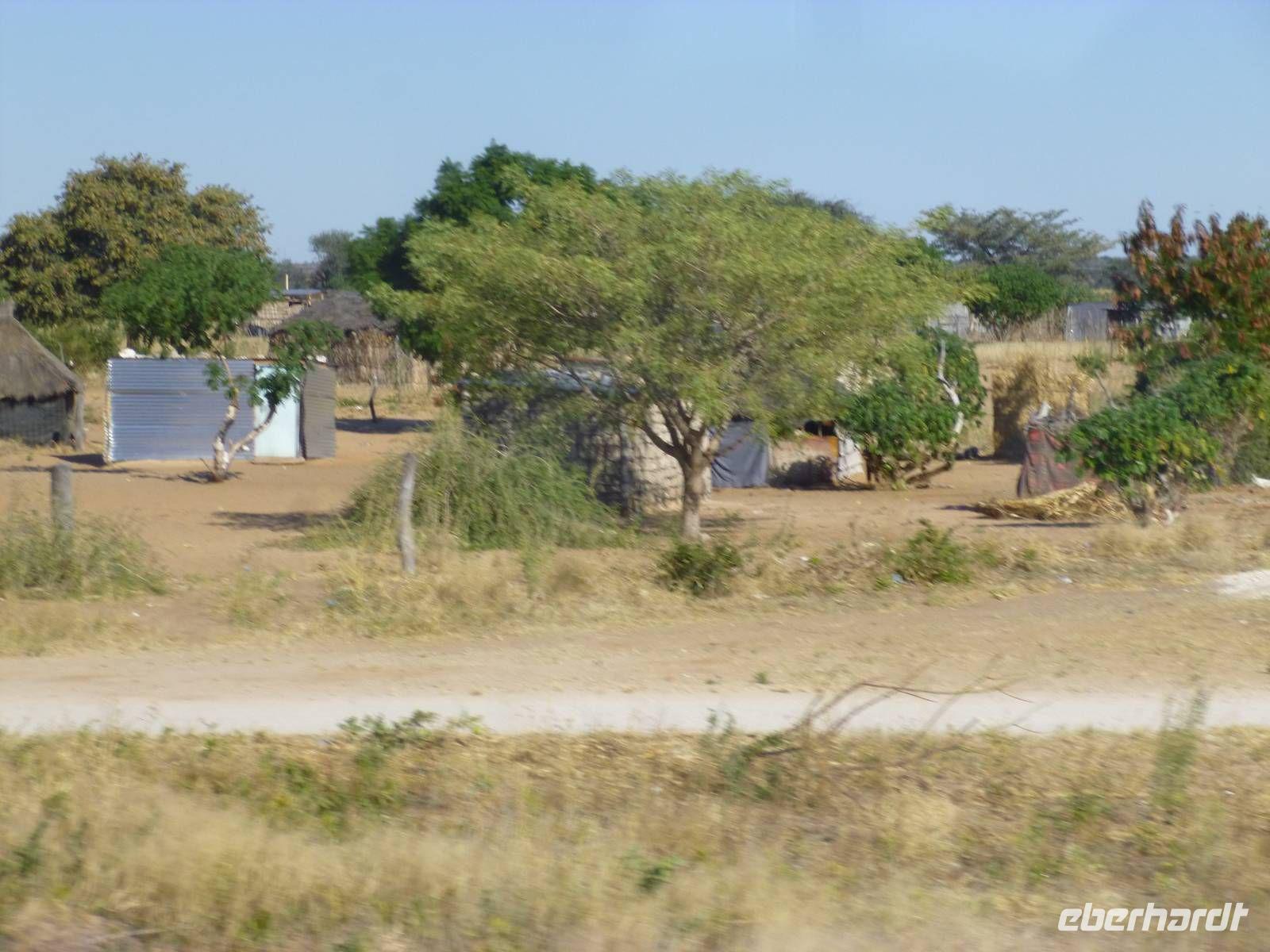 Unser erstes Ziel ist Grootfontein, wo wir die letzten Einkäufe tätigen. Wir fahren vorbei an mehreren Hektar Farmland, wo vor allem Wild gezüchtet wird. Wir erreichen das Kavankoland und kommen wieder in besiedeltes Gebiet und die Landschaft wird zunehmend afrikanisch. Strohgedeckte Rundhütten aus Lehm stehen in kleinen Siedlungen unweit der Straße. Auch Gemüsegärten sind zwischen den Siedlungen zu sehen. Am Straßenrand sitzen Holzschnitzer, die ihre Schnitzarbeiten anbieten. Wir erreichen Rundu und besuchen die Familie von Jonas. Seine Frau und die Kinder erwarteten uns schon. Er verfügt über ein kleines Haus und setzt seine Arbeit als Missionar in seiner Gemeinde fort. Das nächste Ziel ist der Bau einer Kirche.