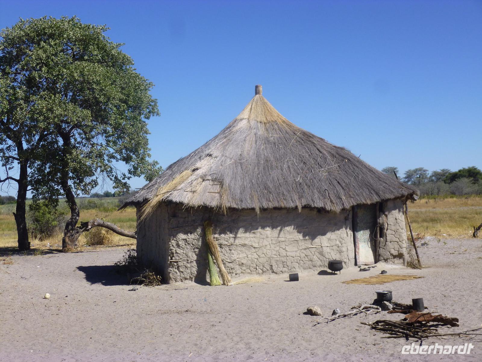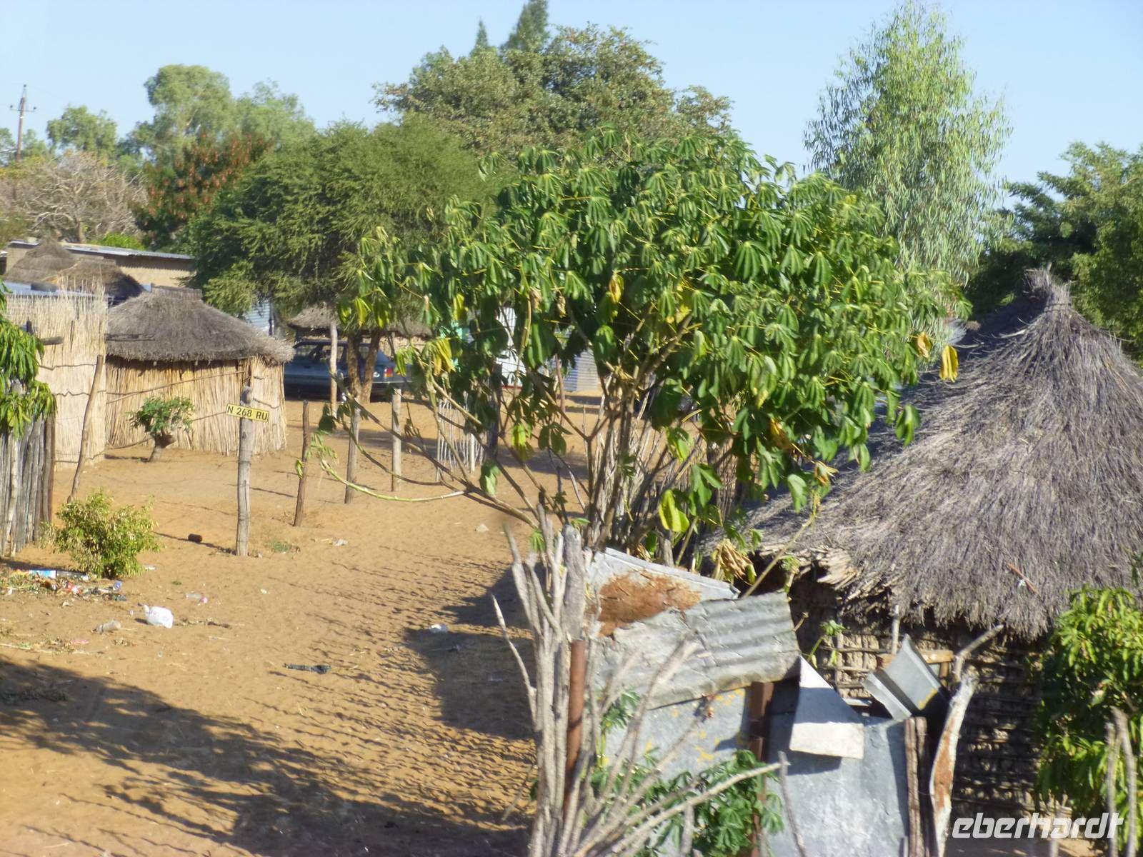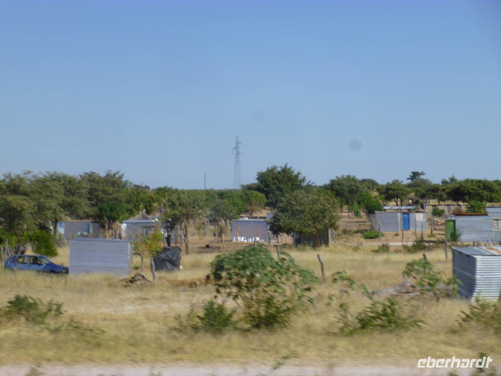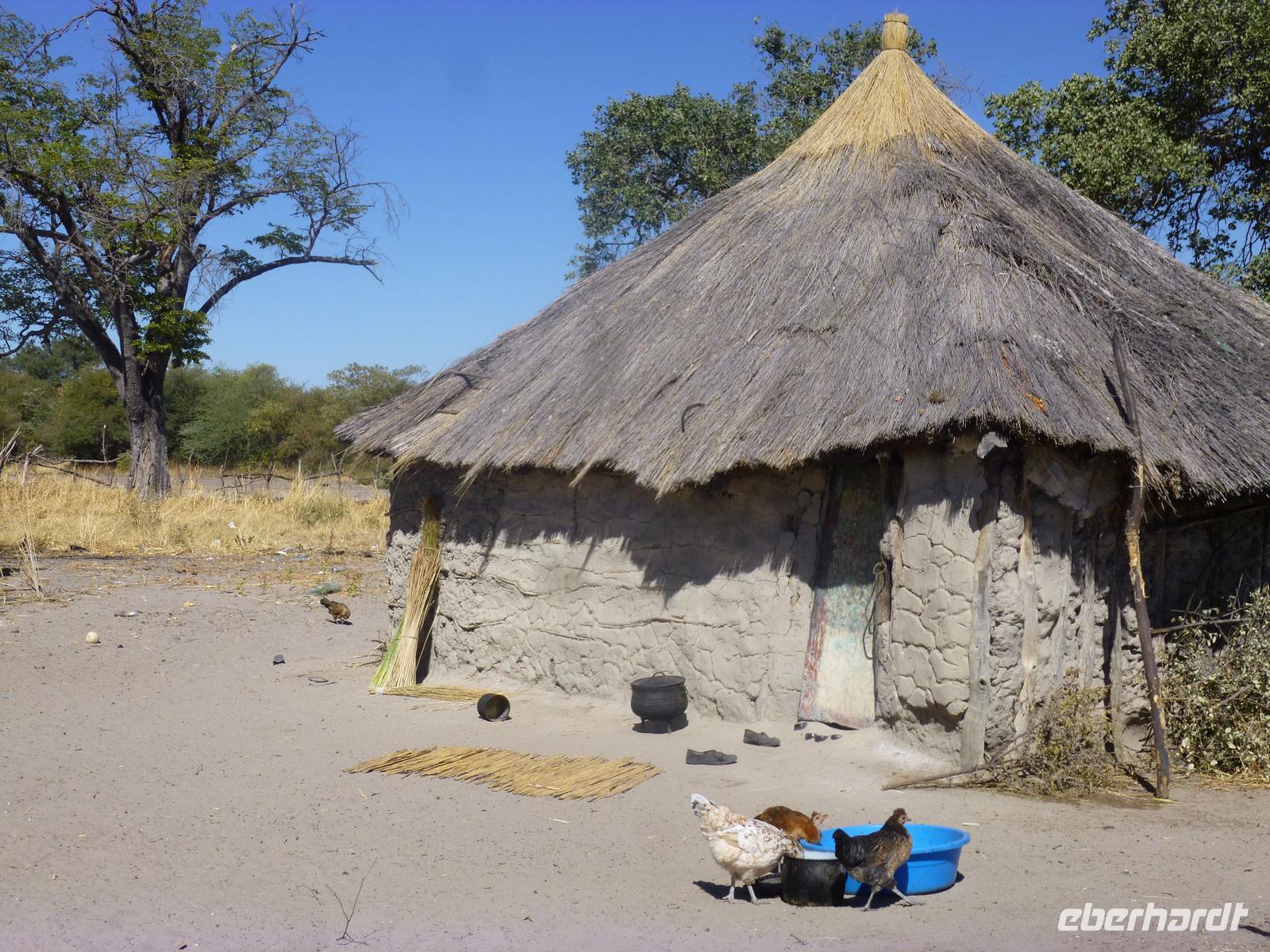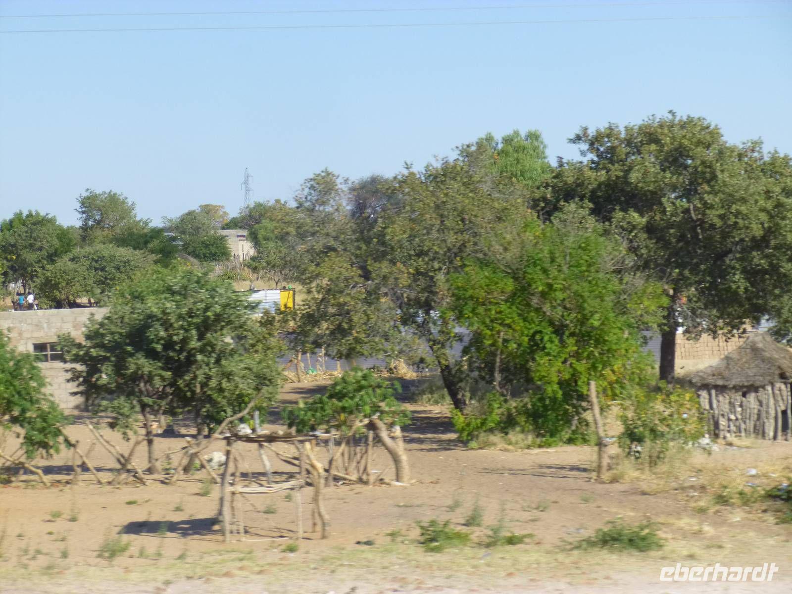 Unser erstes Ziel ist Grootfontein, wo wir die letzten Einkäufe tätigen. Wir fahren vorbei an mehreren Hektar Farmland, wo vor allem Wild gezüchtet wird. Wir erreichen das Kavankoland und kommen wieder in besiedeltes Gebiet und die Landschaft wird zunehmend afrikanisch. Strohgedeckte Rundhütten aus Lehm stehen in kleinen Siedlungen unweit der Straße. Auch Gemüsegärten sind zwischen den Siedlungen zu sehen. Am Straßenrand sitzen Holzschnitzer, die ihre Schnitzarbeiten anbieten. Wir erreichen Rundu und besuchen die Familie von Jonas. Seine Frau und die Kinder erwarteten uns schon. Er verfügt über ein kleines Haus und setzt seine Arbeit als Missionar in seiner Gemeinde fort. Das nächste Ziel ist der Bau einer Kirche.