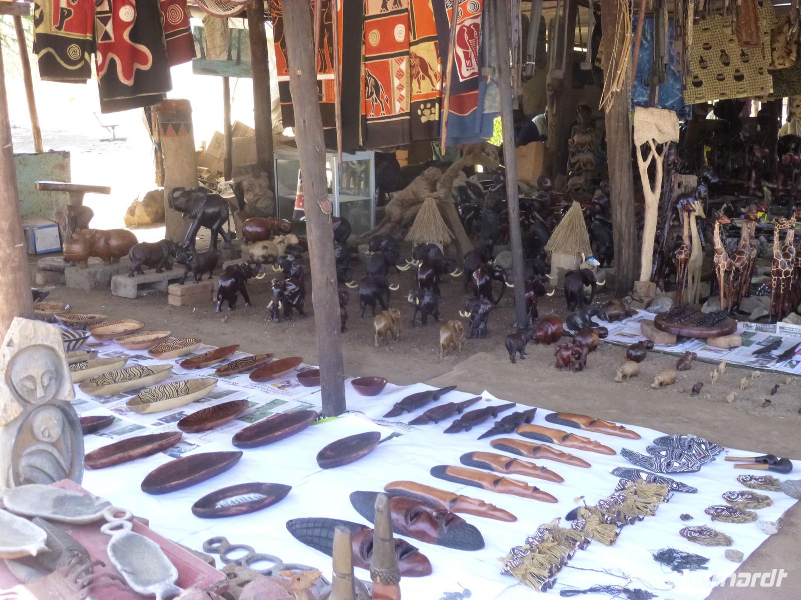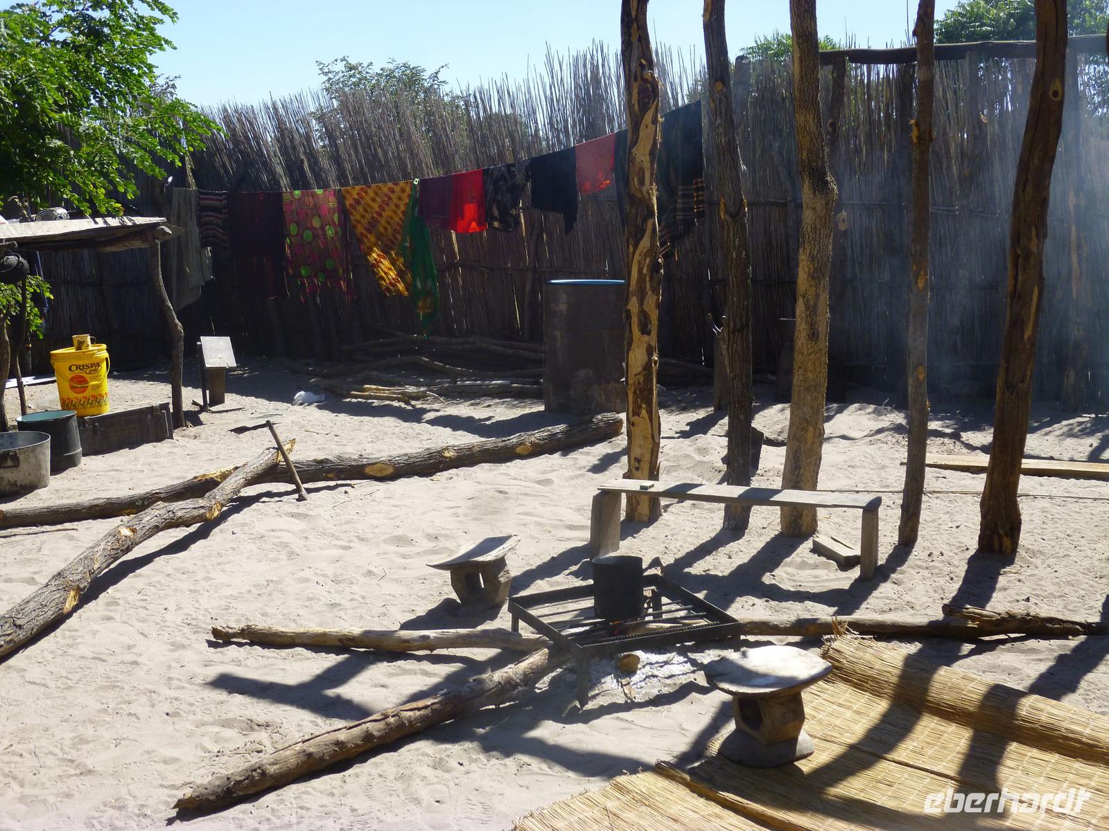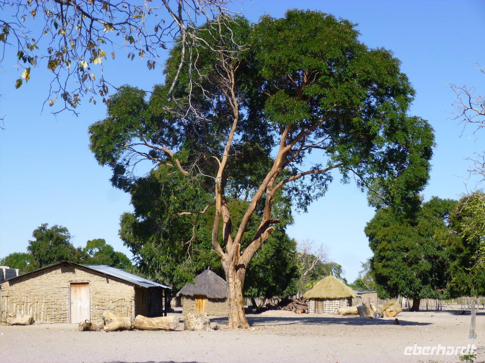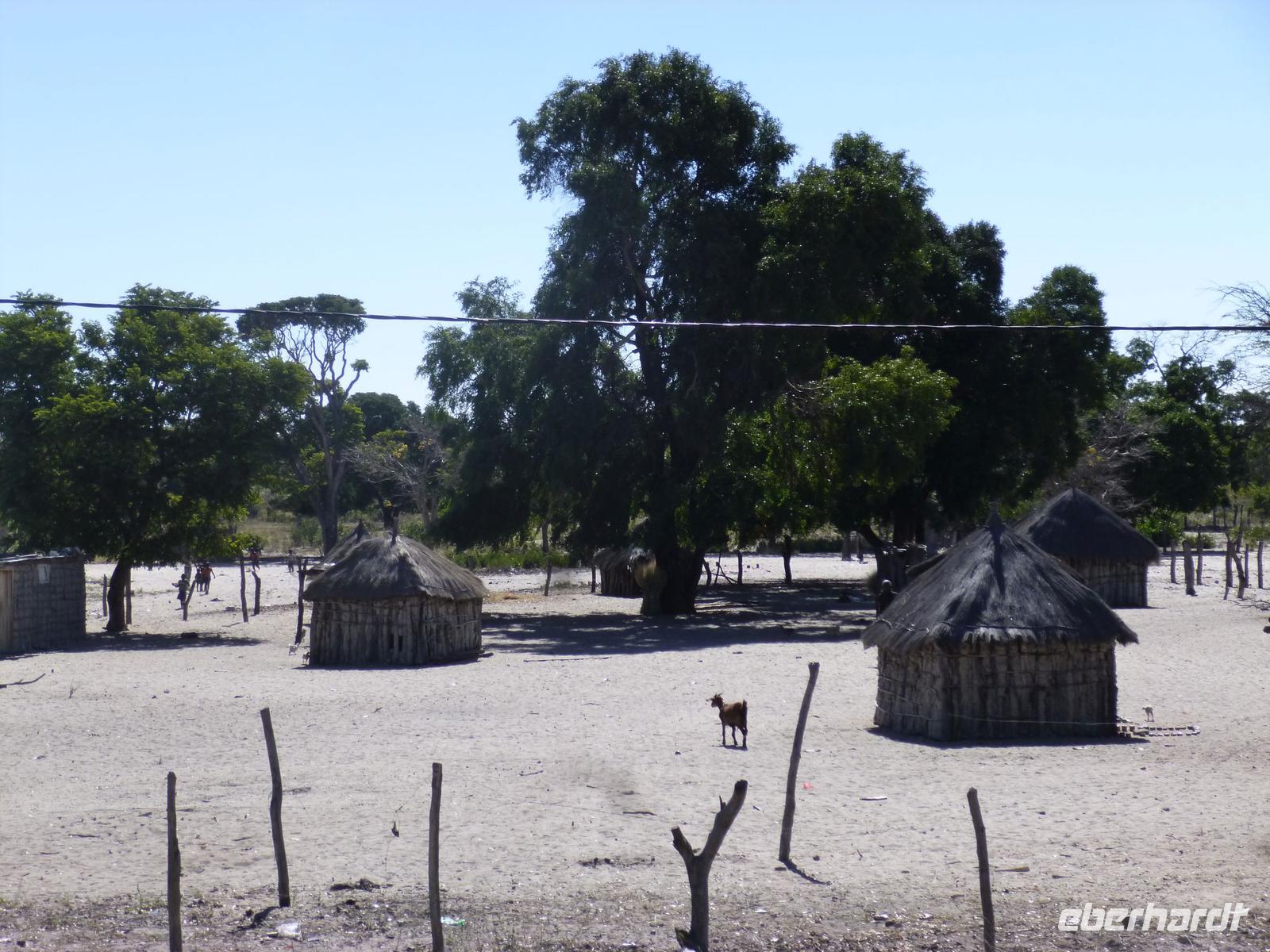 Unser erstes Ziel ist Grootfontein, wo wir die letzten Einkäufe tätigen. Wir fahren vorbei an mehreren Hektar Farmland, wo vor allem Wild gezüchtet wird. Wir erreichen das Kavankoland und kommen wieder in besiedeltes Gebiet und die Landschaft wird zunehmend afrikanisch. Strohgedeckte Rundhütten aus Lehm stehen in kleinen Siedlungen unweit der Straße. Auch Gemüsegärten sind zwischen den Siedlungen zu sehen. Am Straßenrand sitzen Holzschnitzer, die ihre Schnitzarbeiten anbieten. Wir erreichen Rundu und besuchen die Familie von Jonas. Seine Frau und die Kinder erwarteten uns schon. Er verfügt über ein kleines Haus und setzt seine Arbeit als Missionar in seiner Gemeinde fort. Das nächste Ziel ist der Bau einer Kirche.