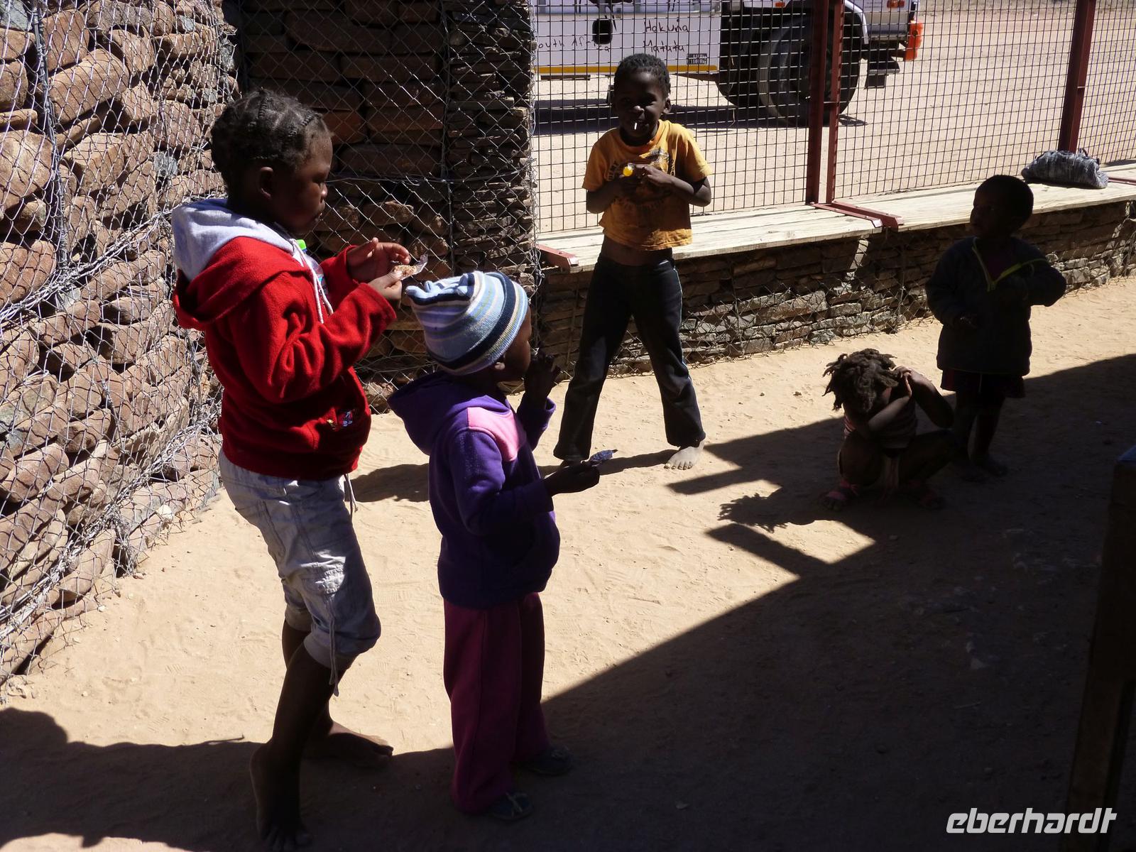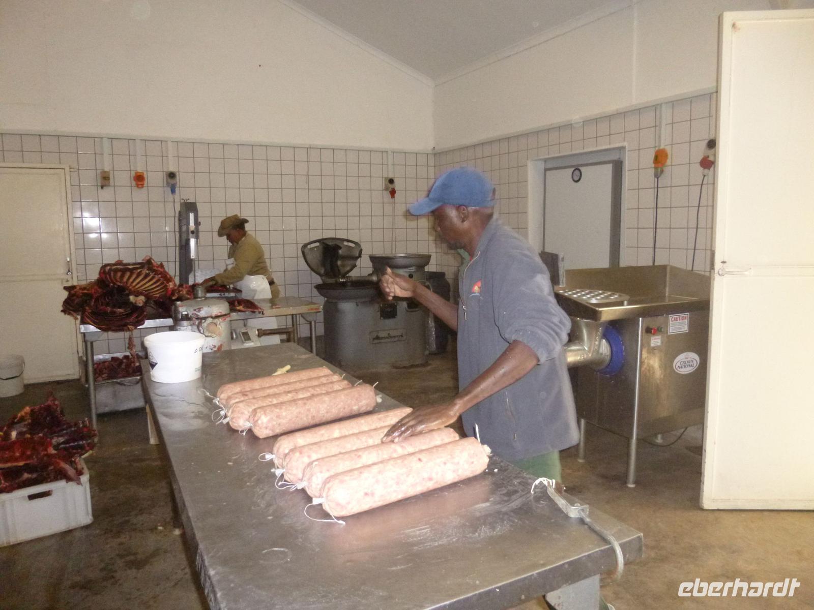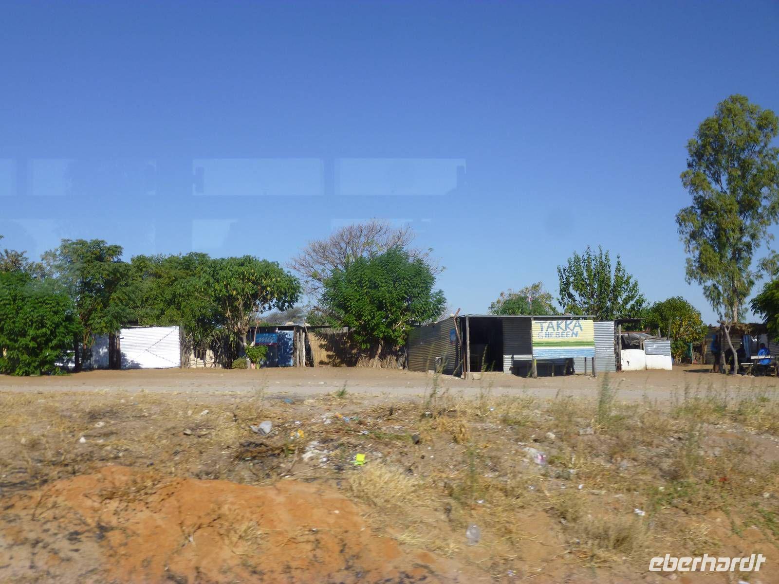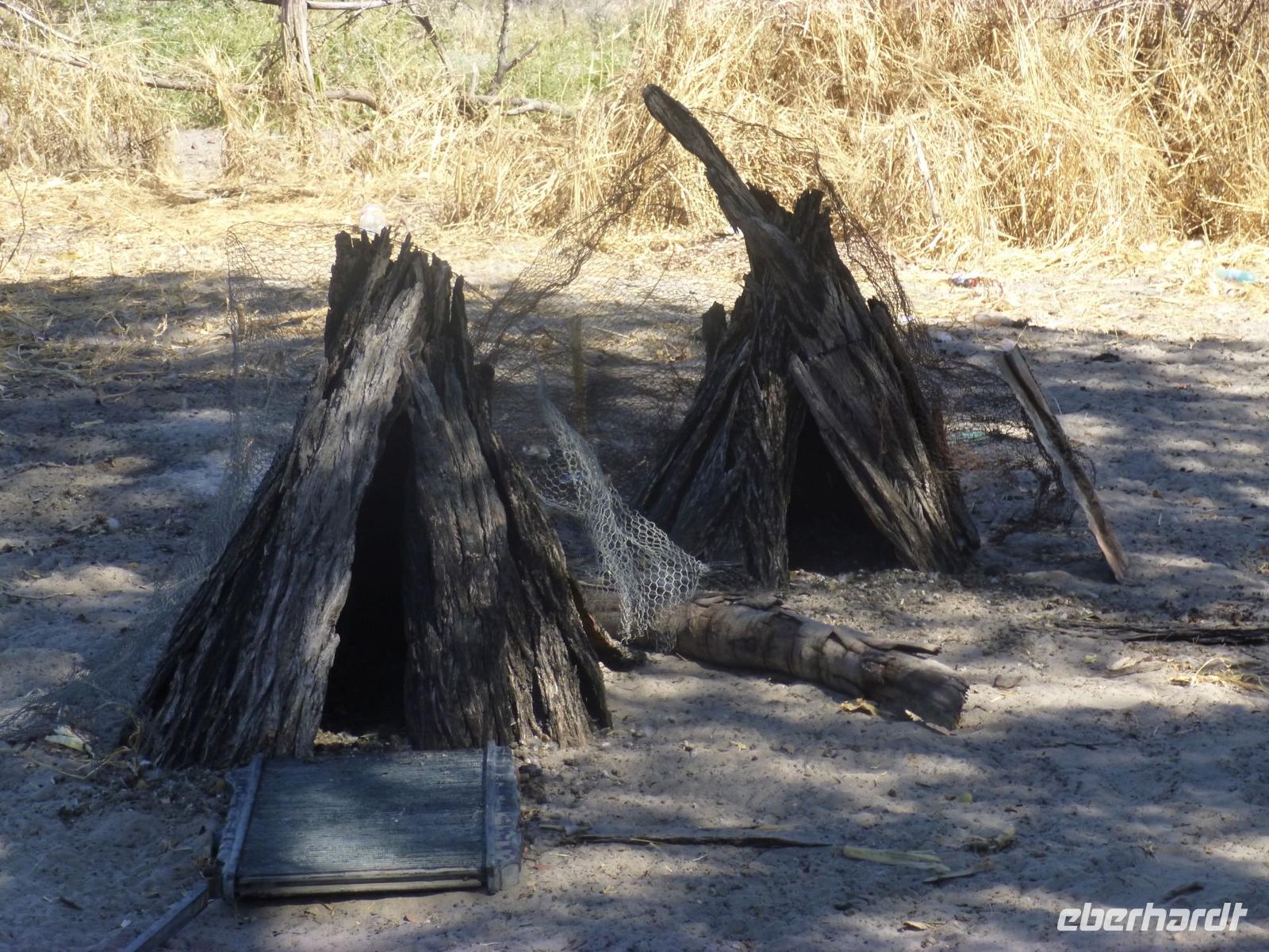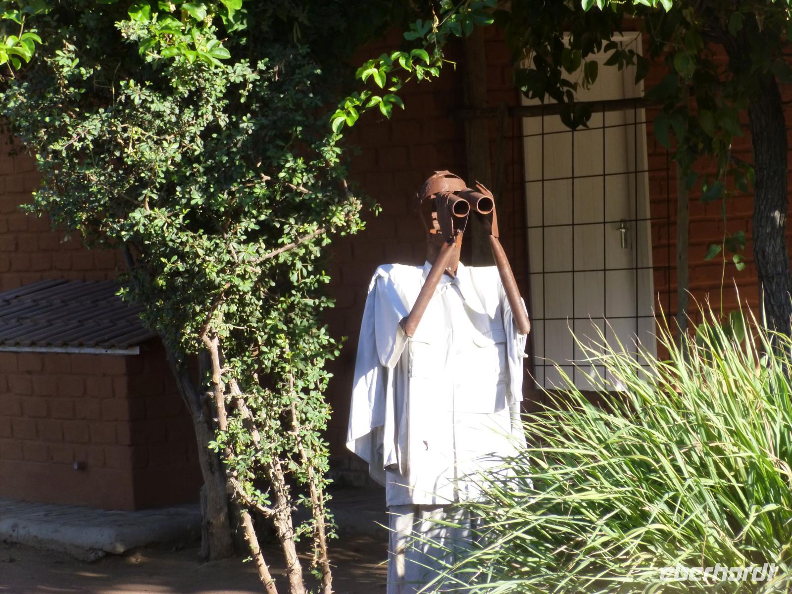 Unser erstes Ziel ist Grootfontein, wo wir die letzten Einkäufe tätigen. Wir fahren vorbei an mehreren Hektar Farmland, wo vor allem Wild gezüchtet wird. Wir erreichen das Kavankoland und kommen wieder in besiedeltes Gebiet und die Landschaft wird zunehmend afrikanisch. Strohgedeckte Rundhütten aus Lehm stehen in kleinen Siedlungen unweit der Straße. Auch Gemüsegärten sind zwischen den Siedlungen zu sehen. Am Straßenrand sitzen Holzschnitzer, die ihre Schnitzarbeiten anbieten. Wir erreichen Rundu und besuchen die Familie von Jonas. Seine Frau und die Kinder erwarteten uns schon. Er verfügt über ein kleines Haus und setzt seine Arbeit als Missionar in seiner Gemeinde fort. Das nächste Ziel ist der Bau einer Kirche.
