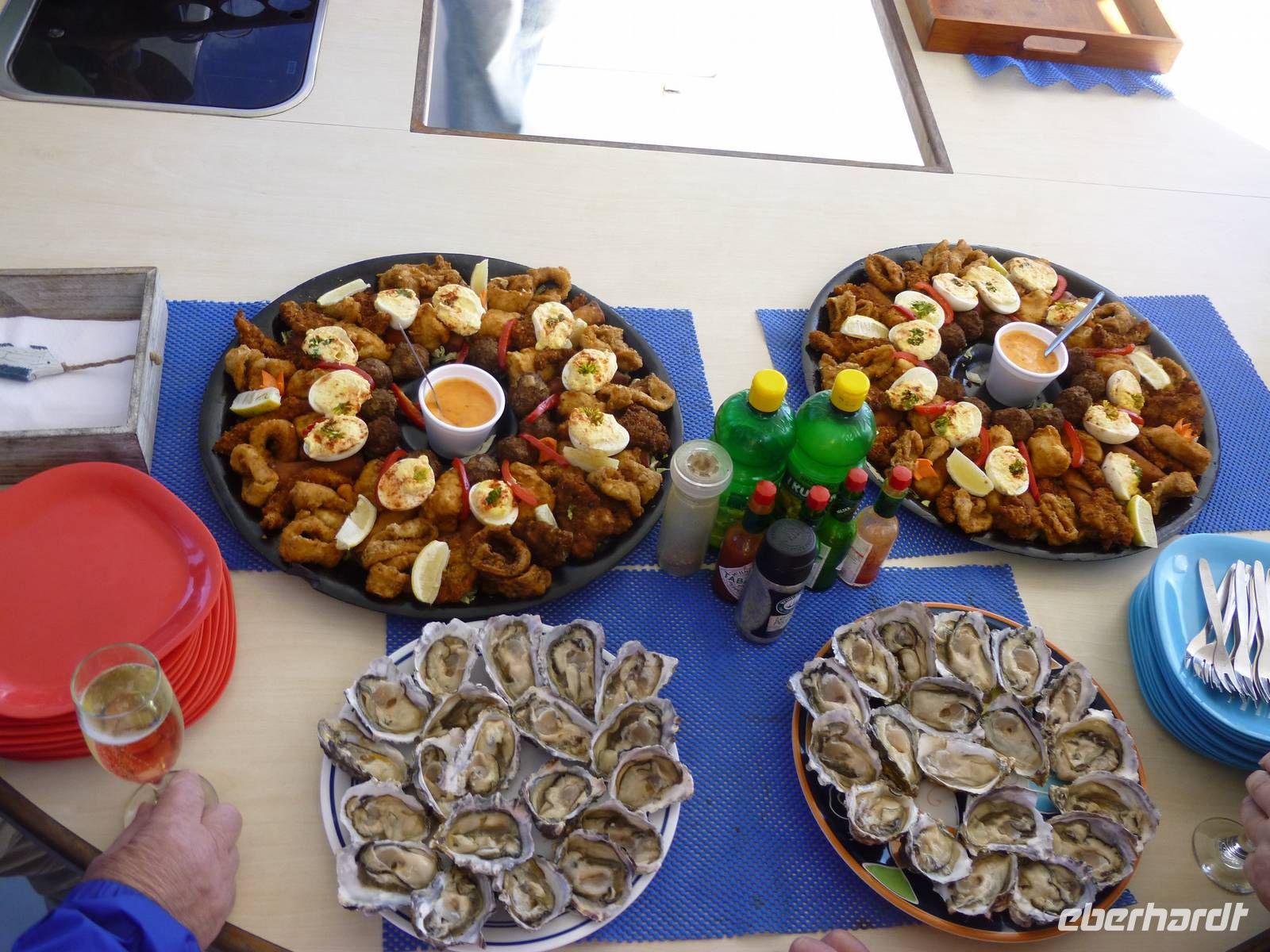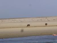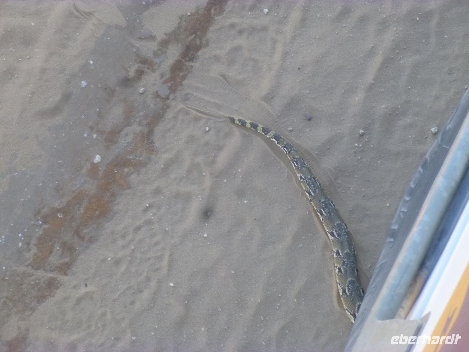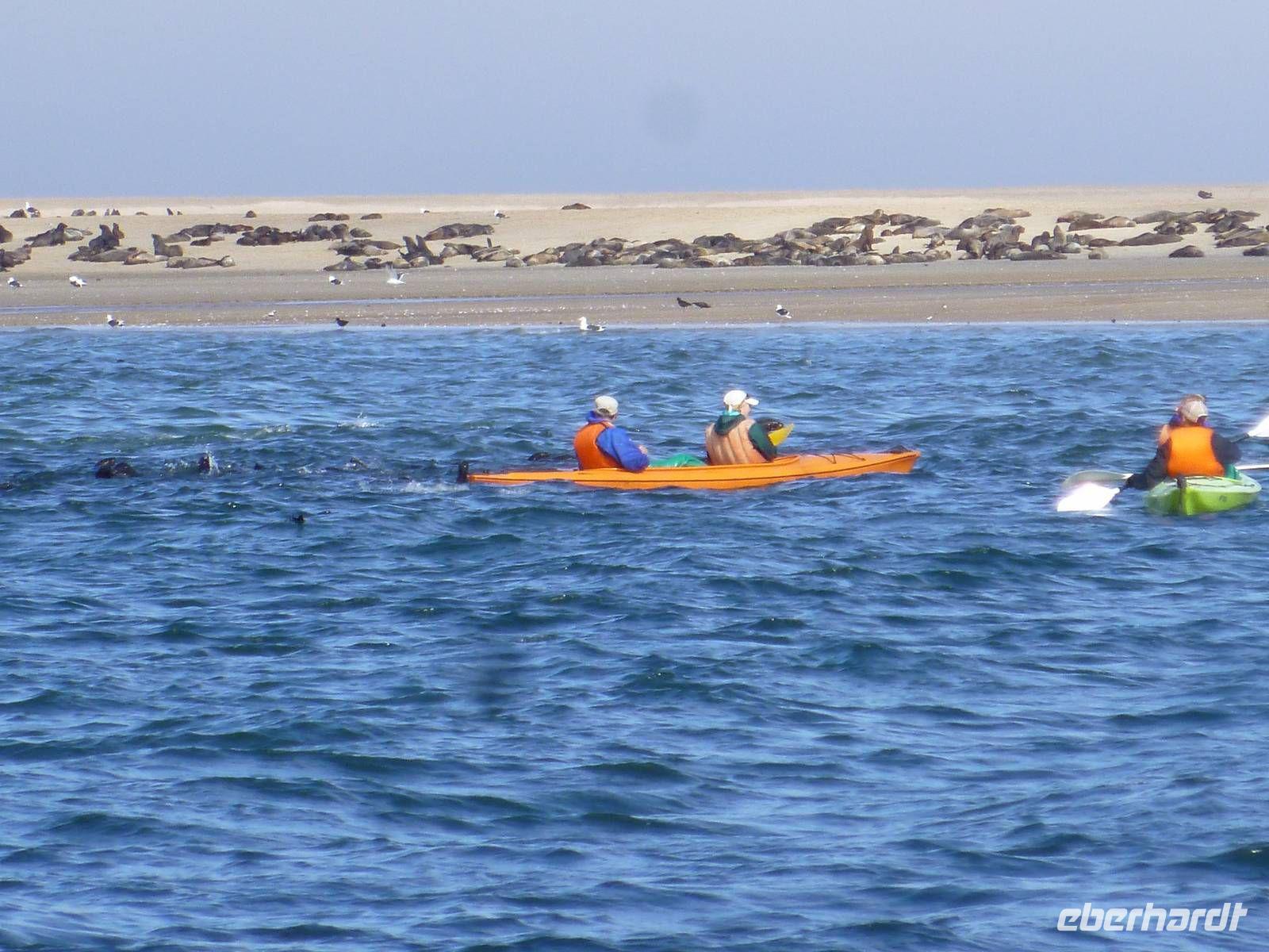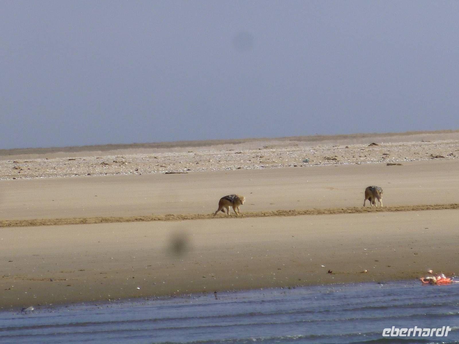 Auch heute hieß es wieder früh aufstehen. Wir fuhren zur Walvis-Bay. Wegen der Wale in den Küstengewässern haben Walfänger seit Anfang des 18. Jahrhunderts hier gerne Station gemacht. Wir begeben uns auf einen Katamaran und fahren entlang der Lagune die vom offenen Meer durch eine Landzunge geschützt ist. Wir erreichen den nördlichsten Punkt - Pelican-Point, mit Leuchtturm, einem alten Frack und einer Robbenkolonie. Unterwegs wurden uns Getränke und kleine Snacks gereicht. Kurz bevor wir wieder anlegen, wird eine Robbe mit Fisch an Deck gelockt. An Land konnten wir auch Pelikane betrachten. Zurück in Swakopmund, wurden einige am Hotel abgeholt und begaben sich auf einen Rundflug über die Atlantikküste und über die Namib-Wüste. Diejenigen, die nicht mit flogen, gingen bummeln oder ins Café "Anton", um die Spezialität Schwarzwälder Kirchtorte zu probieren. Auf Grund von Nebel mussten wir heute auf einen erneuten Sonnenuntergang verzichten.