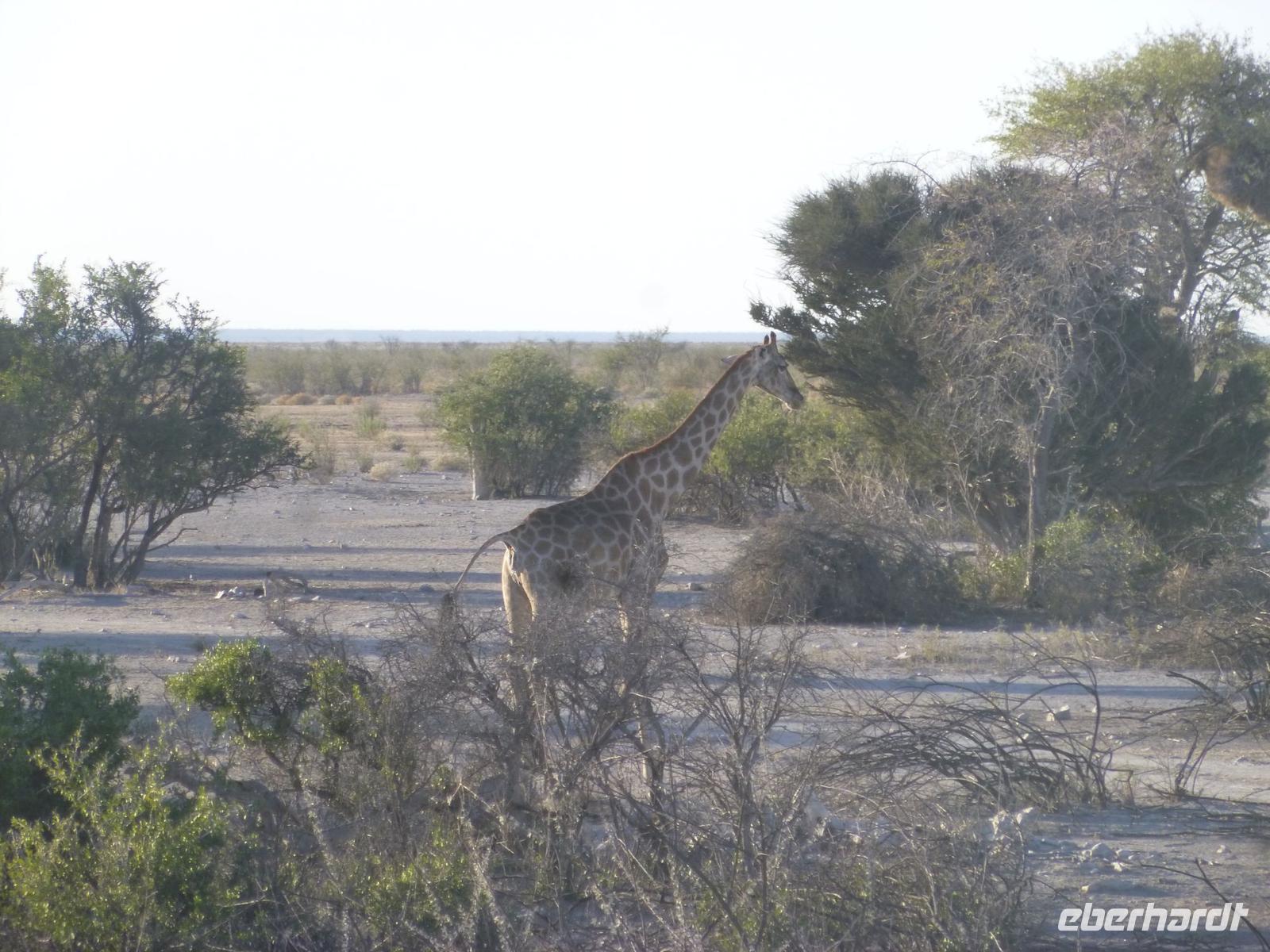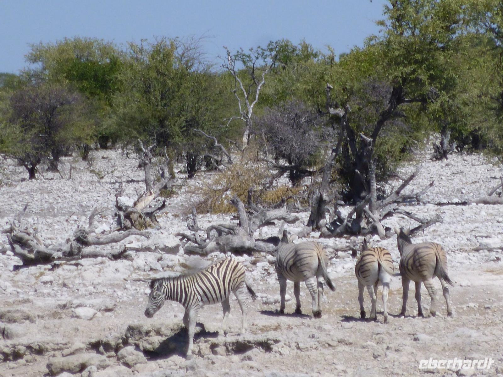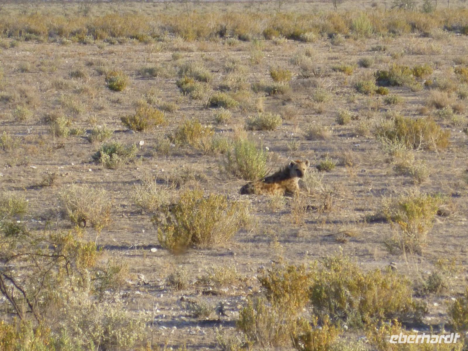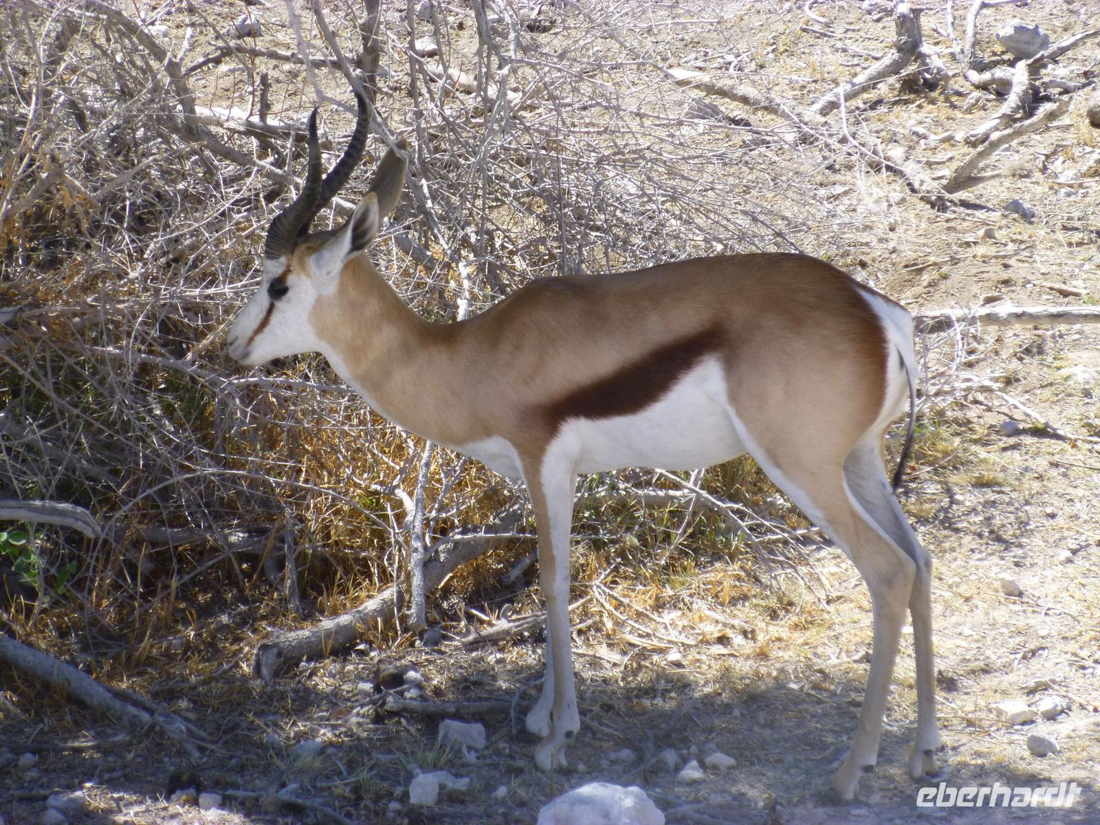 Wir fahren durch den Nationalpark und beobachten einige Tiere wie Sträuße, Zebras, Kuhantilope, Riesentrappe, Kudus und den Sekretär. An einem Wasserloch hatten wir besonders viel Glück endlich haben wir Löwen gesichtet - wir waren happy. Wir erreichen die Etosha-Pfanne, die eigentlich um diese Zeit noch mit Wasser gefüllt ist, durch die große Trockenheit jedoch wie ein großer Salzsee aussieht. In der unendlichen Weite des Sees sahen wir eine Fata Morgana. Man konnte denken, im Hintergrund einen großen See zu entdecken. Wir hielten in Namutoni an einem ehemaligen alten deutschen Fort. Bevor wir den Nationalpark verlassen haben, sahen wir noch die Dikdik-Antilope, die kleinste ihrer Art. Wir besuchten den Otjikotosee. Früher war dieser eine ehemalige Höhle, wo vor einigen Jahren das Dach herunter gestürzt ist und somit ein See entstanden ist. Bevor die deutschen Truppen sich zurück gezogen haben, wurden im See Waffen und Munitionen versengt. Diese wurden 1984 zum Teil geborgen und befinden sich im Museum in Tsuneb.