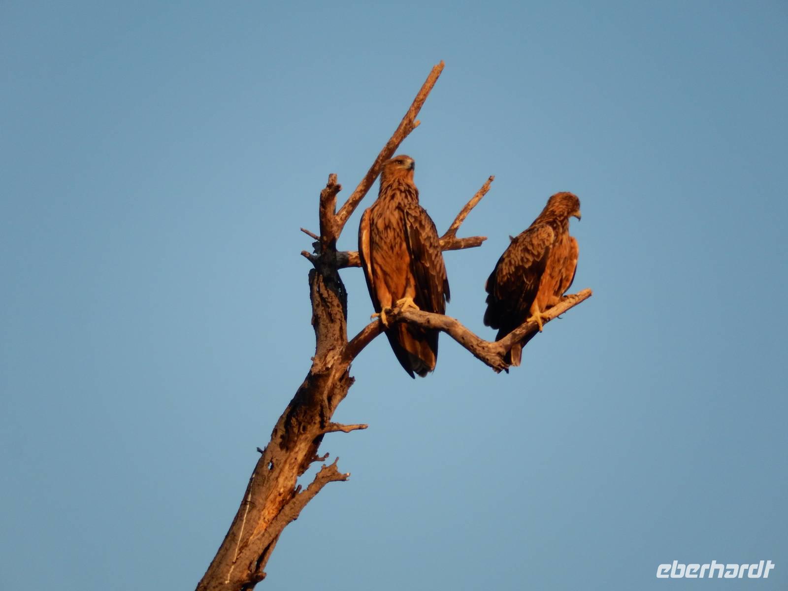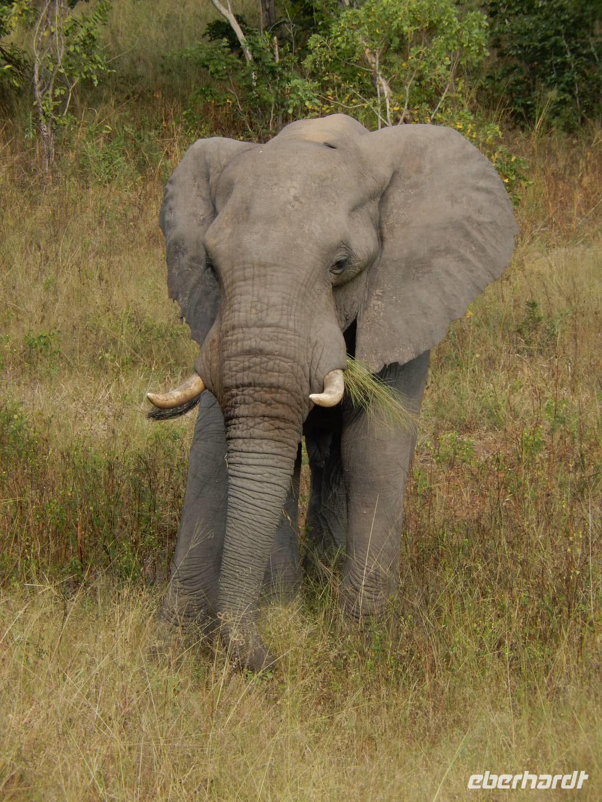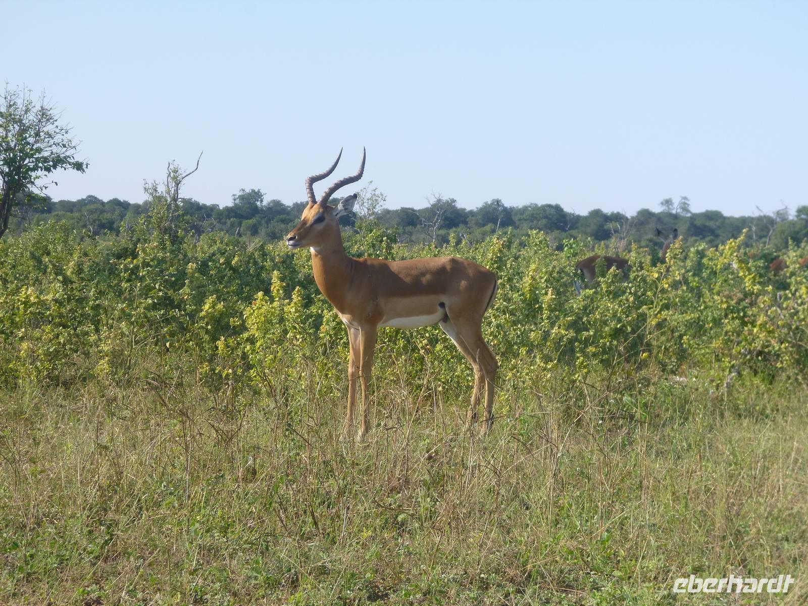 Noch vor Sonnenaufgang starten wir zu einer Jeep-Safari durch den Chobe Nationalpark. Nachdem wir gestern bei Ankunft am Nachmittag recht geschwitzt haben, lässt uns der kalte Fahrtwind trotz der ausgeteilten Decken nun frieren. Schließlich ist Winter auf der Südhalbkugel. Nachdem wir am Eingang zum Nationalpark angemeldet sind, biegen wir auf die Schotterpiste ab. Rasant fährt uns unser lokaler Guide Wenda durch den morgendlichen Nationalpark. Die Sonne geht gerade erst auf, als wir die ersten Geier und Komorane auf den Bäumen erspähen. An diesem Morgen können wir unsere Big Five vervollständigen. Viele Büffel begegnen uns während der Pirsch. Des Weiteren begegnen uns Giraffen, Impalas, Paviane, Perlhühner und große Elefantenherden. Neben den ersten Sonnenstrahlen wärmt uns zwischendurch zusätzlich eine Tasse heißer Kaffee oder Tee. Dann setzen wir unsere Pirsch fort. Ein Funk ertönt. Es wurde etwas gesichtet. Schnellen Wegs fahren wir zur angegebenen Stelle. Doch wir sind zu spät. Leider sehen wir keine Löwen. Eine andere Begegnung lässt uns diese Enttäuschung aber vergessen. Vor uns hat ein anderer Jeep gehalten. Ein Elefant befindet sich unmittelbar neben dem Auto und setzt seinen Weg in unsere Richtung fort. Alle sind mucksmäuschenstill als er zum Greifen nah unser Auto seelenruhig passiert. Was für ein Moment!