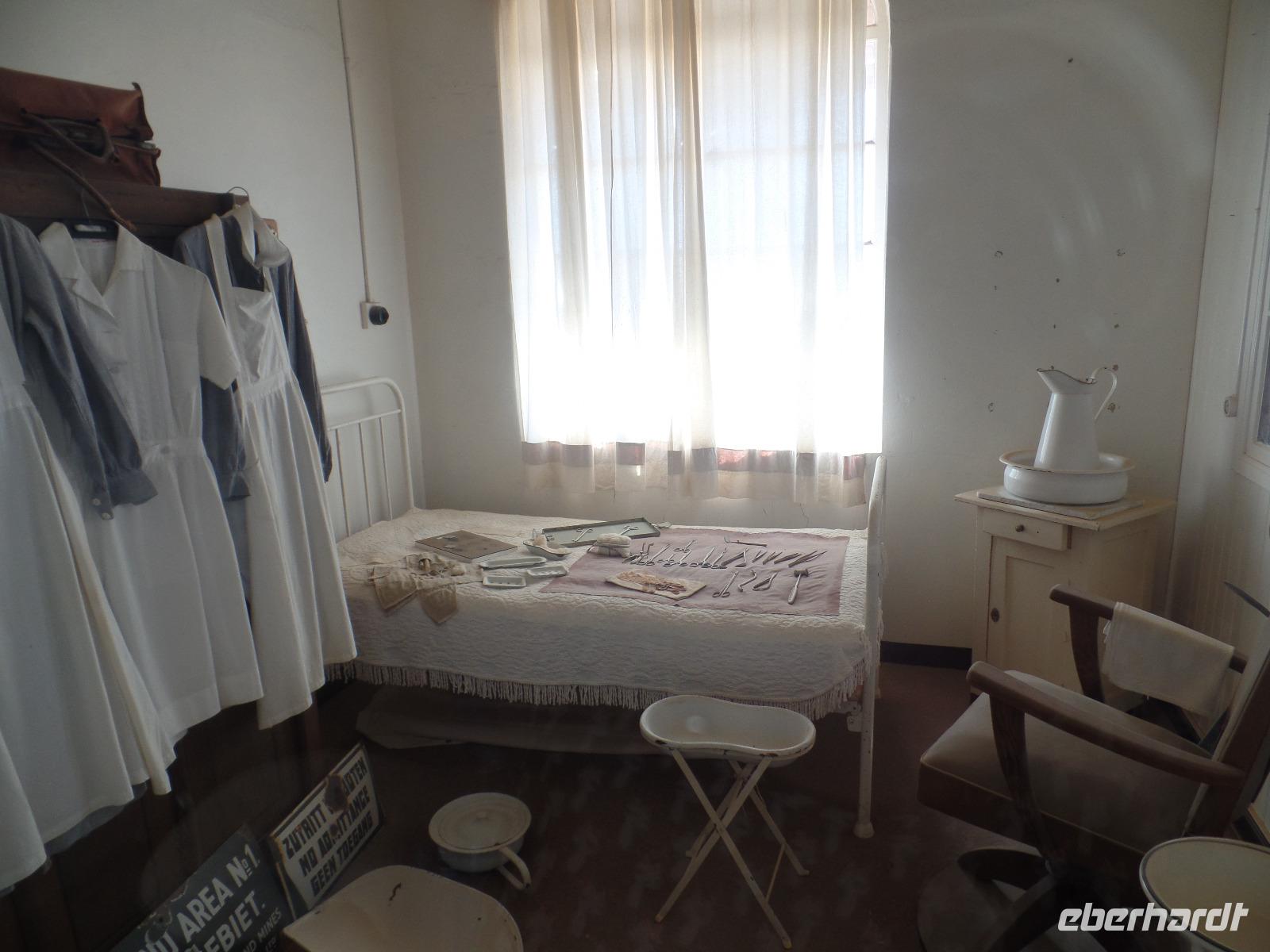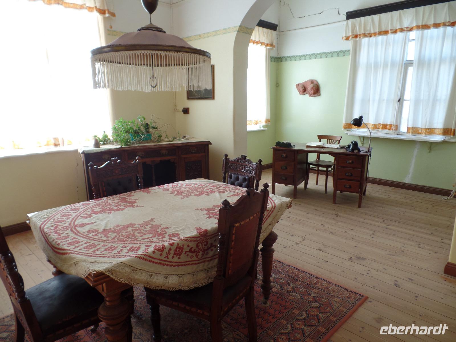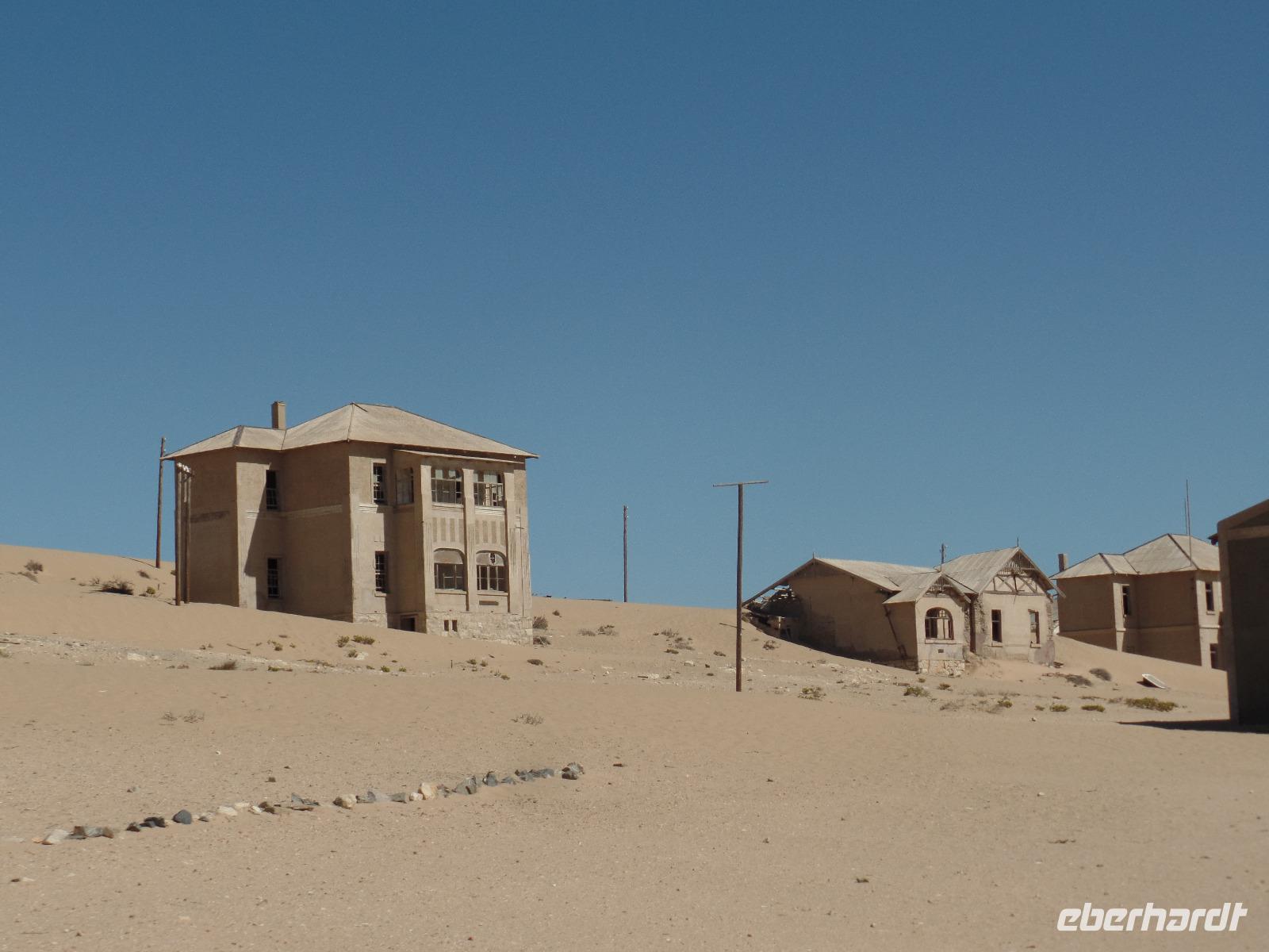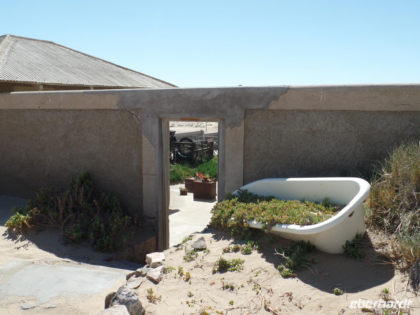 Am Morgen statteten wir der Felsenkirche in Lüderitz bei einem Spaziergang in der Stadt einen Besuch ab. Die kleine verträumte Stadt erinnerte uns mit ihren Fachwerkhäusern an das Erzgebirge. Selbst den Bergarbeitergruß „Glück auf" konnte man an einem Haus entdecken. Nachdem wir unseren reparierten Reifen abgeholt hatten konnten wir weiter nach Kolmanskop am Rande des Diamentensperrgebietes der Namib fahren. Während der Besichtigung stapften wir durch den tiefen Sand in der Geisterstadt und konnten uns durch anschauliche Wohnbeispiele in die Zeit des Diamantenfiebers zurückversetzen. Die Sonne wurde langsam heißer und so setzten wir unsere Reise in Richtung Landesinneren fort. Wir fuhren wieder durch endlose Weiten, sahen hier und da ein Oryx umherlaufen, fuhren an einem kunstvoll anmutenden Wasserrad vorbei, entdeckten bei einer Pause ein leider verendetes Zebra und kamen schließlich im kleinen Helmeringhausen an. Am Ortseingang konnte man schon den Ortsausgang sehen, dennoch war es allen bekannt, die das Buch „Hummel Dumm" gelesen hatten. Im üppig bewachsenen Garten einer Lodge konnten wir der Hitze in einer kleinen Mittagspause entgehen und fuhren anschließend weiter zur Dabis-Farm. Farmer Jörg empfing uns sehr herzlich und man hatte beim Kaffeetrinken das Gefühl, bei Freunden angekommen zu sein. Stolz erzählte er von seiner Familie und seiner Farm, welche er uns anschließend mit nicht weniger Freude bei einer Rundfahrt mit dem Jeep zeigte. Endlich sahen wir auch einige Kudus in der Ferne, seine eigens gezüchtete Schafherde durfte natürlich auch nicht fehlen. In der Dämmerung kamen wir wieder beim Farmhaus an, schnell den Staub und Sand des Tages abgeduscht, wartete schon das leckere Abendessen aus ökologischem Schafsfleisch, Salat und Auflauf auf uns. Spannende Geschichten rund um das Farmleben rundeten diesen Tag ab und wir gingen geschafft in unsere Bungalows schlafen.