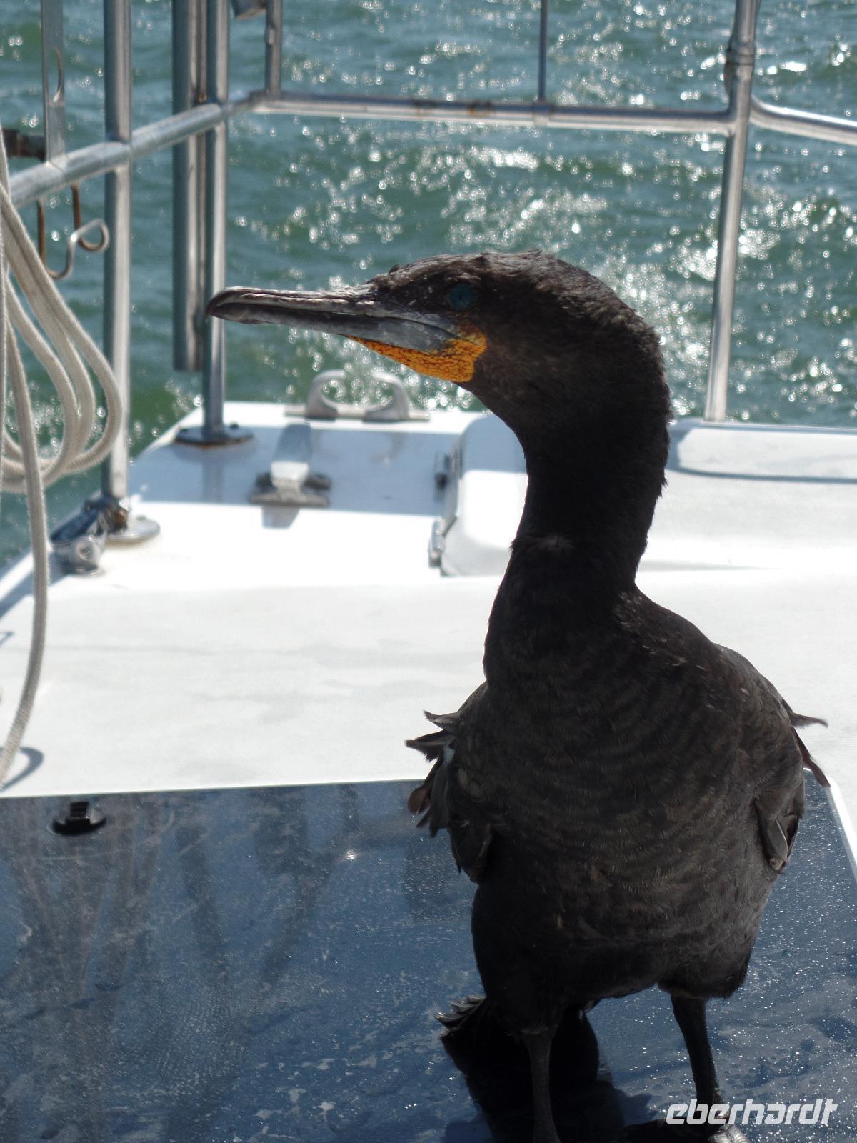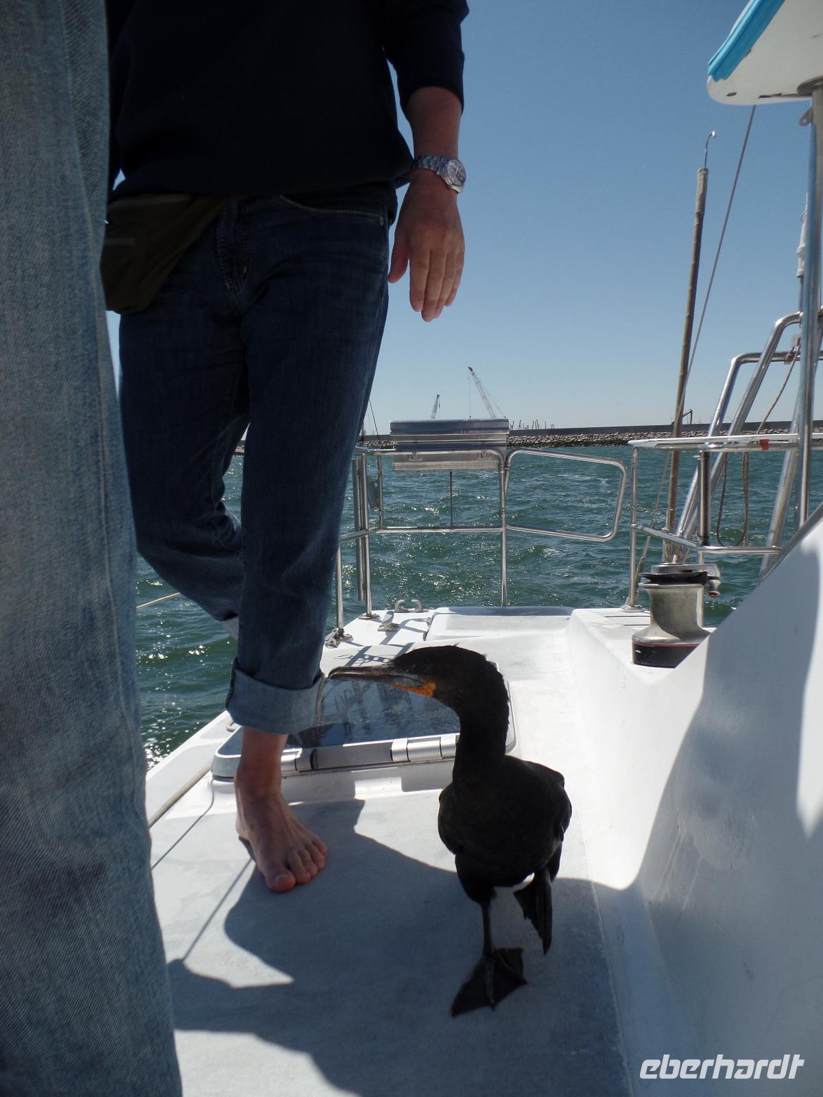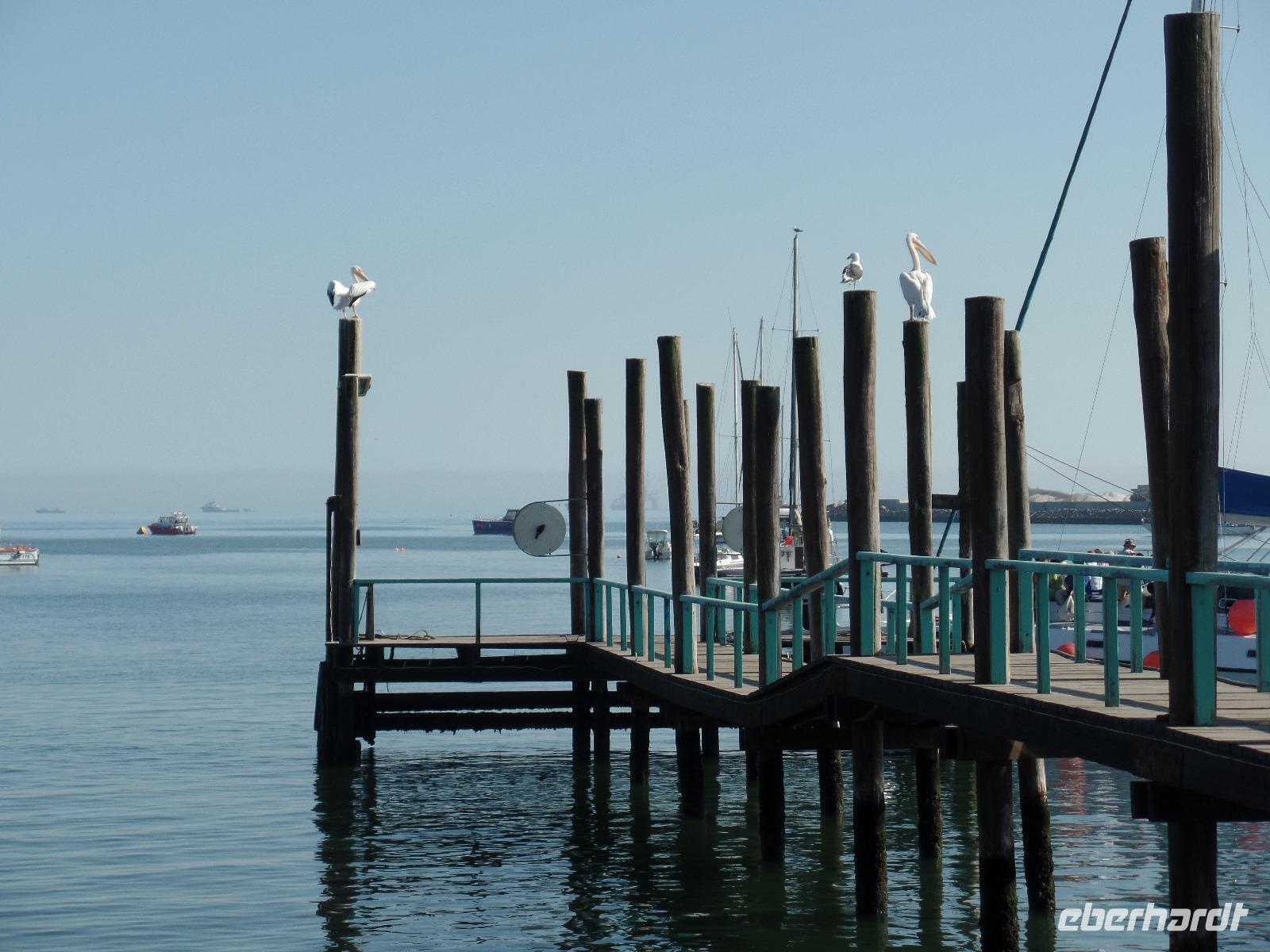Am Morgen fuhr uns Murray zum Hafen in Walvis Bay. Vor dem Katamaran warteten schon Pelikane und eine Robbe auf uns. Die Fahrt fing mit der Fütterung der Pelikane spannend an. Die Tiere schienen überhaupt keine Scheu vor uns Menschen zu haben. Vertraut setzten sie sich auf die Reling und wir konnten ihnen so nah wie nirgends kommen. Natürlich wurde die Chance genutzt, einzigartige Selfies zu schießen. Wir trauten unseren Augen kaum, als aus dem Meer eine Robbe auf unseren Katamaran gesprungen kam. Auch sie schienen das Boot und die Besatzung zu kennen. Einmal hübsch pohsen und schon kam ein kleiner Fisch als Leckerli und weg waren sie wieder. Dieses bunte Treiben zog sich noch eine ganze Weile, wir hatten wirklich regen Besuch auf dem Boot.