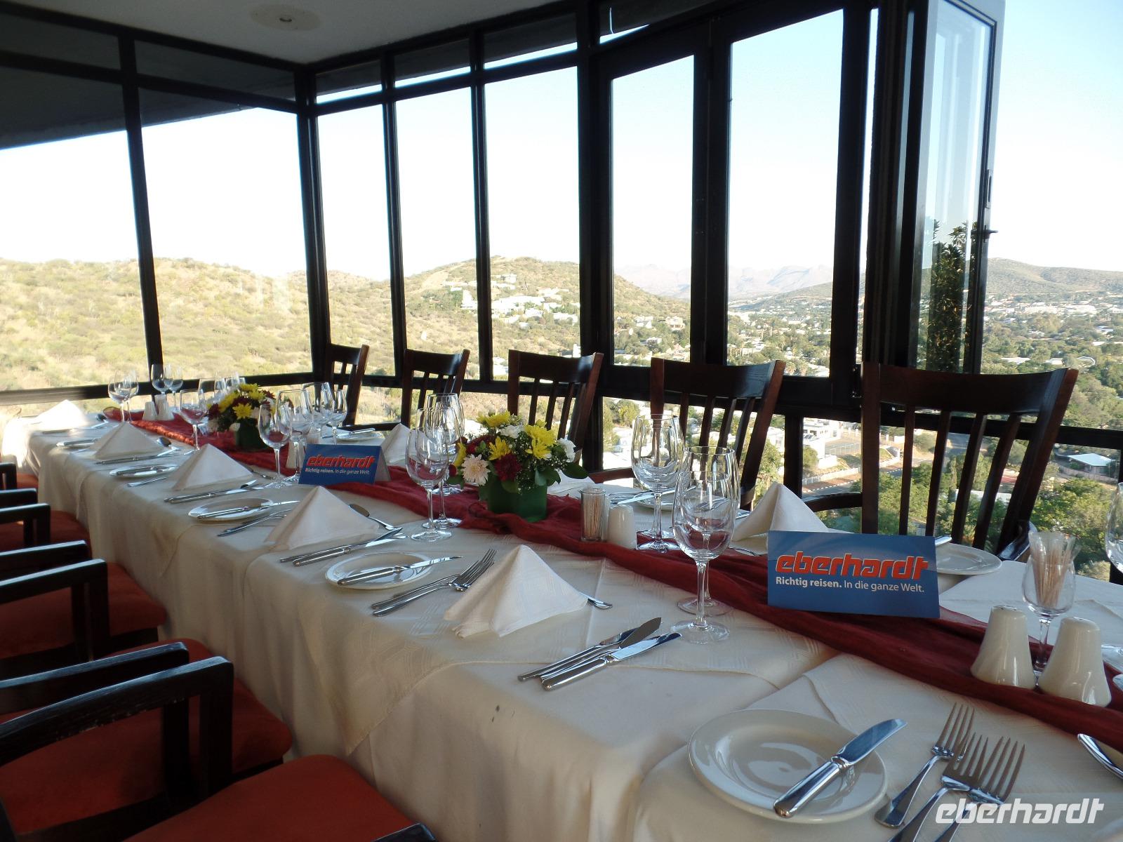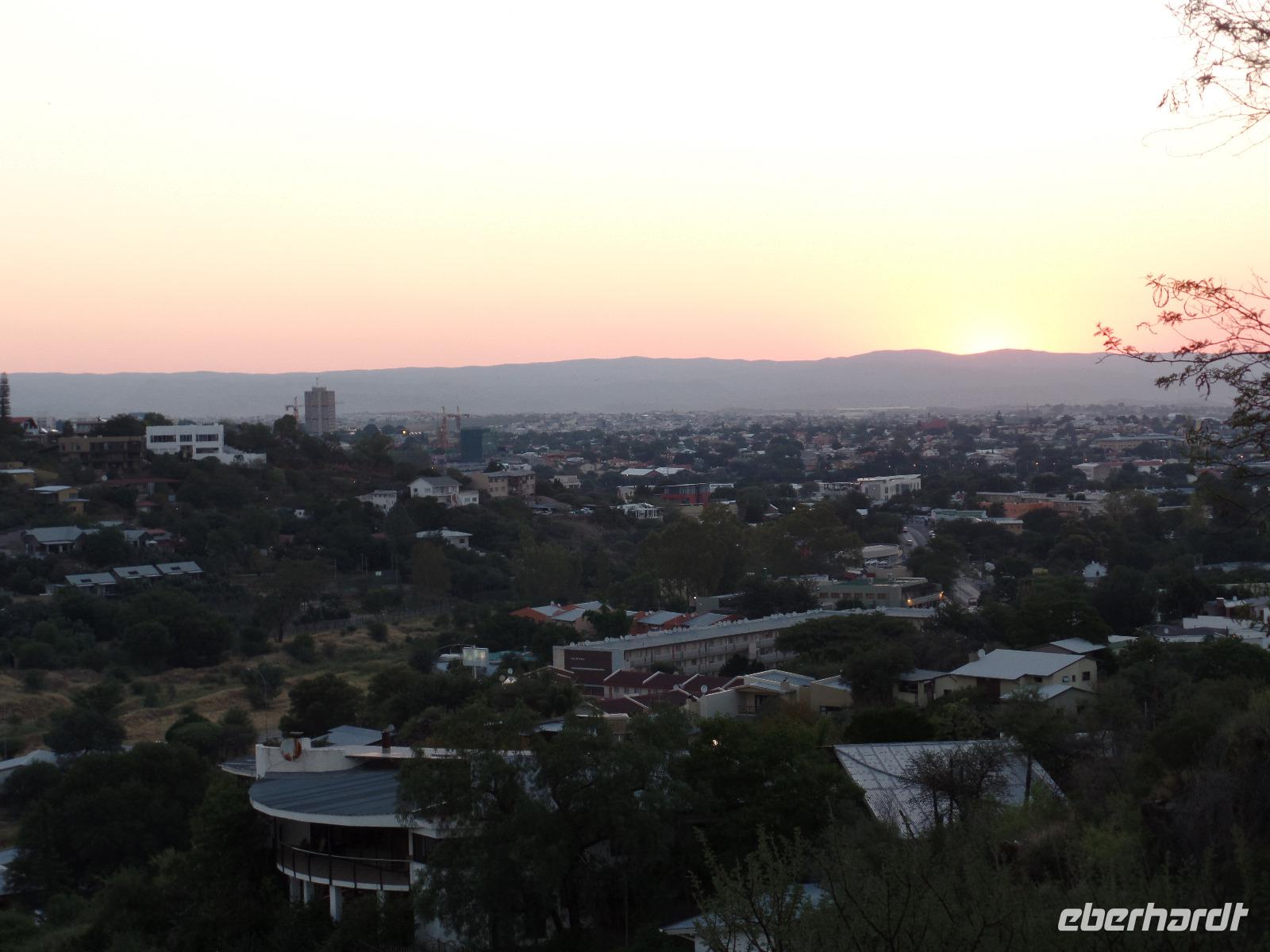 Unser erster Halt war in Otjiwarongo, eine kleine wohlhabende Stadt in einer sehr fruchtbaren Region. In der Hererosprache bedeutet der Name "schöner Platz der fetten Rinder". Die deutsche Schmalspurlokomotive, die bis 1960 die Strecke Swakopmund - Tsumeb befuhr, war ein gefundener Ort für eines unserer Gruppenbilder. Für das Mittagessen legten wir in Okahandja eine Pause ein, bevor wir die von riesigen Termitenhügeln gesäumte Straße nach Windhoek entlang fuhren. In der Hauptstadt von Namibia angekommen, erfuhren wir die Stadt von unserem Safari-Bus aus und anschließend bei einem Spaziergang. Danach konnten wir nach Lust und Laune die Stadt auf eigene Faust erkunden. Die Märkte hatten es uns Damen besonders angetan. Unser Hotel lag sehr idyllisch auf einem Hügel über Windhoek, somit hatte man eine fantastische Sicht und einen wunderschönen Sonnenuntergang. Den letzten Abend in Namibia genossen wir, wie immer, in geselliger gemeinsamer Runde. Wir bedankten uns bei Bianca und Murray für ihre wundervoll liebevolle Arbeit. Ohne sie, hätten wir Namibia nie so hautnah erfahren.