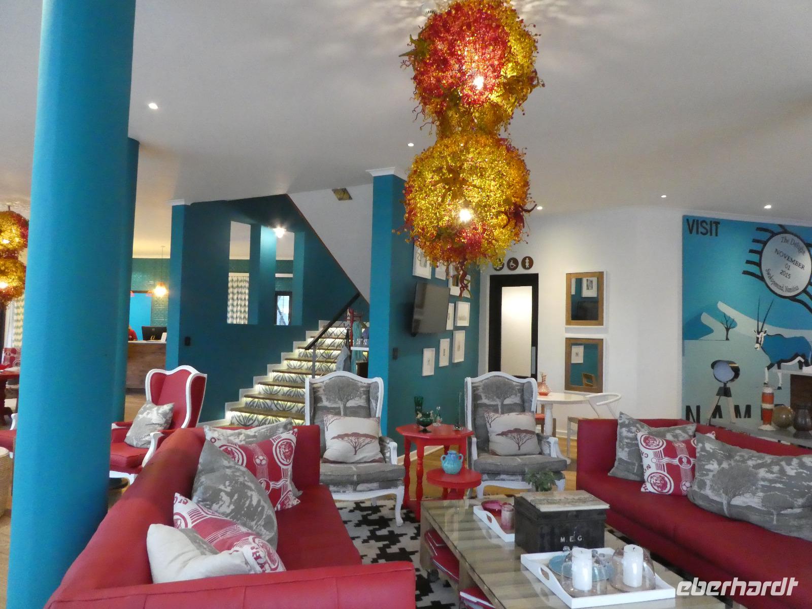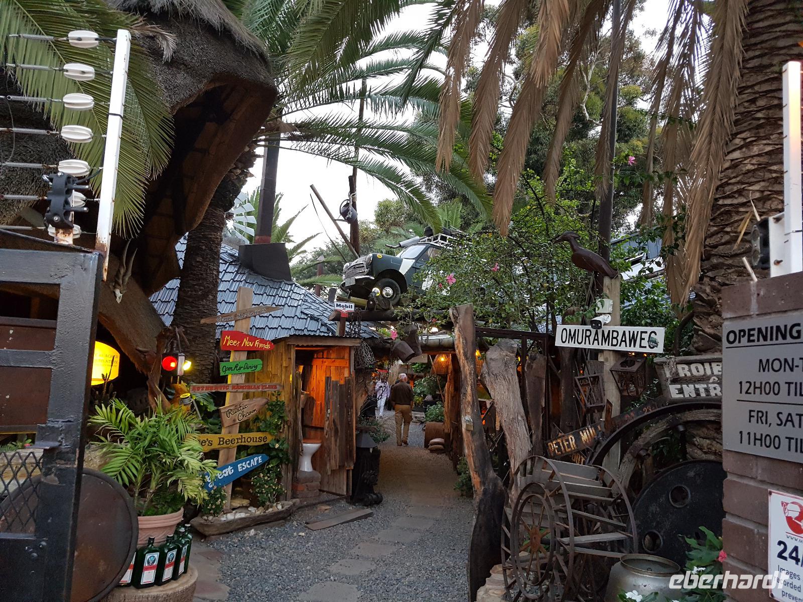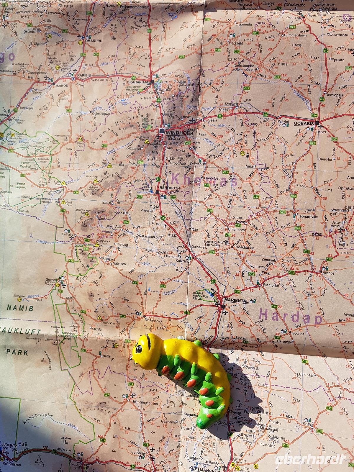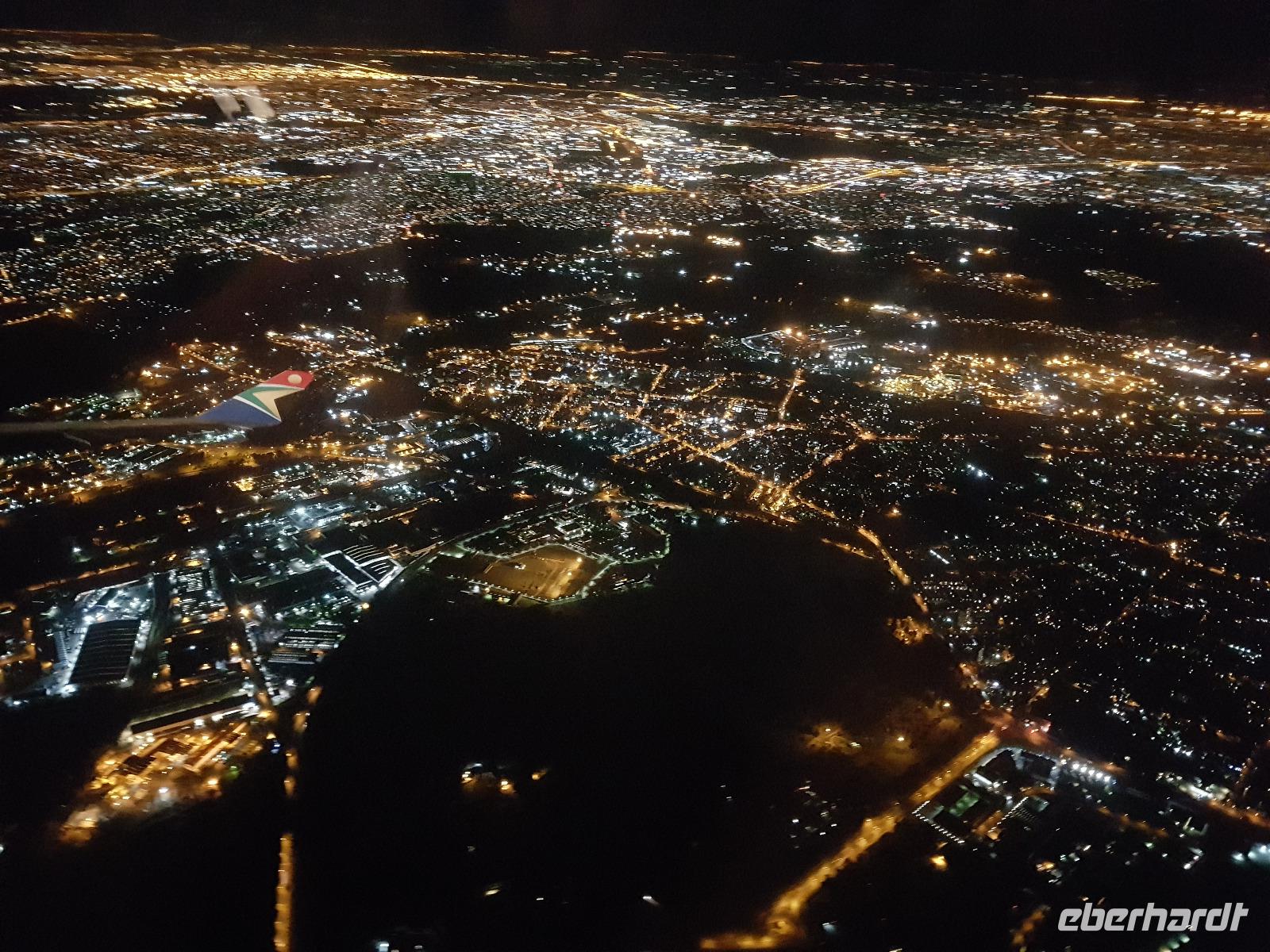 Heute stand eine 400 km Fahrt gen Süden auf dem Programm und dazu kam eine Strassensperrung wegen einer Sprengung. So beeilten wir uns in unseren Pausen und blieben nur über Mittag in Okahandje etwas länger. Dort gab es ein schönes Cafe und den Markt mit typischen Schnitzereien. Jeder nutzte die Pause nach seinem Geschmack und bevor wir weiter fuhren, bedankten wir uns bei Barbara und Vivien für die tolle Betreuung und die unvergesslichen Tage in Namibia. Nach Windhoek fuhren wir auf einer breiten Autobahn ähnlichen Strasse und erreichten unser Hotel Thule gegen 14 Uhr. Bis dahin waren wir in unserem Truck 4158 km gefahren und vor allem Vivien hatte eine grandiose Leistung vollbracht. Viele km waren Sandpisten, die ihm alles abverlangten. Zum Abendessen holte er uns wieder ab und wir verbrachten unseren letzten gemeinsamen Abend in Joes Bierhouse. Das urige Lokal war ein Erlebnis und die Portionen recht gross. Barbara traf endlich mal ihren Mann Fritz wieder, der auch als Guide arbeitet und mit einer Gruppe dort zum Abgesessen war. Wieder zurück im Hotel Thule trafen wir uns auf der Terrasse zu einem Drink und erfreuten uns am herrlichen Ausblick auf das Lichtermeer von Windhoek unter uns.