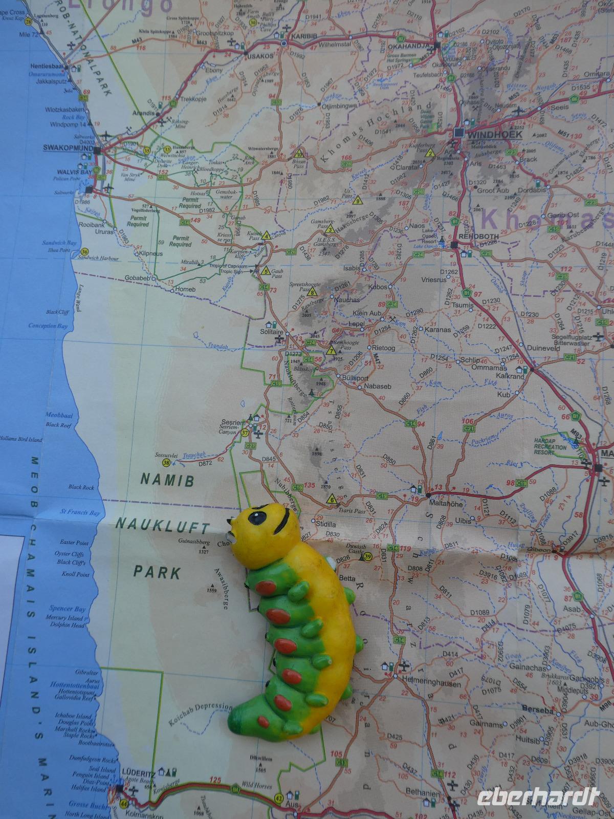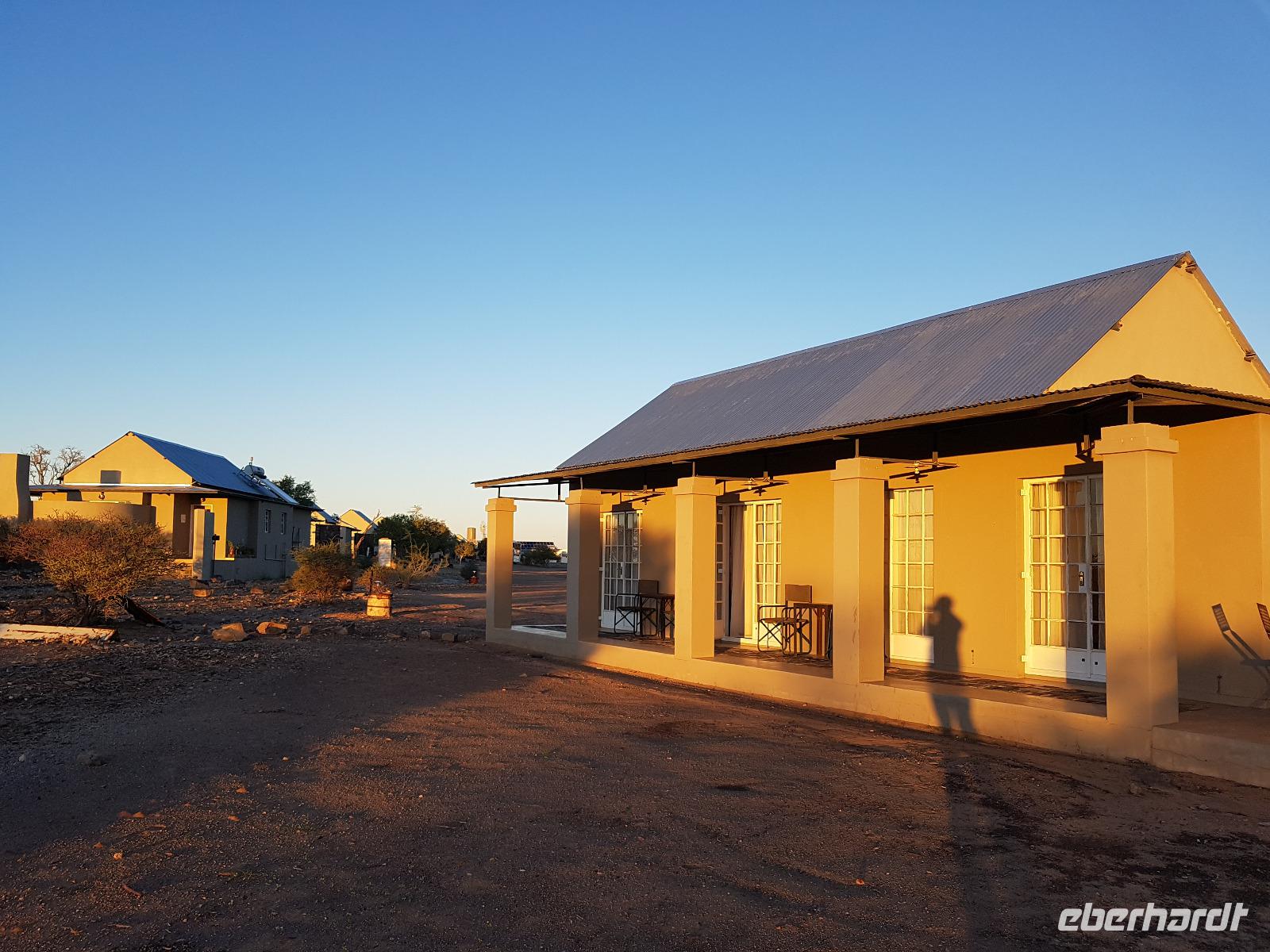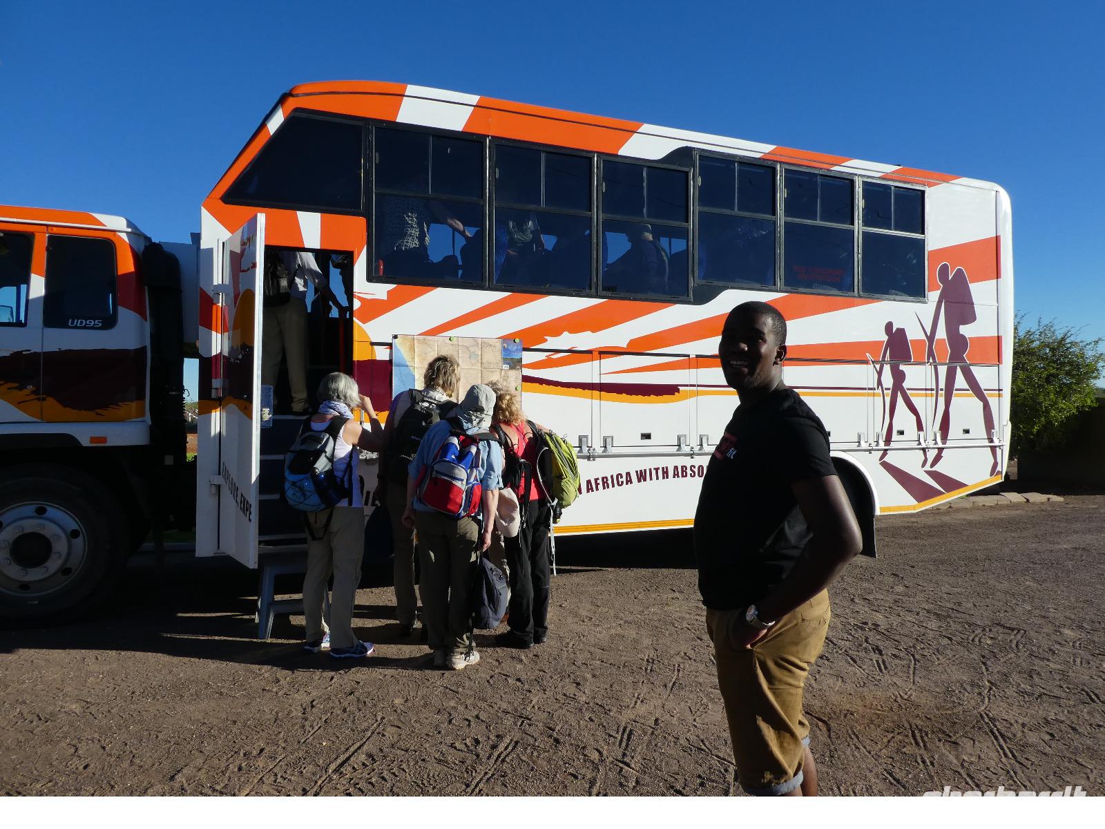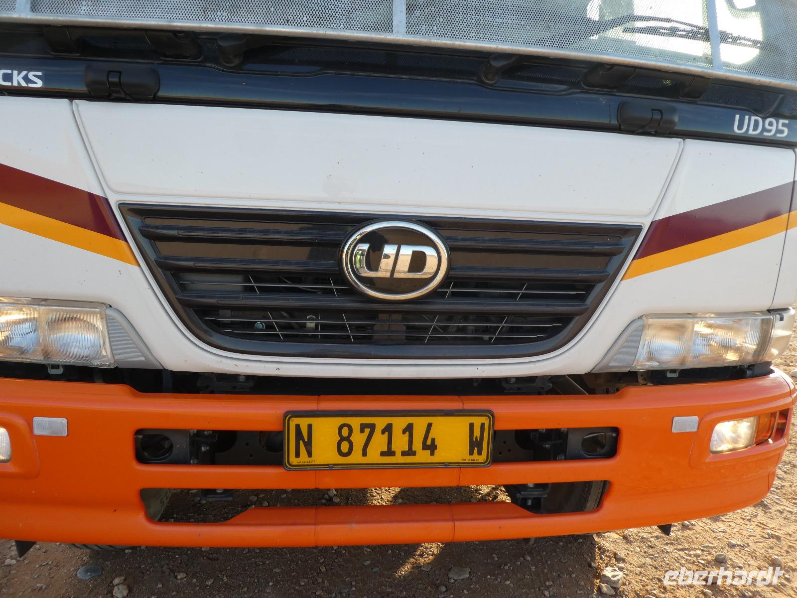 Endlich war es soweit, unsere Reise nach Namibia begann. Von Dresden, Leipzig und Berlin flogen wir mit Lufthansa nach München und von dort weiter am späten Abend mit South African Airways über Nacht nach Johannesburg. Dort trafen wir am Morgen ein, passierten die Pass- und Sicherheitskontrolle und flogen dann noch einmal reichlich 2 Stunden nach Windhoek in Namibias Hauptstadt. Bereits im Flugzeug hatten wir die Einreisekarten ausgefüllt und trotzdem brauchte es einige Geduld an der Passkontrolle. Dann endlich nahmen wir unsere Koffer und draussen erwartete uns Barbara. Sie wird uns auf der gesamten Reise begleiten. Noch Geld umtauschen und dann endlich waren wir in der Sonne Afrikas und gingen zu unserem Truck. Er wurde unser "zu Hause" auf den Asphalt- und Sandpisten in den nächsten 14 Tagen. Unsere Koffer wurden in grosse Fächer verladen und wir nahmen hoch oben Platz. Nun ging es richtig los. Vivien, unser Fahrer stellte eine kleine Fussbank auf, damit die unterste Stufe besser zu erreichen war. Zunächst fuhren wir hinein nach Windhoek, um noch einiges einzukaufen und dann ging es immer gen Süden bis nach Mariental. Bei Sonnenuntergang endlich erreichten wir die Napa Lange Lodge, bezogen unsere Bungalows und gingen zum Essen. Wir waren überwältigt vom tollen Buffet am Abend und freuten uns danach nur noch auf unsere Betten nach der langen Anreise. Für Tierbeobachtungen am Wasserloch waren wir zu müde.