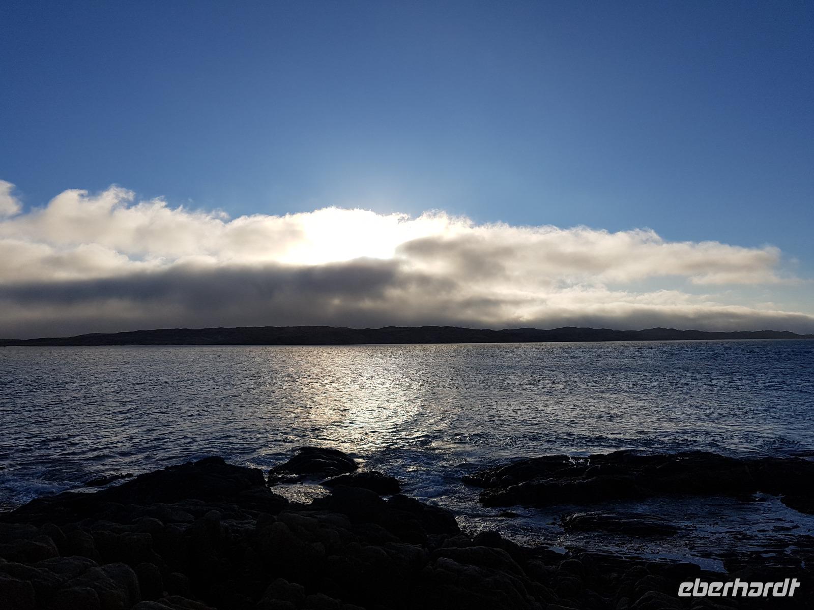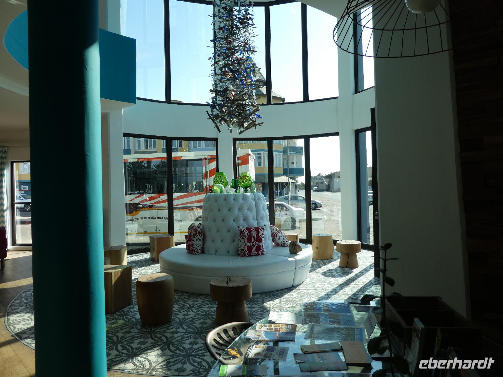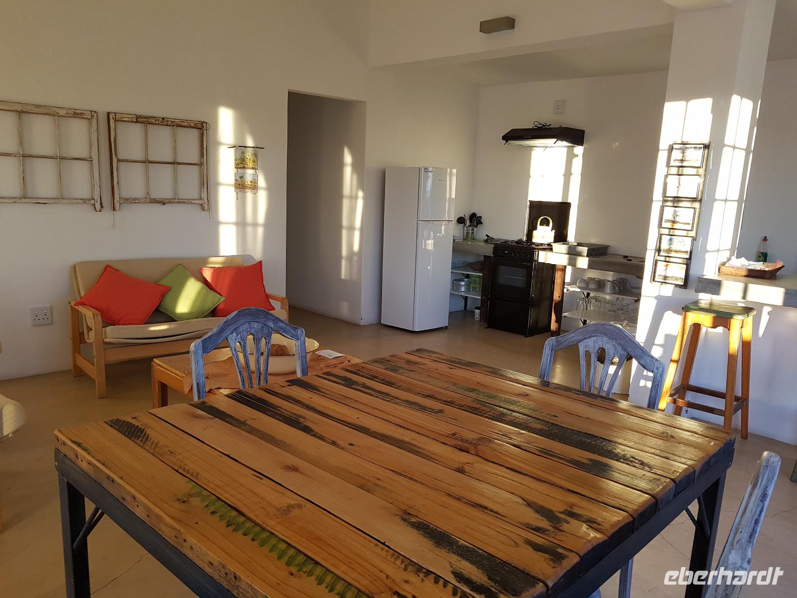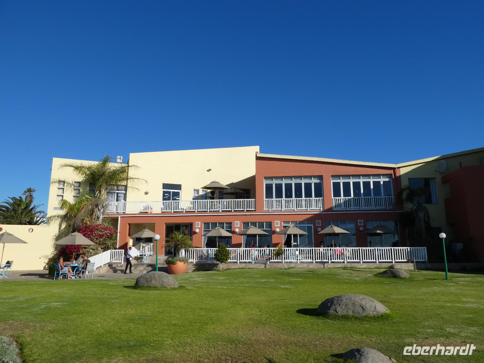 Nach dem Frühstück fuhren wir ein kurzes Stück mit dem Bus bis zu einem alten Kalkofen. Dort erwartete uns der Besitzer und erklärte uns den Kalkofen und die Geschichte des Geländes. Eine lange Fahrt brachte uns danach durch ständig wechselnde Landschaften Landschaften bis zu den Wildpferden. Unterwegs hielten wir an einer Schaffarm um einzukaufen, einen Kaffee zu trinken und die gepflegten Toiletten zu nutzen. Barbara berichtete uns über die Geschehnisse im ersten Weltkrieg, über den Bau der Eisenbahnlinie und verschiedene Schicksale von Deutschen. Auch zu den Diamantenfunden gab es die ersten Informationen. An einem Wasserloch hofften wir Wildpferde zu sehen aber dort waren Oryxe zu bewundern. Sogar eine Toilette ganz sauber war in dieser Wildnis. Weiter fuhren wir vorbei an Aus zu den Lüderitz vorgelagerten Buchten bis zum Dias Kreuz. Wir stiegen aus und genossen die feuchte Luft am Atlantik. Ganz plötzlich kam Nebel auf vom Atlantik und nahm uns die Sicht. Wir fuhren zurück nach Lüderitz Bucht zur Felsenkirche, denn von dort oben sahen wir unser Nesthotel am Meer sehr schön liegen. Wir checkten ein und hatten Zeit zum schwimmen, nochmals in die Stadt spazieren oder einfach nur zu relaxen. Vor dem Abendessen besuchten wir die dann geöffnete Felsenkirche und konnten die von Deutschen gesprendeten bunten Fenster bewundern. Das Abendbrot nahmen wir gemeinsam ein und jeder wählte selbst sein Essen aus der Karte.