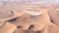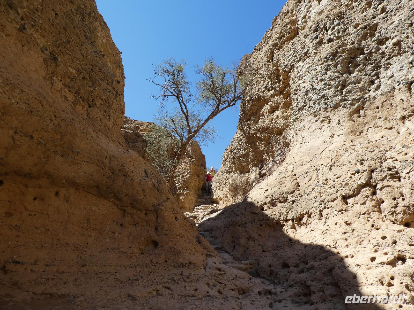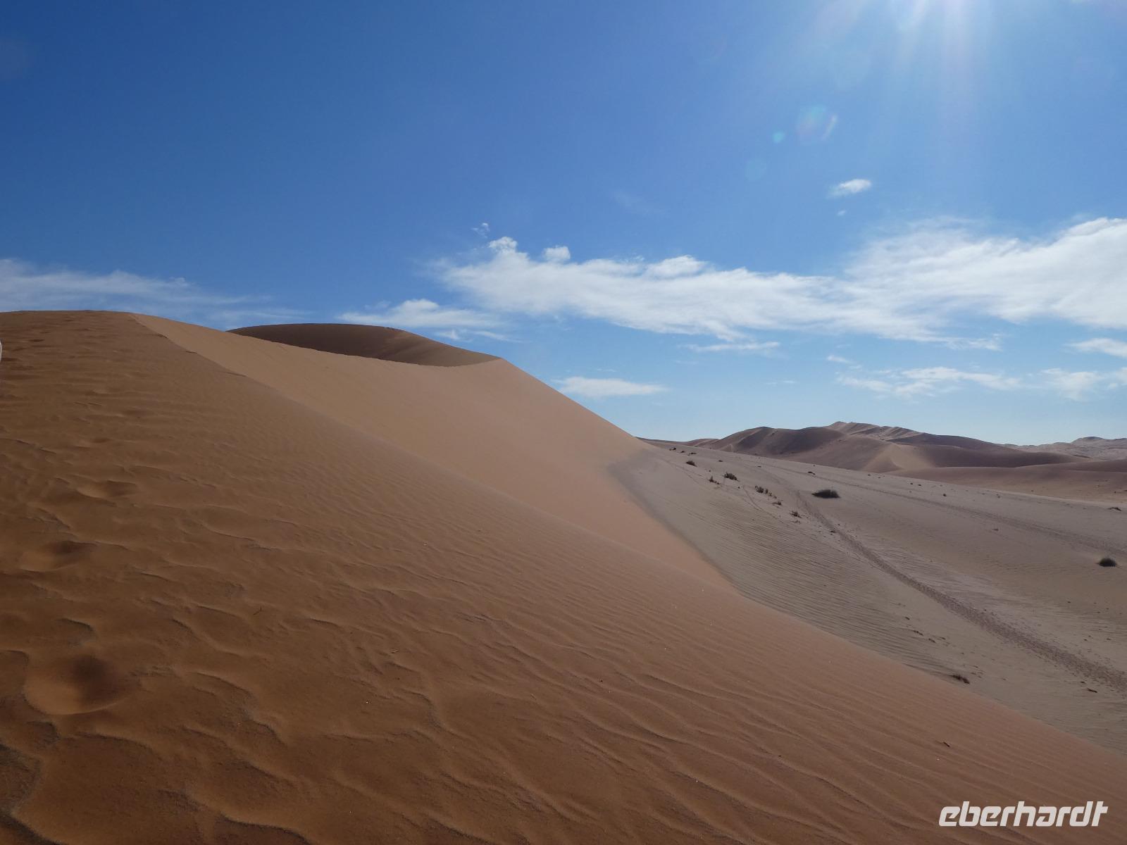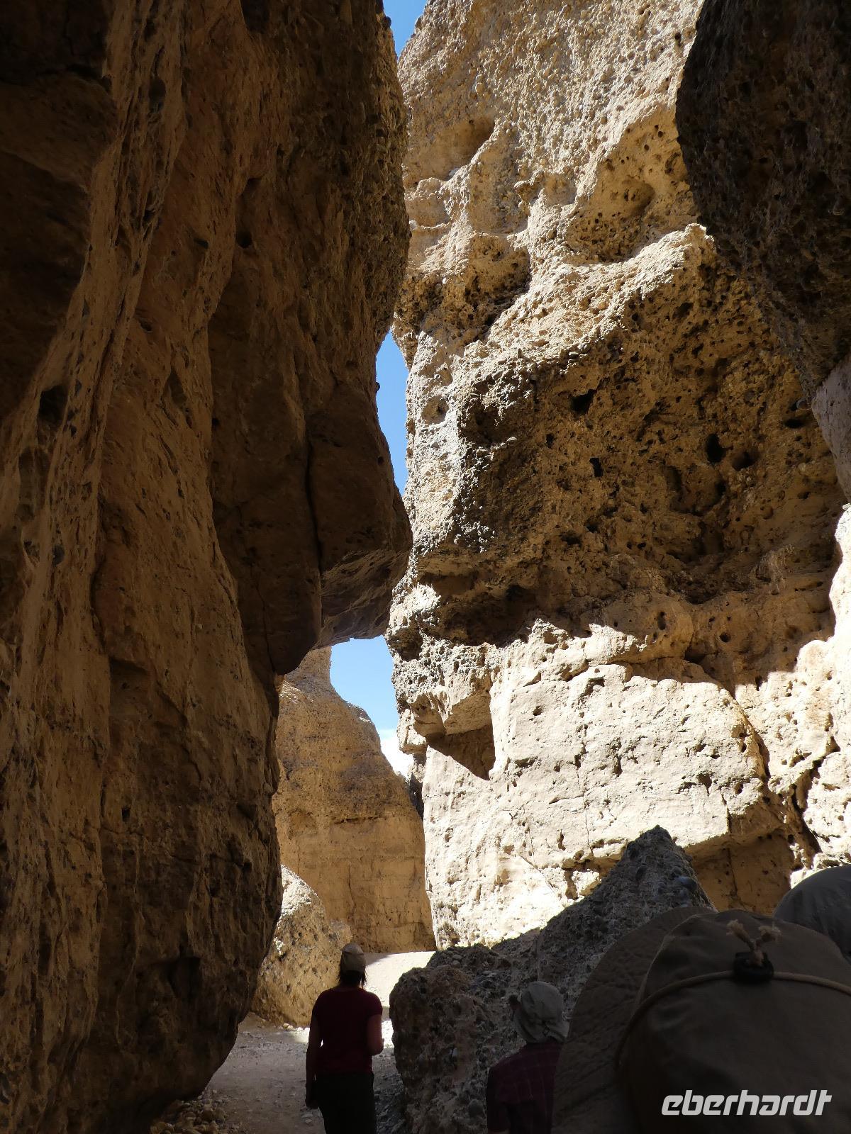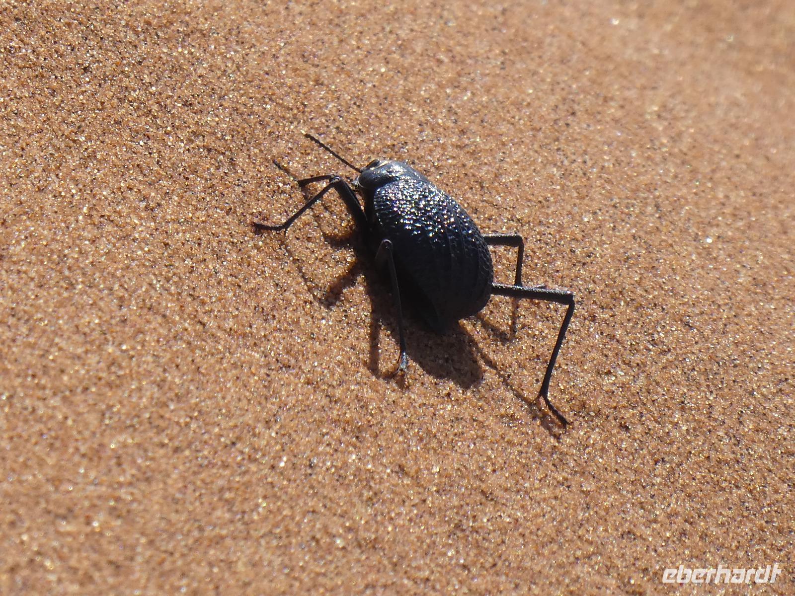 Heute stand ein ganz besonderes Erlebnis auf dem Programm und da mussten wir sehr früh starten. Wir tranken nur einen Kaffee und nahmen unsere Frühstückspakete mit. Noch vor Sonnenaufgang erreichten wir das Tor zum Sossusviel Nationalpark. Eine lange Schlange von Fahrzeugen wartete. Aber das Tor öffnete erst bei Sonnenaufgang. Deshalb machten wir noch eine Pause und Barbara bestellte für den Nachmittag Sandwiches. Wir fuhren hinein und machten viele Fotostopp an den Dünen. Barbara zeigte uns verschiedene Spuren im Sand und berichtete über die Tiere. Noch ein Gruppen Foto im roten Sand und dann hielten wir an der berühmten Düne 45. Wir stiegen ein Stück hinauf und machten wieder viele Fotos. Dann ging's mit unserem Truck zum 4x4 Parkplatz und weiter in offenen Jeeps ins Sossusvlie zur Mamadüne. Wir hatten genügend Zeit, um ganz hinauf zu gehen. Es war schweisstreibend - 2 Schritte vor und einer zurück tief im Sand. Die Mühe hatte sich aber gelohnt und wir hatten traumhafte Ausblicke in alle Richtungen. Wieder unten war die Gruppe vereint und zurück fuhren wir wieder erst mit den Jeeps und weiter mit unserem Truck bis zum Eingang in den Sesriemcanyon. Wir stiegen hinab in den Canyon und liefen unten durch die Felsen - ein unvergessliches Bild. Wieder oben gab es Wein und Datteln, denn heute war unser Bergfest und leider die Hälfte der Reise vorbei. Noch einmal übernachteten wir in der Hammerstein Lodge.