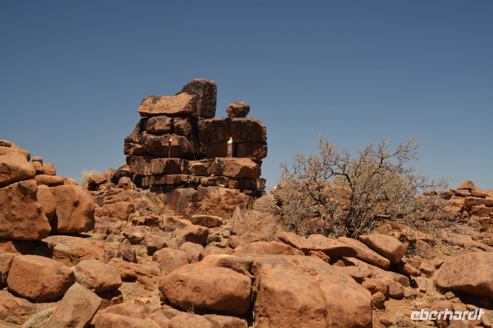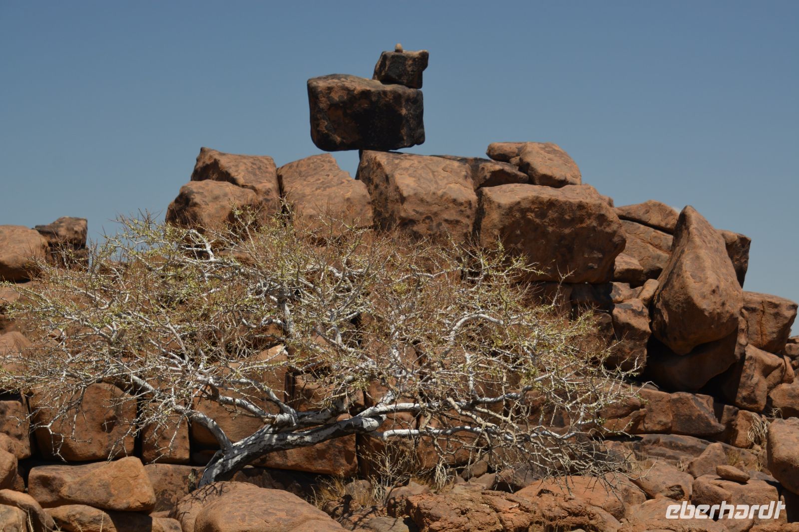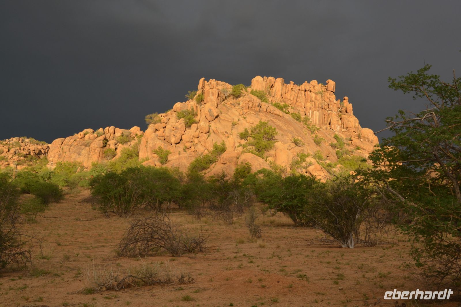 Wir kommen durch die kleine Siedlung Tubosis in der es eine Grundschule gibt. Es ist der nächstgelegene Ort unserer Lodge. Interessante Felsen aus Granitgestein türmen sich vor uns inmitten der Halbwüstenlandschaft auf.