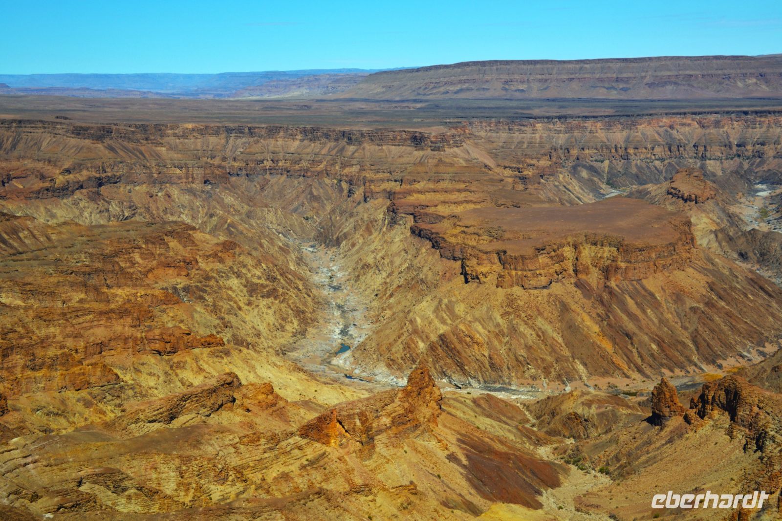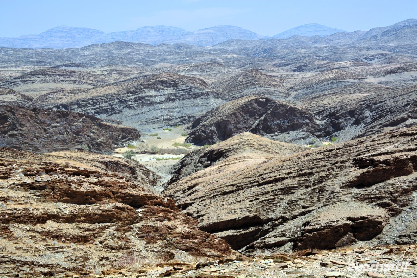 Heute Morgen nach dem wieder köstlichen Frühstück fahren wir los um den zweitgrößten Canyon der Erde, den Fish River Canyon zu besuchen. Wir müssen ein Stückchen über eine rumpelige Piste fahren und bemerken an den Wasserpfützen die es am Wegesrand gibt, dass es hier wohl doch stark geregnet haben muss. Heute ist der Himmel aber klar was uns natürlich freut.