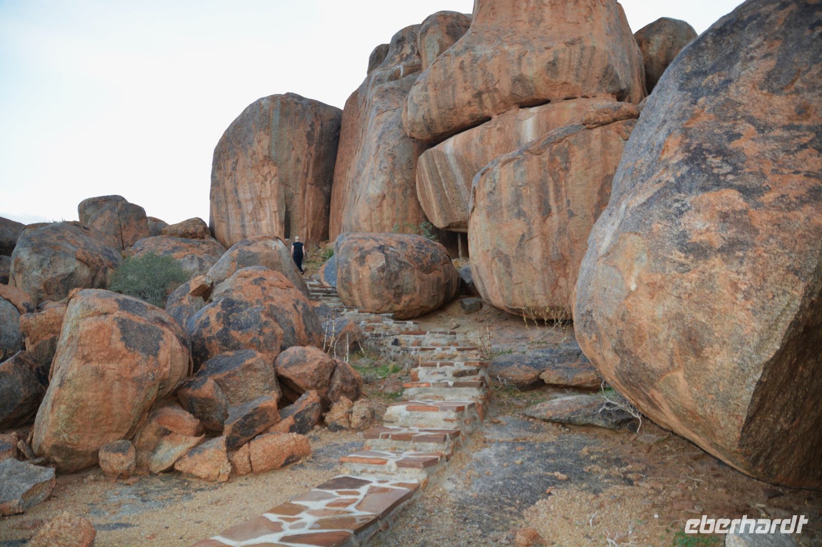 Nach diesem kleinen Halt fahren wir zu dem sog. „Spielplatz der Giganten“ und machen dort einen Spaziergang inmitten der Felsen. Wie von Menschenhand errichtet flankieren sie wie Burgmauern unseren Weg. Manche wirken wie moderne Skulpturen.