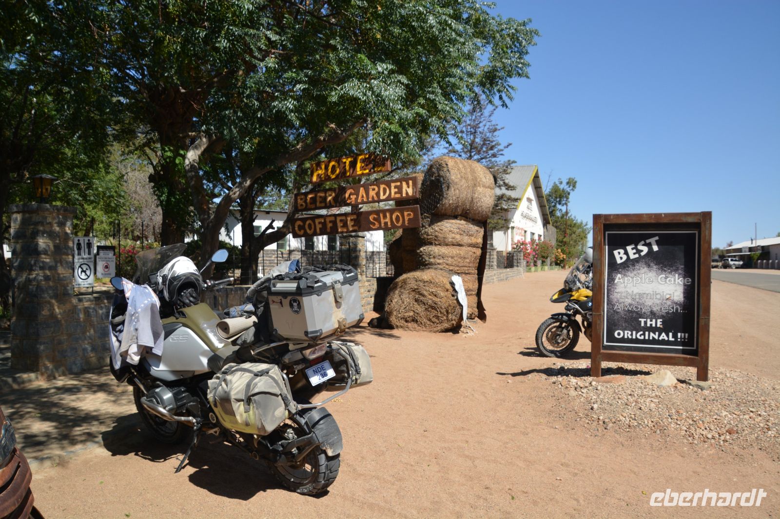 In Marienthal, ein Ort der sich mit dem Bau des Hardap-Dammes entwickelt hat machen wir unsere erste Pause an einem Supermarkt und einer Tankstelle.