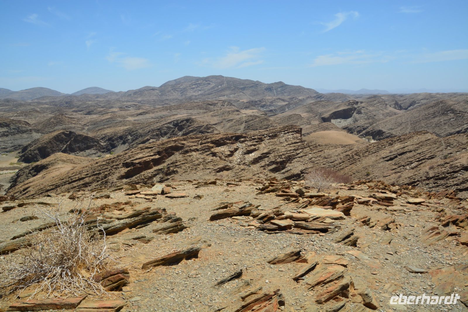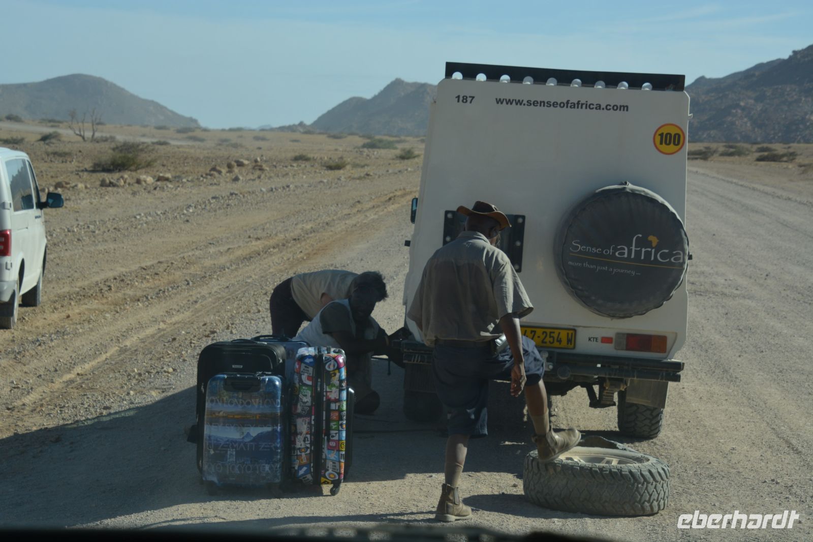 Nach einem Fotostopp geht es immer weiter. Wie kommen an einer Herde mit Damara-Schafen vorbei, eine Schafsrasse die für den lokalen Gebrauch wegen ihres Fleischs gehalten wird. Die Wolle wird bei den Tieren die an die klimatischen Bedingungen gewöhnt sind nicht verwertet.