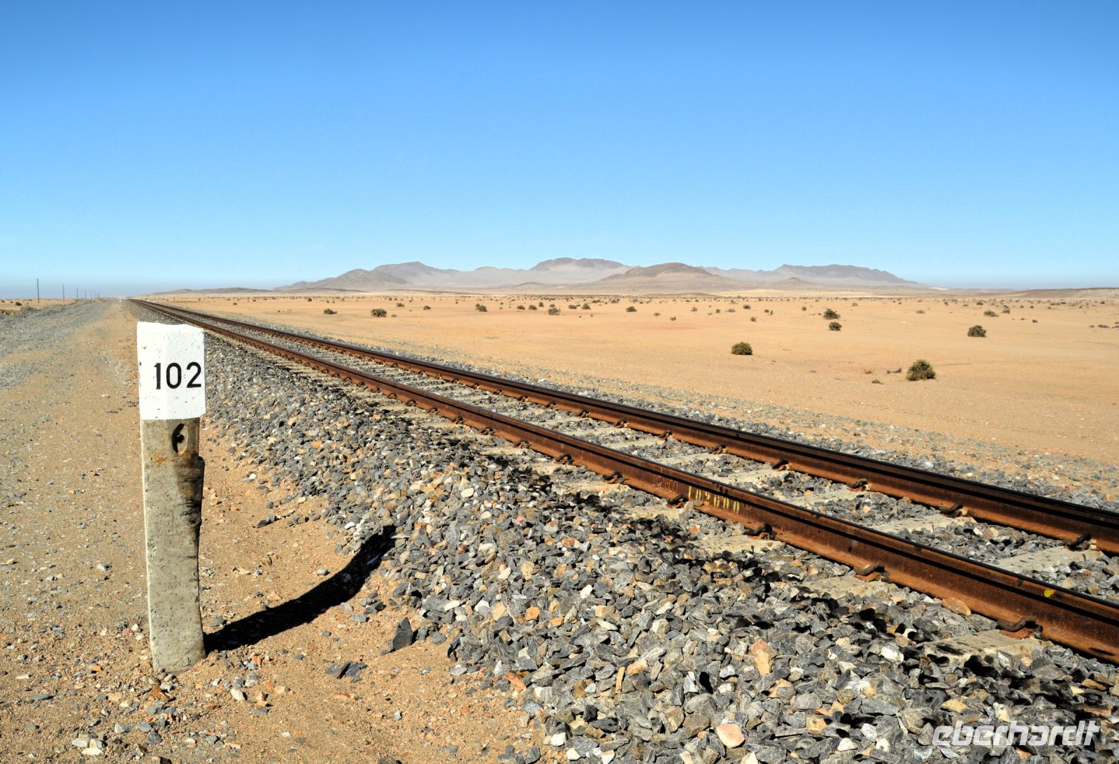 Noch ein kurzer Stopp in einer weiteren Bucht für einen letzten Blick auf Lüderitz dann geht es in Richtung Hotel. Auf der Rückfahrt machen wir einen letzten Fotostopp an den versandeten Bahngleisen. Ein schöner Tag mit vielen Eindrücken geht seinem Ende zu und wird mit dem Abendessen gekrönt.