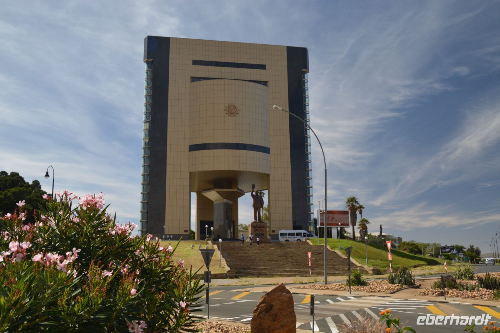 In ihm sind Hosea Kutako, Hendrik Samuel Witboy und Theophilus Hamuntubangela, ein Priester der Ovambo neben Affenbrot- und Jacarandabäumen als Skulpturen dargestellt.