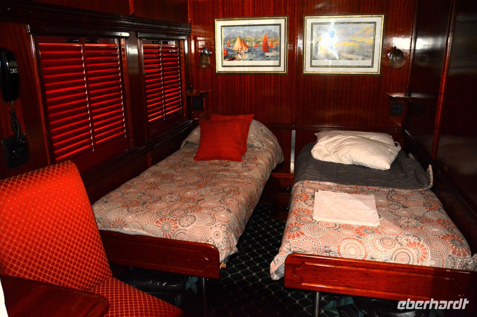 Wir werfen einen Blick in den Speisesaal und in eine bessere Suite des Zuges. Nicht schlecht was wir zu sehen bekommen.