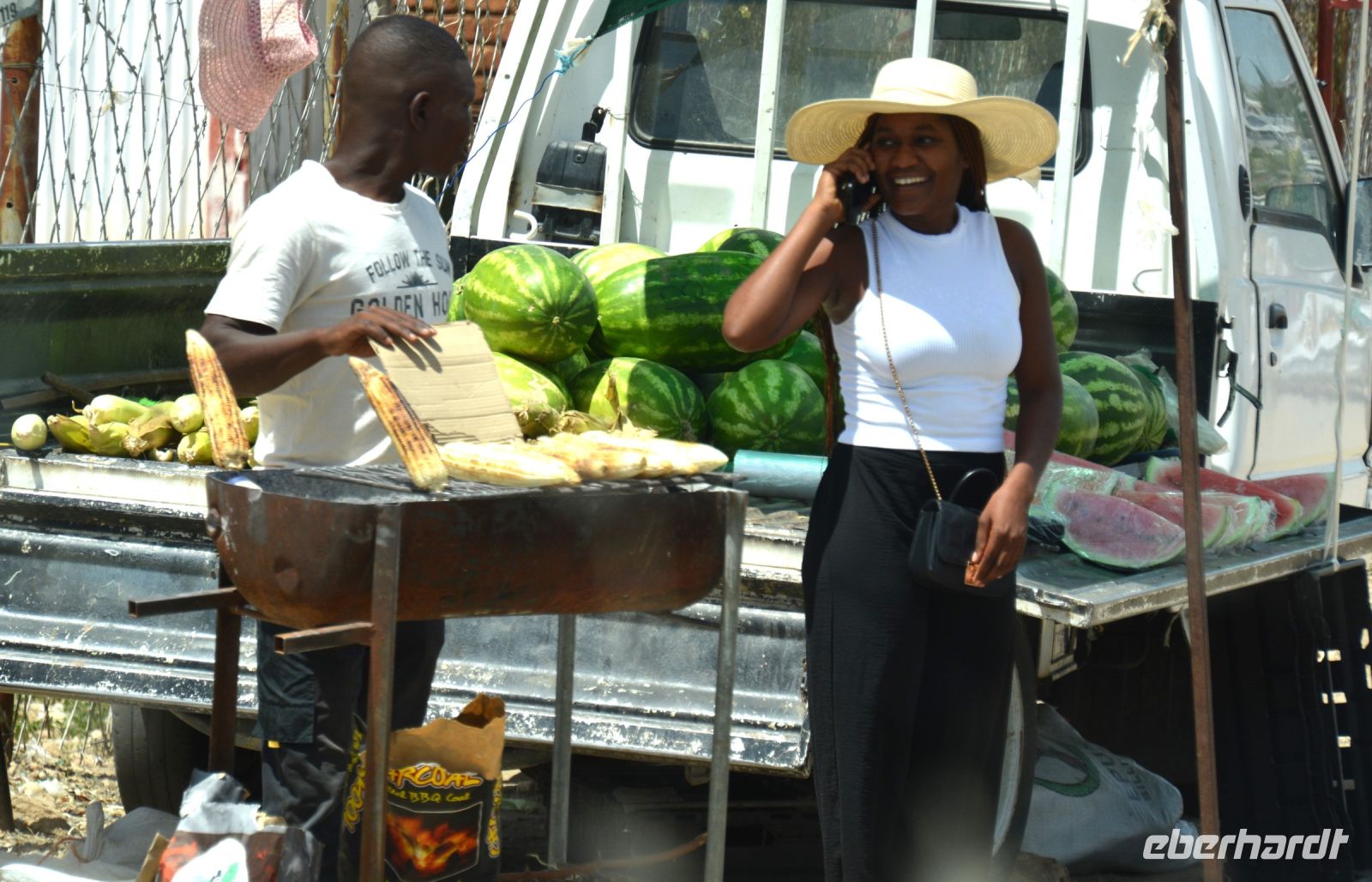 Auch Obst und Gemüse gibt es zu kaufen was zu 90 Prozent importiert wird, da Namibia für den Anbau nicht gerade das günstigste Klima hat. Nur Bier gibt es sonntags nicht.
