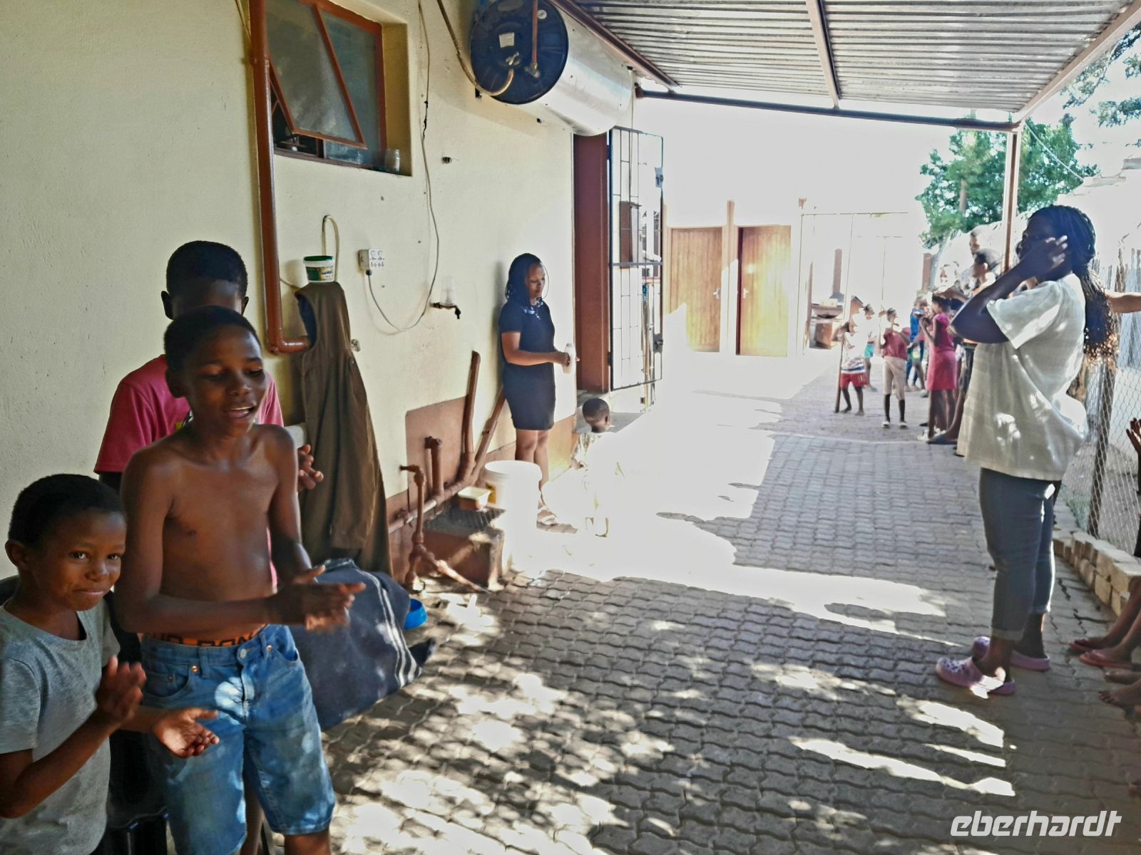 Bald kommen wir auf der einzigen Autobahn von Namibia schnell voran. Wir fahren vom Norden in Richtung Windhoek und machen einen Besuch bei einer besonderen Frau. Ana Magdalena Fredericks betreut in ihrem privaten Haus Kinder von Eltern die sich, aus welchen Gründen auch immer, nicht um sie kümmern können (Alkohol, Aids, oder anderes) oder aber Kinder die keine Eltern mehr haben. Sie bekommen eine Vorbereitung auf die Schule und haben einen geschützten Ort wo sie auch übernachten können. Es ist Anas private Initiative und sie lebt von Spenden, u.A. von Senses of Afrika. Wir können einige Räume besichtigen und ziehen den Hut vor ihr.