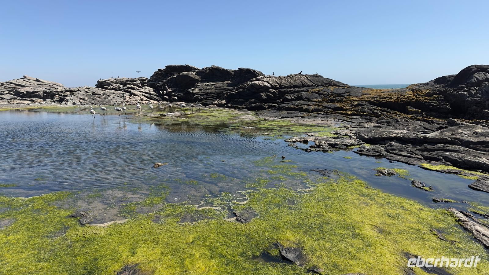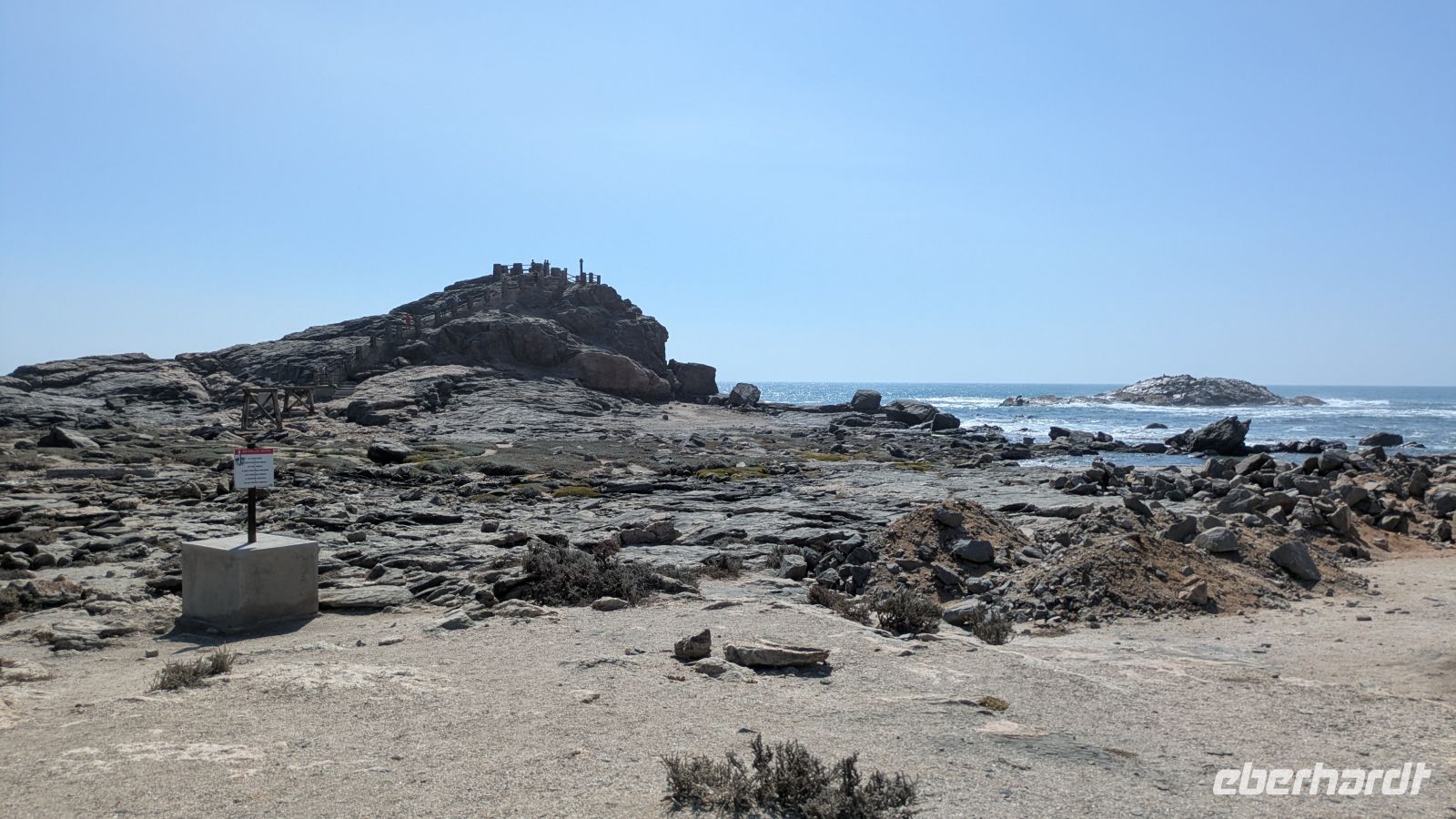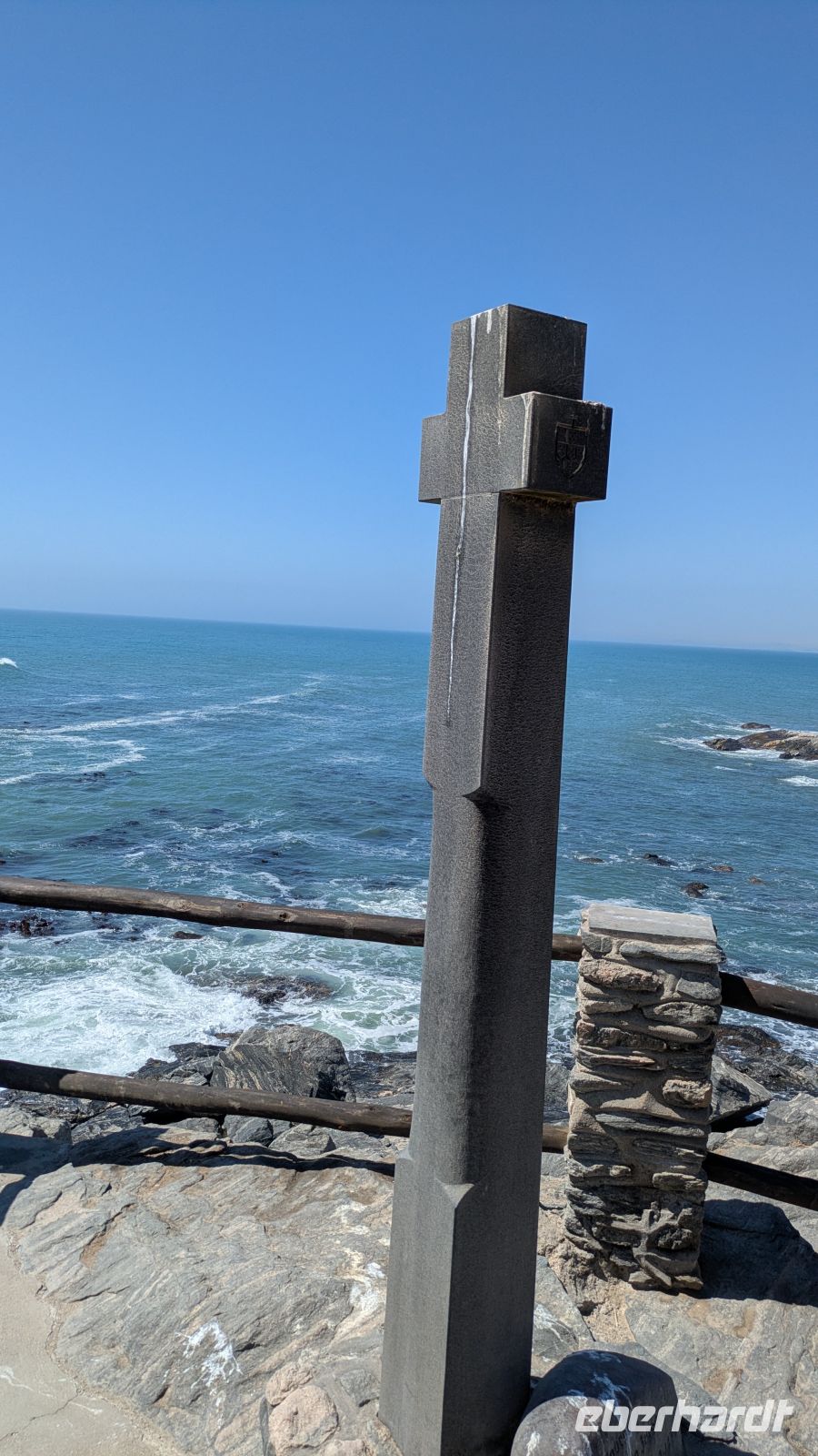 Der portugiesische Seefahrer Bartolomeu Dias errichtete hier 1488 eines seiner steinernen Kreuze, um seine Ankunft und die Besitznahme für Portugal festzuhalten. Oben am Kreuz genießen wir eine beeindruckende Aussicht über die Bucht und den Leuchtturm – und entdecken auf einer vorgelagerten Insel sogar eine Robbenkolonie.