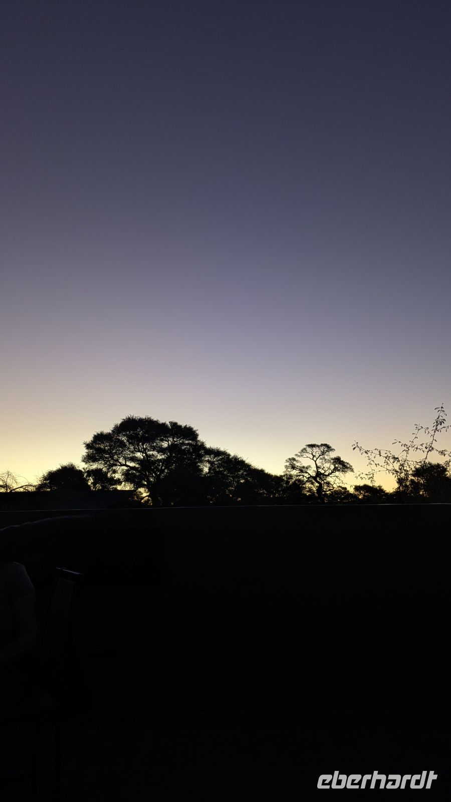 Am späten Nachmittag geht ein großer Teil unserer Gruppe auf einen Sundowner Walk. Ein örtlicher Guide zeigt uns die Umgebung und erklärt die verschiedenen Tierspuren. Der Anstieg ist ein bisschen herausfordernd, wir müssen teilweise klettern – aber oben angekommen lohnt sich jede Anstrengung. Es fühlt sich an, als stünden wir mitten in „Der König der Löwen“, mit freier Sicht über die weite Landschaft. Der Sonnenuntergang krönt die fantastische Aussicht.