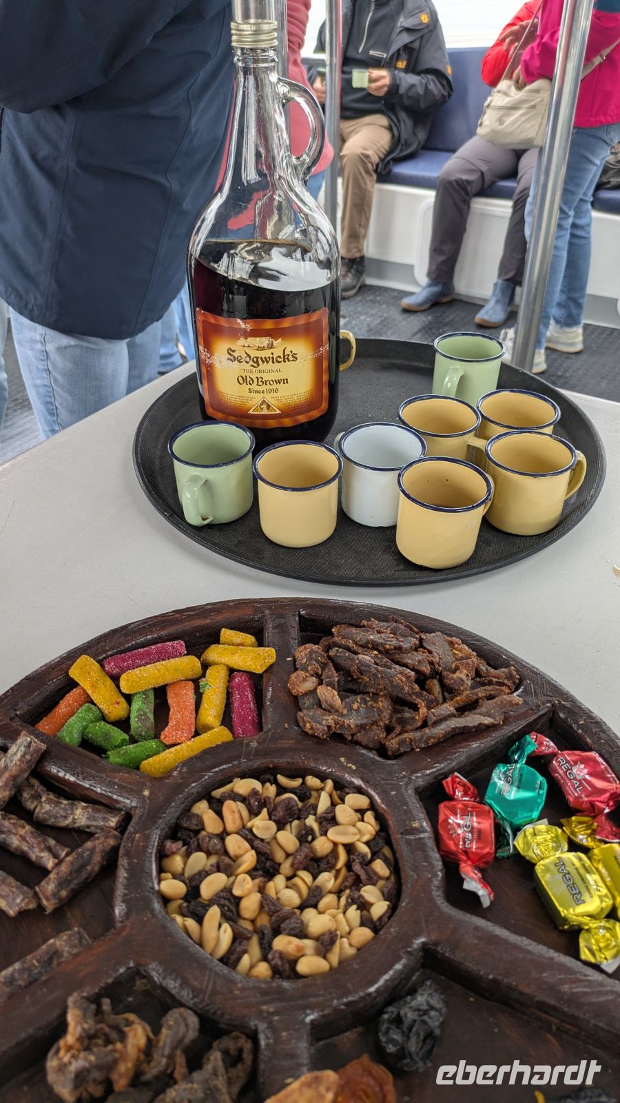 Unser Reiseleiter Angelo hat uns in den letzten Tagen schon sein Lieblings-Erfrischungsgetränk nähergebracht: den Rock Shandy. Seitdem trinken wir ihn fast täglich. In Namibia ist er sehr beliebt und besteht aus Zitronenlimonade, Mineralwasser, Angostura Bitters, Zitronenscheiben und Eiswürfeln – perfekt als Sundowner oder einfach als Durstlöscher. Wir haben ihn liebevoll „Angelo-Shandy“ getauft.