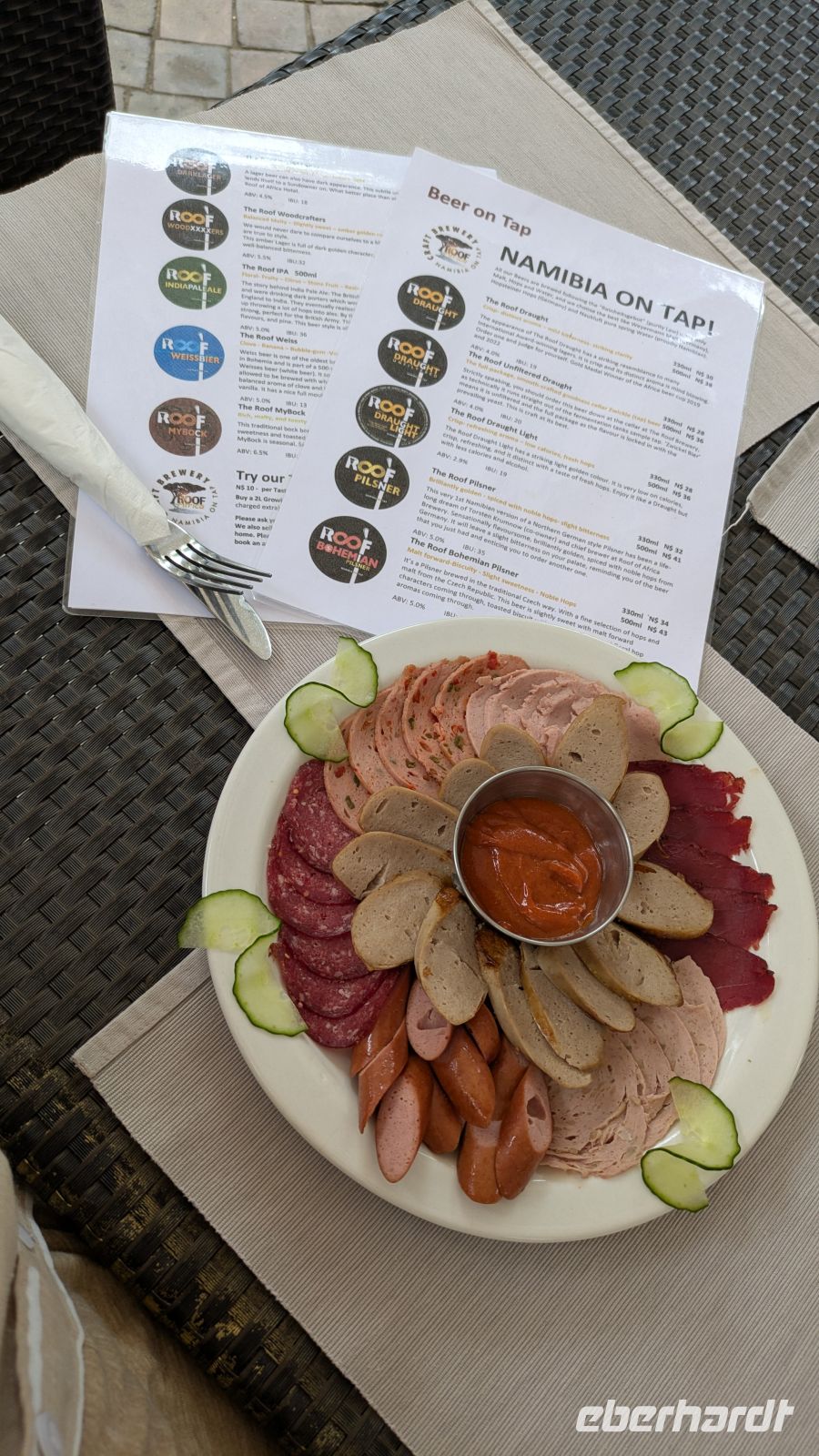 Da unser Flug erst am Abend geht, bleibt noch genug Zeit für ein Biertasting im Roof of Africa. Dort wird das Bier selbst gebraut und es gibt verschiedene Craftbiere zur Auswahl. Als Ausgleich dazu erhalten wir eine Wurstplatte, ebenfalls aus eigener Herstellung. Im Biergarten schnappen wir die letzten Sonnenstrahlen auf und lassen die Reise langsam ausklingen.