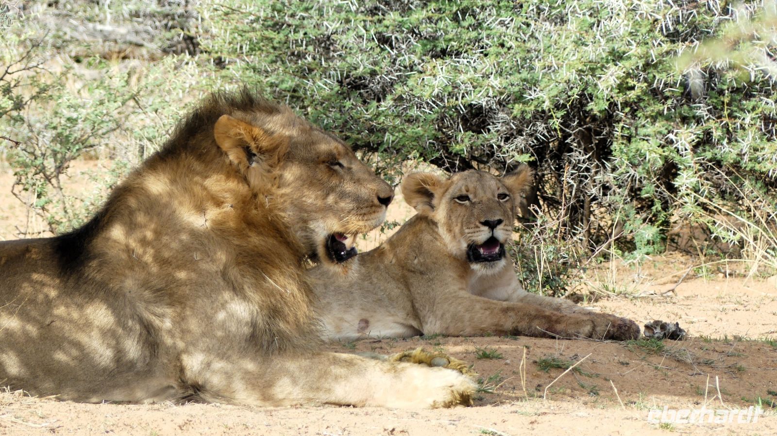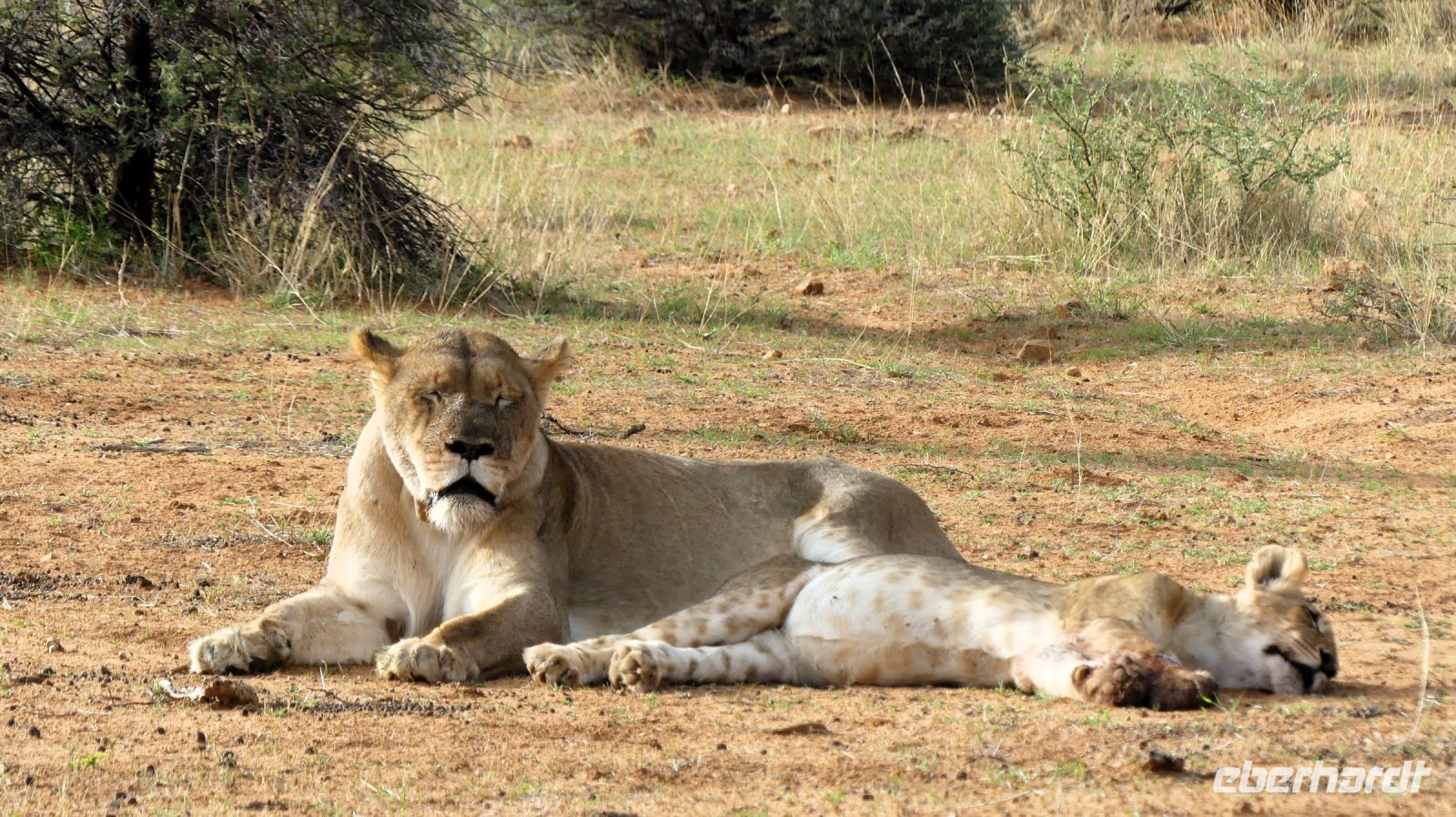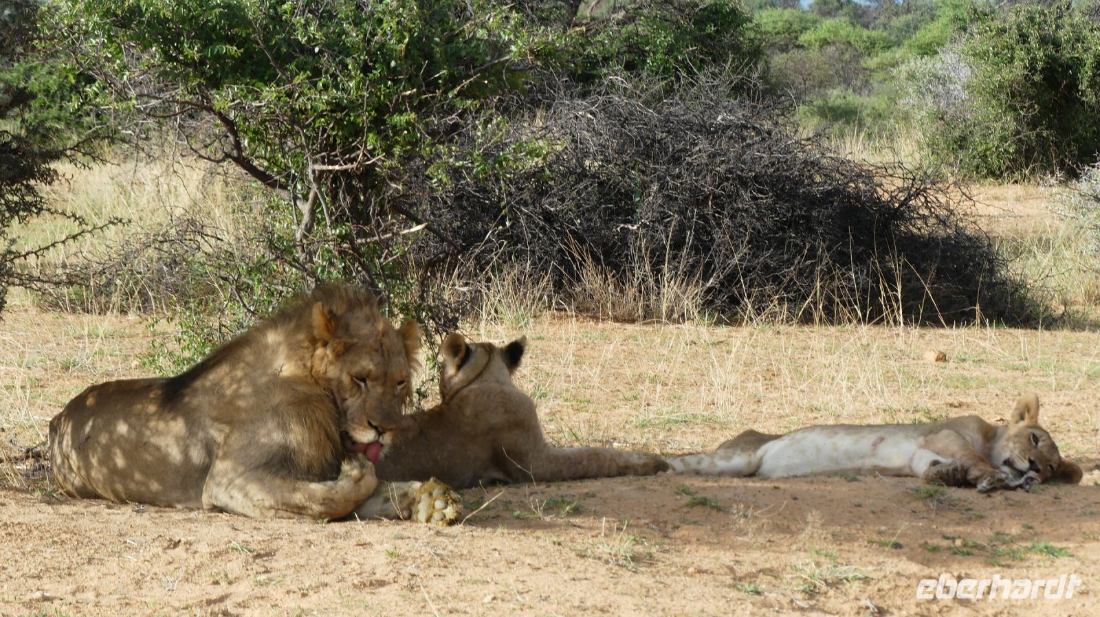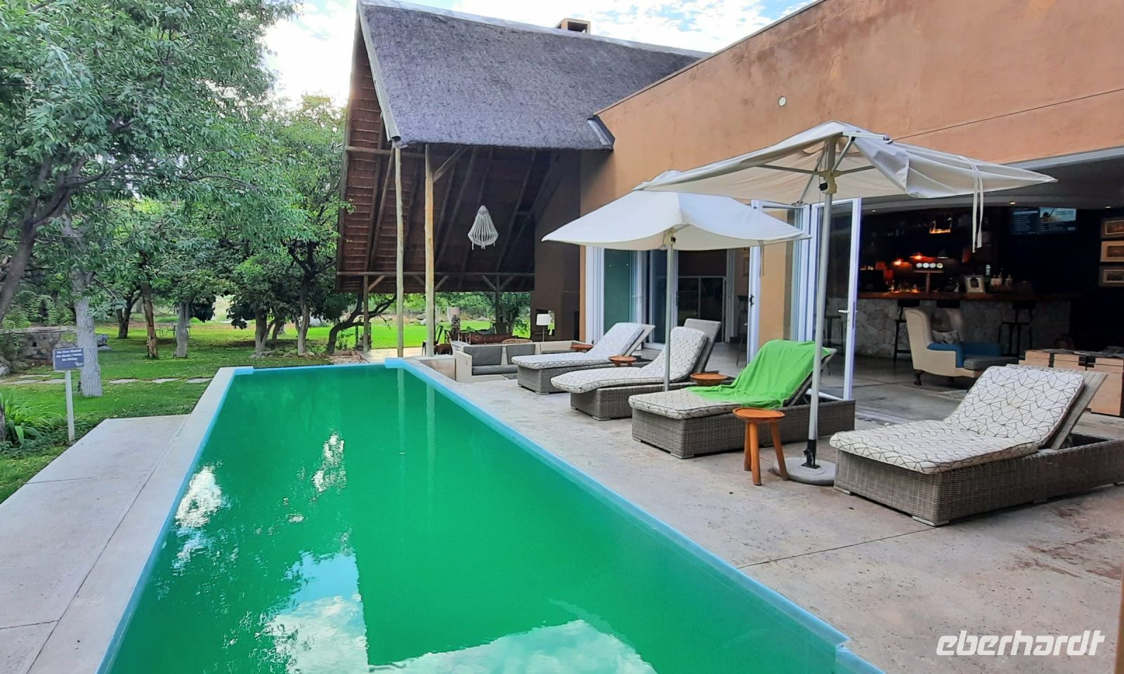 Willkommen in Namibia! Am Morgen landeten wir im sonnigen, grünen Namibia und mussten die Uhren erstmal 1 h vorstellen. Die Passkontrolle der namibischen Beamten dauerte gefühlt eine Ewigkeit. Nach über 1 h waren wir und unsere Koffer vollzählig vereint. Schon ungeduldig wartete Harold, unser örtlicher DriverGuide am Ausgang des Flughafens Windhoek auf uns. Schnell noch an die Geldgeb-Maschine oder zur Bank, damit wir auch mit Namibischen Dollars flüssig waren. Die namibische Hauptstadt ließen wir links liegen und fuhren, vorbei an den Auas- und Khomas-Bergen in südliche Richtung. In der "Basterstadt" Rehoboth legten wir eine Toi- und Tankpause einlegten und gewöhnten uns langsam an die heiße Sonne. Als Baster wurden damals die unehelichen Kinder zwischen den Holländern und den Khoisan bezeichnet. Sie sind etwas hellhäutiger und haben meist blaue Augen. Unser erstes Ziel war die Kalahari. Kurz vor Mariental bogen wir von der asphaltierten B1 auf Sand-Pad ab. In der Ferne konnten wir bereits die Ausläufer der Kalahari erkennen. Die Zentral-Kalahari erstreckt sich von der nördlichen Kap-Provinz in Südafrika durch Namibia und Botswana. Die wellenförmigen, rot leuchtenden, flachen Sanddünen sind meist mit speziellen Dünen- und Wüstengräsern bewachsen. Dazwischen grüne Akazien und dazu der blaue Himmel mit weißen Wölkchen. Was für ein Farbenspiel! Kurze Zeit später erreichten wir unsere erste Unterkunft. Mit kühlem Home made Icetea empfingen uns die freundlichen Mitarbeiter der Kalahari Anib Lodge. Die Lodge befindet sich in einer grünen Oase, mitten im riesigen, privaten Gondwana Naturschutzgebiet. Wir bezogen unsere geräumigen Zimmer, die sich um den Pool reihten. Also kurze Wege für eine Erfrischung im kühlem Nass. Nach den Anreistagen mit Flug war diese Verschnaufpause sehr willkommen: Dusche, Käffchen, Bier, Beine hoch sowie WLAN einrichten, um die ersten Neidbilder nach Deutschland zu senden. Am späteren Nachmittag waren wir Safari fertig. In 2 Jeeps pirschten wir durch die