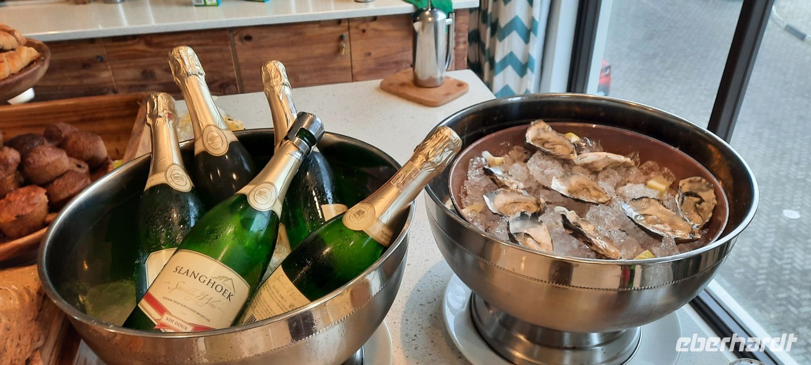 Guten Morgen! Die Prasserei ging am vielfältigen Frühstücksbuffet weiter, auch mit der Auswahl waren wir mehr als gefordert. Ok, dann erst mal ein Sektchen oder frische Austern? Diesmal langärmlig, mit Jacken fuhren wir morgens nach Walvis Bay unternahmen eine