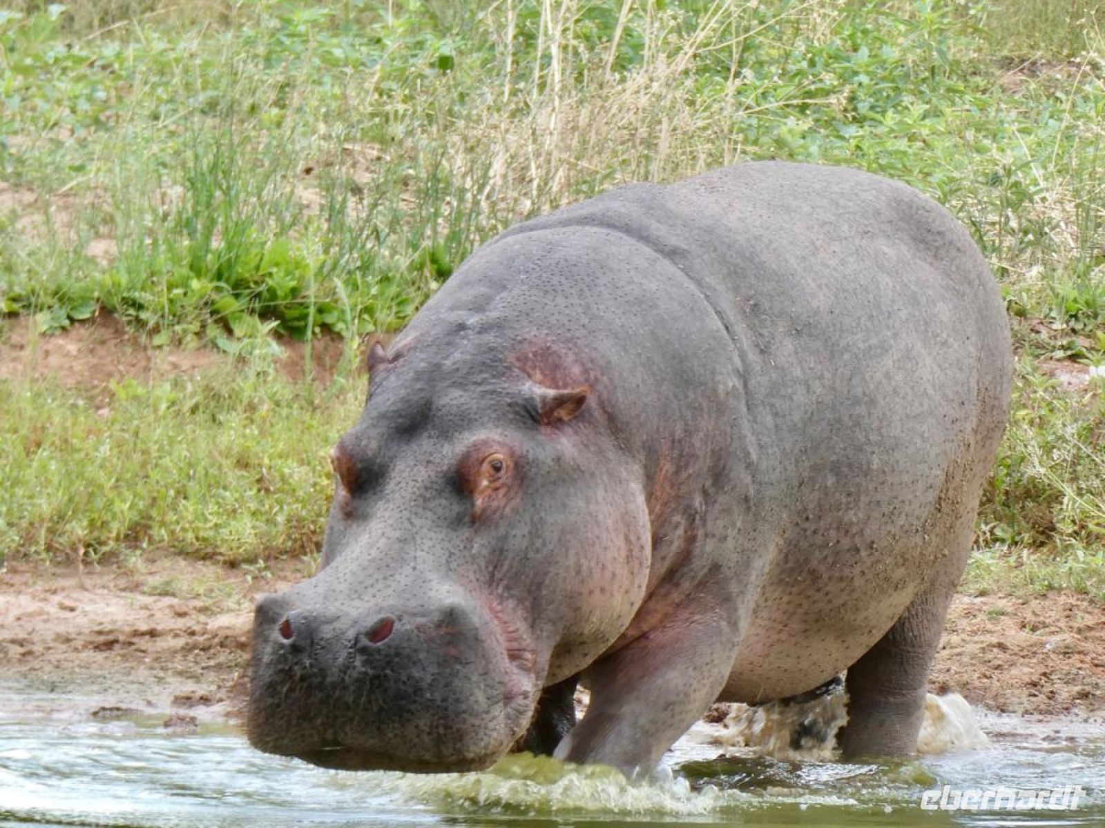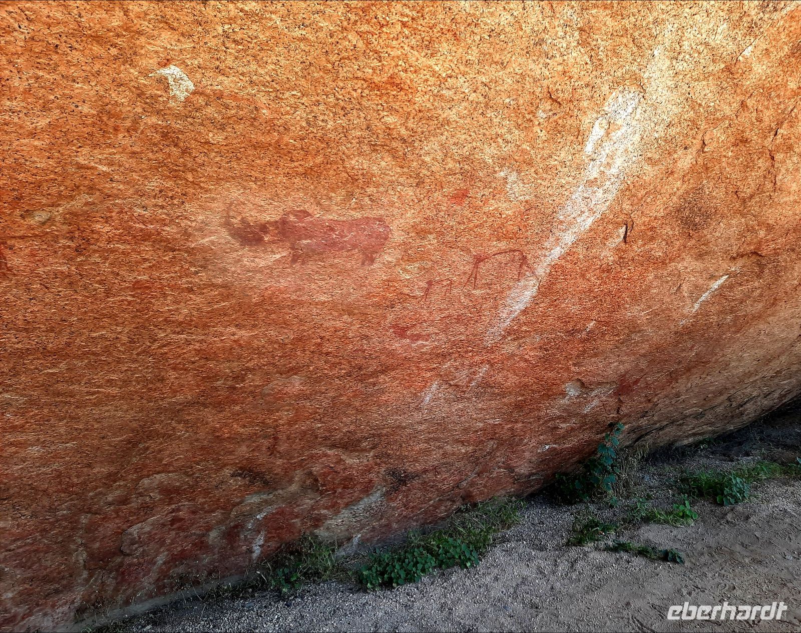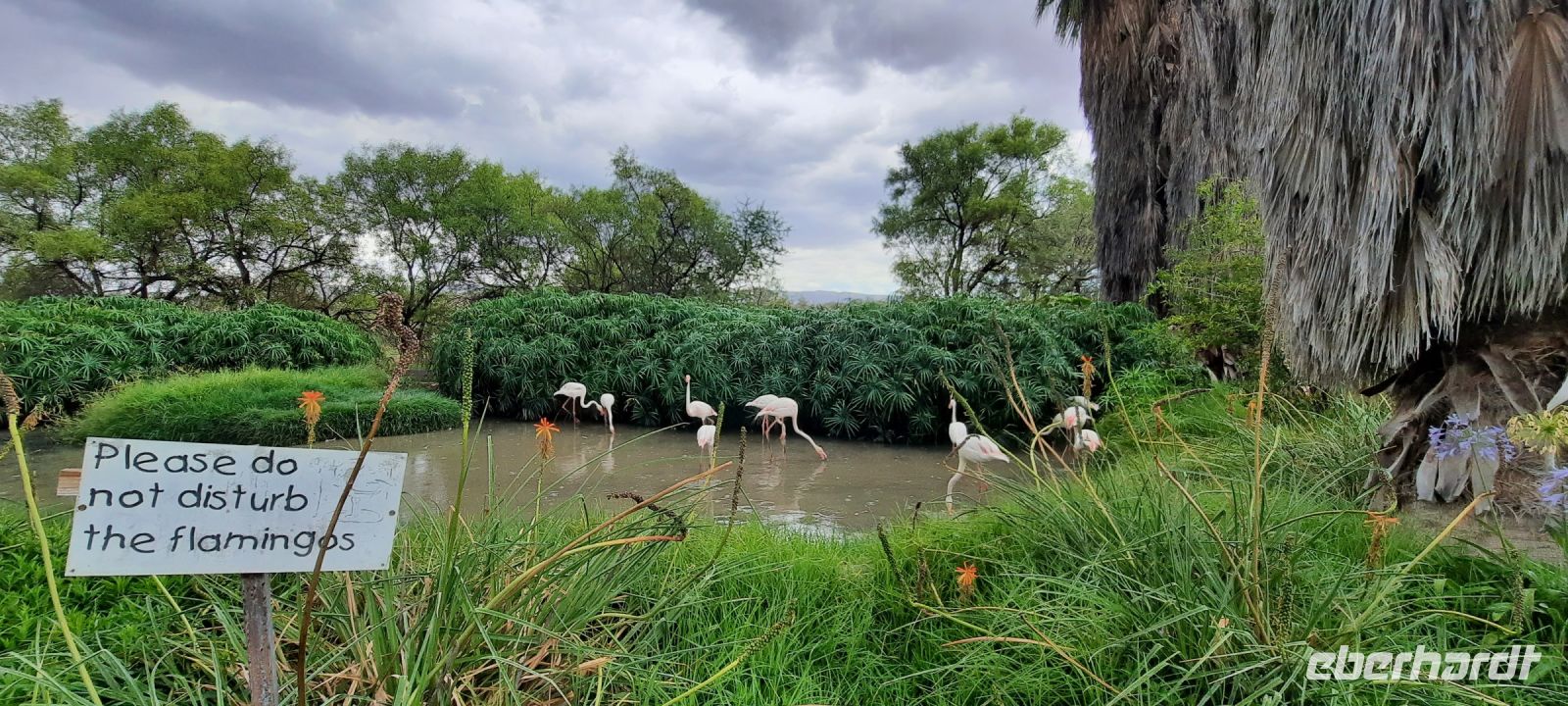 Vor dem alten Bahnhof befindet sich ein Kleinod für Eisenbahnliebhaber, eine in Deutschland gebaute Schmalspurlokomotive, die bis 1960 die Strecke Swakopmund - Tsumeb befuhr. Unser Ziel war das Okonjati Wildreservat am Mount Etjo. Das heute fast 40.000 Hektar große Schutzgebiet ist eines der ersten privaten Wildreservate in Namibia. Vom Tierschützer Jan Oelofse gegründet, der als Tiertrainer für den Film Hatari berühmt wurde. Sein Vermächtnis wird heute von seiner Frau und seinem Sohn weitergeführt. Ein traumhaftes Stück Erde. Und inmitten dieser einmaligen Landschaft ein Paradies - die Mount Etjo Safari Lodge. "Schnatternde" Flamingos, Pelikane, Impalas, Paviane und ein Flusspferd begrüßten uns. Allerdings begann es wieder zu regnen, nicht ungewöhnlich für diese Jahreszeit. In der Lounge verbrachten wir unser Kaffeekränzchen mit leckerem, selbst gebackenem Kuchen. Wir waren froh, dass es später mit regnen aufhörte. Wir hatten ja noch was vor: unsere letzte Pirschfahrt dieser Reise!. Dazu bestiegen wir das Eisenschwein mit Ranger Orlando.. Das riesige Wildreservat liegt in einer abwechslungsreichen Gegend, eingebettet zwischen Bergen und Dämmen. Auch hier ist es extrem trocken und aufgrund dieser Dürre werden die Tiere jetzt zugefüttert, um zu überleben. Gleich zu Beginn sehen wir Paviane, Marabu, Springböcke, Impalas, Warzenschweine, und Wasserböcke, auch Giraffen. Die abwechslungsreiche Landschaft begeisterte uns. Abenteuerlich auch die Fahrt durch strömende Bäche, es hatte ja genug geregnet. Etwas später sahen wir plötzlich Elefanten, endlich! Wahrscheinlich auf ihrem Weg zum Wasser bedienten sich rechts und links vom Weg am grünen Baum-Buffet. Wir hielten an und waren mitten in einer ganzen Herde mit Babyfanten, wenige Tage alt. Die Leitkuh und ein Teenie-Bulle fühlten sich anfangs etwas belästigt und machten ihren Unmut mit lautem Törrö Luft. Doch dann schlenderten die grauen Riesen, die Babys wohlbehütet in deren Mitte vor und hinter unserem Fahrzeug vorbei. Wir waren geflasht. Zweit Gäste von der hinteren Reihe waren kurzzeitig in Deckung gegangen, als sie den Atem eines Elefanten in ihrem Nacken spürten. Nach diesem Erlebnis fuhren wir weiter, die Giraffen waren schon zur Nebensache geworden. Später überquerte ein stattliches Breitmaulnashorn direkt vor uns den Weg! noch mal, WOW. Doch die Krönung zum Schluss: Löwen in nächster Nähe. Ein ganzes Rudel mit kleinen rings um unser Fahrzeug. Sie waren sehr entspannt, da sie in den frühen Morgenstunden eine kleine Giraffe gerissen hatten und somit satt waren. Wir waren glücklich. So kann es gehen, alles hat seinen Sinn und wird ausgeglichen. Schnell fand Orlando ein sicheres Plätzchen und baute die mobile Bar auf. Wir genossen einfach nur, die langsam untergehende Sonne. Doch dann mussten wir zurück, bevor es dunkel wurde. Unterwegs noch ein besonderer Moment: Bergzebras und ein Löffelhund! Und natürlich zeigten sich die zwei Haus-Hippos noch einmal! Zum Abendessen wurden wir In der Boma, auch Lapa genannt, mit einem Sektchen begrüßt. Es gab traditionell afrikanische Küche, also auch gegrilltes Game, dazu verschiedene Beilagen wie Maisbrei und leckere Soßen. Ein Dankeschön an die Küche!