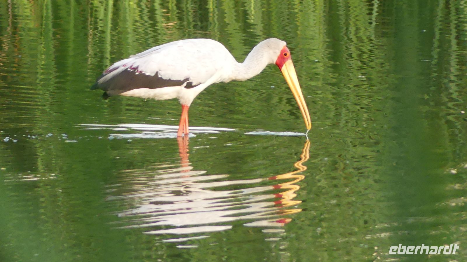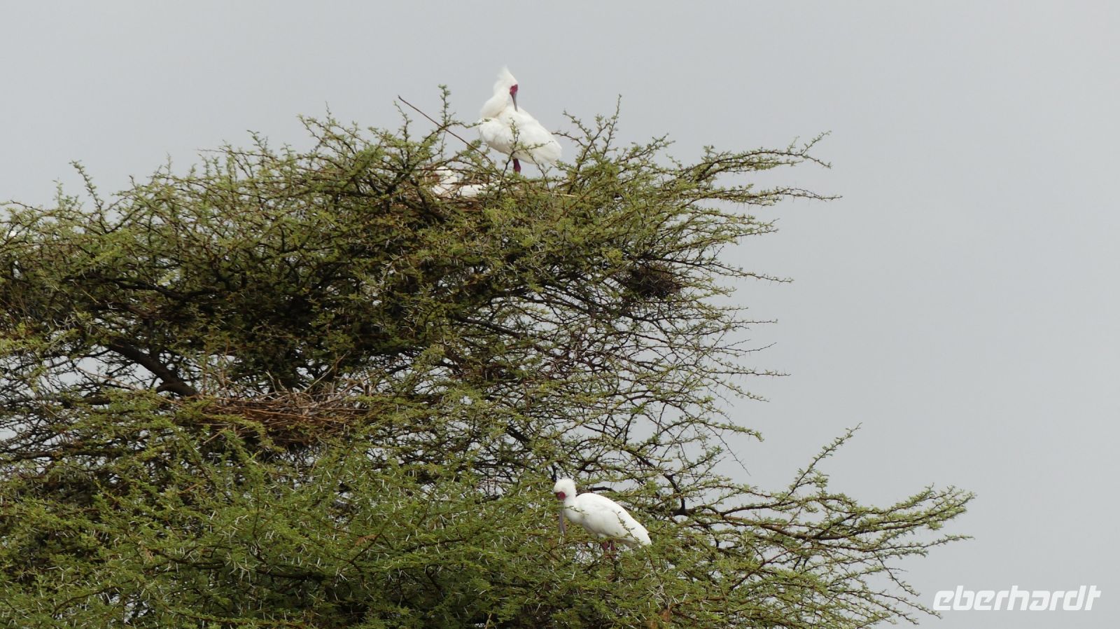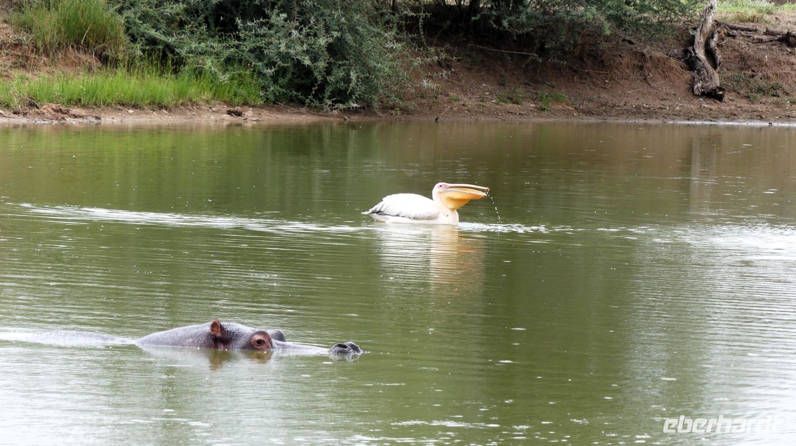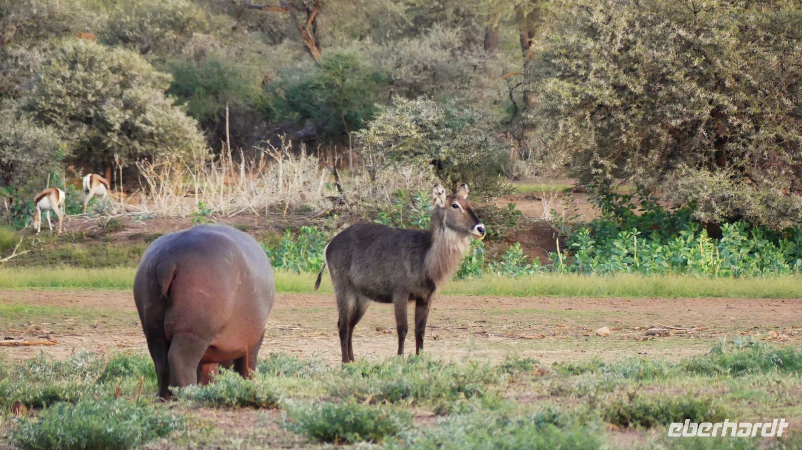 Südwestafrika) den damals fast 100.000 km² großen Park als Schutzgebiet. Wilderei und Großwildjagd hatten den Tierbestand damals auf dramatische Weise reduziert. Später und während der Apartheid wurde der Park auf seine heutige Größe (ca. 22.000 km ²) verkleinert und 1964 zum Nationalpark erklärt. Am ersten, verschlammten Wasserloch Ombika gab es nichts Großes zu sehen. Also weiter bis zum Hauptcamp und danach versuchten wir unser Glück an verschiedenen Wasserlöchern. Vom Regen war es überall grün, die Pad mit Pfützen übersät. Später sahen wir in der Ferne nur noch die Hinterteile von 2 Spitzmaul-Nashorn-Mamas mit ihrem Nachwuchs im Busch verschwinden. Leider hatten wir sie am Wasserloch verfehlt. Man muß eben zur richtigen Zeit am richtigen Ort sein. Giraffen, Zebras, Sprinkböcke, Oryxe, Gnus, Impalas - eben das Übliche. Doch dann richteten sich unsere Augen auf eine Zebra Familie, die angespannt in eine Richtung schaute. Wow, eine 3 Geparden - wahrscheinlich Mama, Papa und Halbwüchsiger. Was für ein Glück! Später konzentrierten wir uns auf die grüne Vegetation im Etosha. Überall spross das Grün aus dem Trockenen, Blümchen blühten..... Das wäre doch ein Paradis für die Tiere. oder? So manches Gefiederte wurde dann entdeckt: Kaptriel, Strauße, Riesen- und Gackeltrappen, ein Weißburzelsinghabicht, Blaue Kraniche (Nationalvogel Südafrikas) und die Tierherden um Springbock, Zebra, Gnu, Kuhantilope, Impala & Co wurden größer. Wir pirschten am Rand der Etosha Pfanne, bis zum Horizont ein weißes Nichts. Die Etosha Pan (Pfanne) ist zentraler Mittelpunkt des Parks. Der große, weiße Platz wie ihn die Ovambos nennen, ist knapp 5.000 km ² groß – eine faszinierende Unendlichkeit. Zwei einzelne Schirmakazien boten ein schönes Fotomotiv, so typisch ist für den Park. Bei den Helio Hügeln, der einzigen richtigen Erhebung, im Camp Halali verbrachten wir unsere Mittagspause bei einem Picknick. Anschließend fuhren wir entspannt zurück und erfreuten uns an den Tieren, die sich in den saftig grünen Ebenen des Etoshas sichtlich wohl fühlten. Am späteren Nachmittag waren wir in unserer Lodge zurück. In der Lodge bedienten wir uns wieder am reichhaltigen Buffet und Eland, Kudu & Co vom Grill.