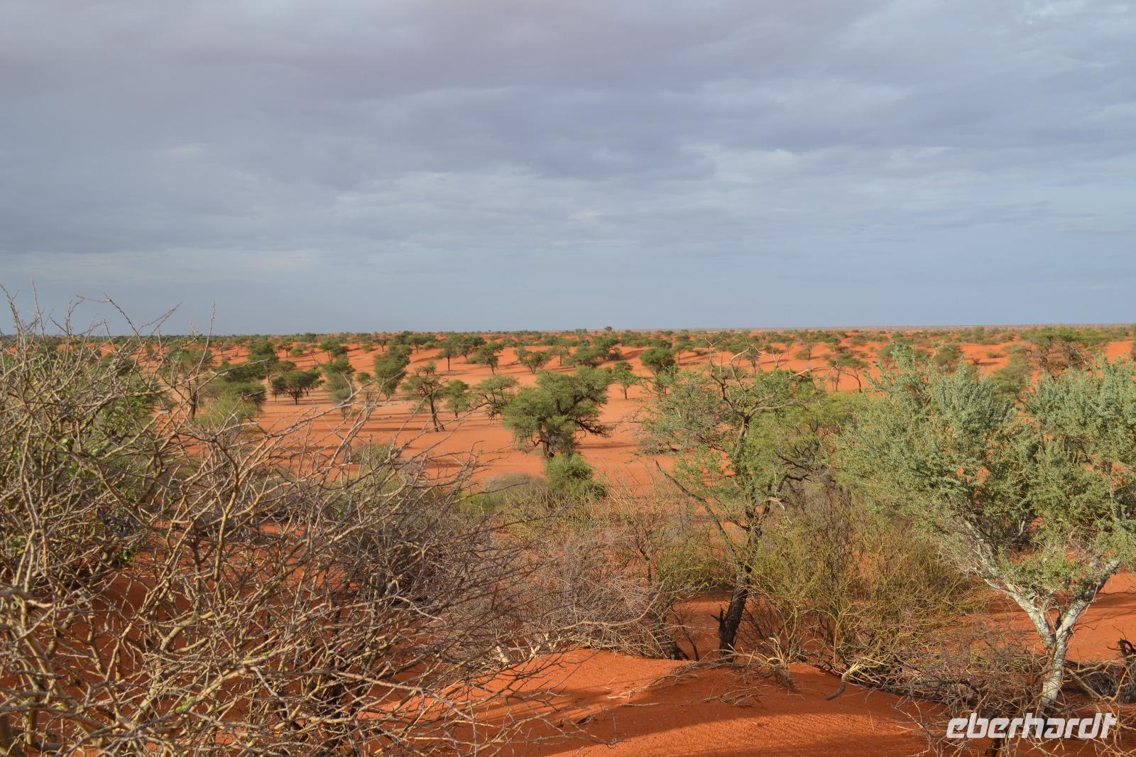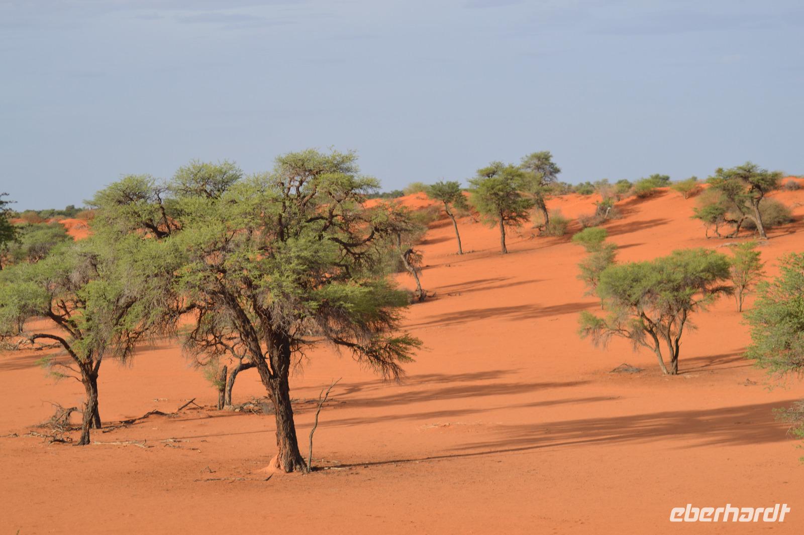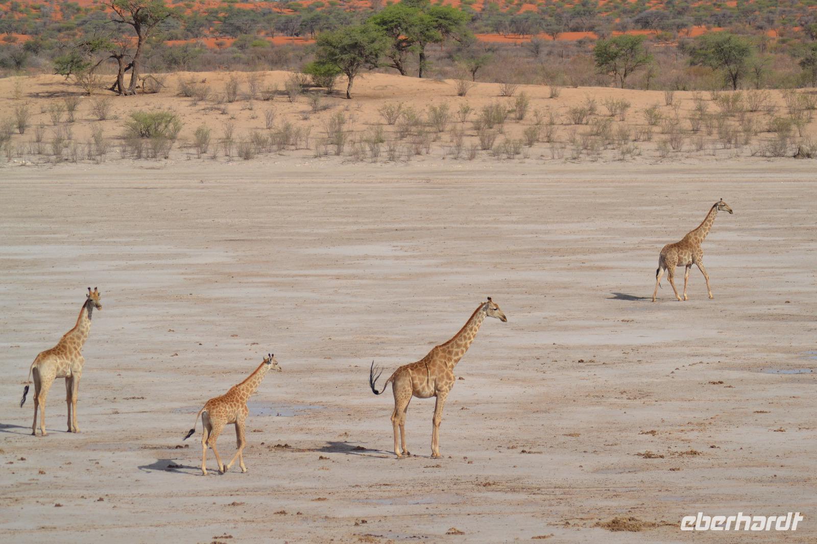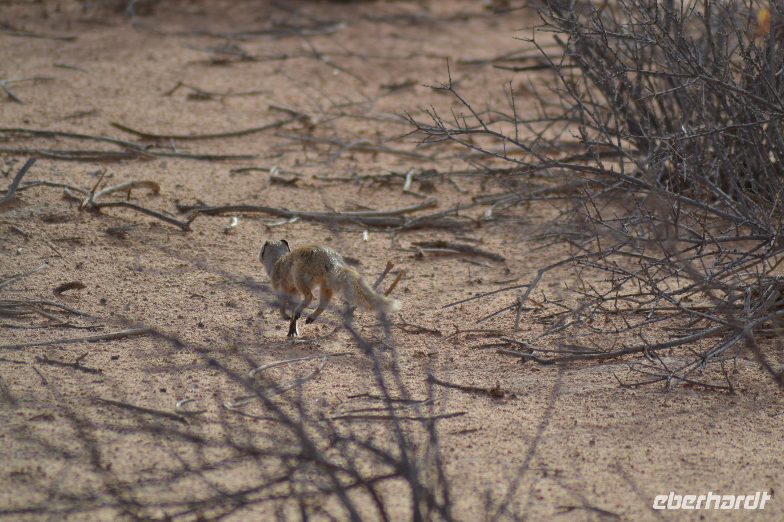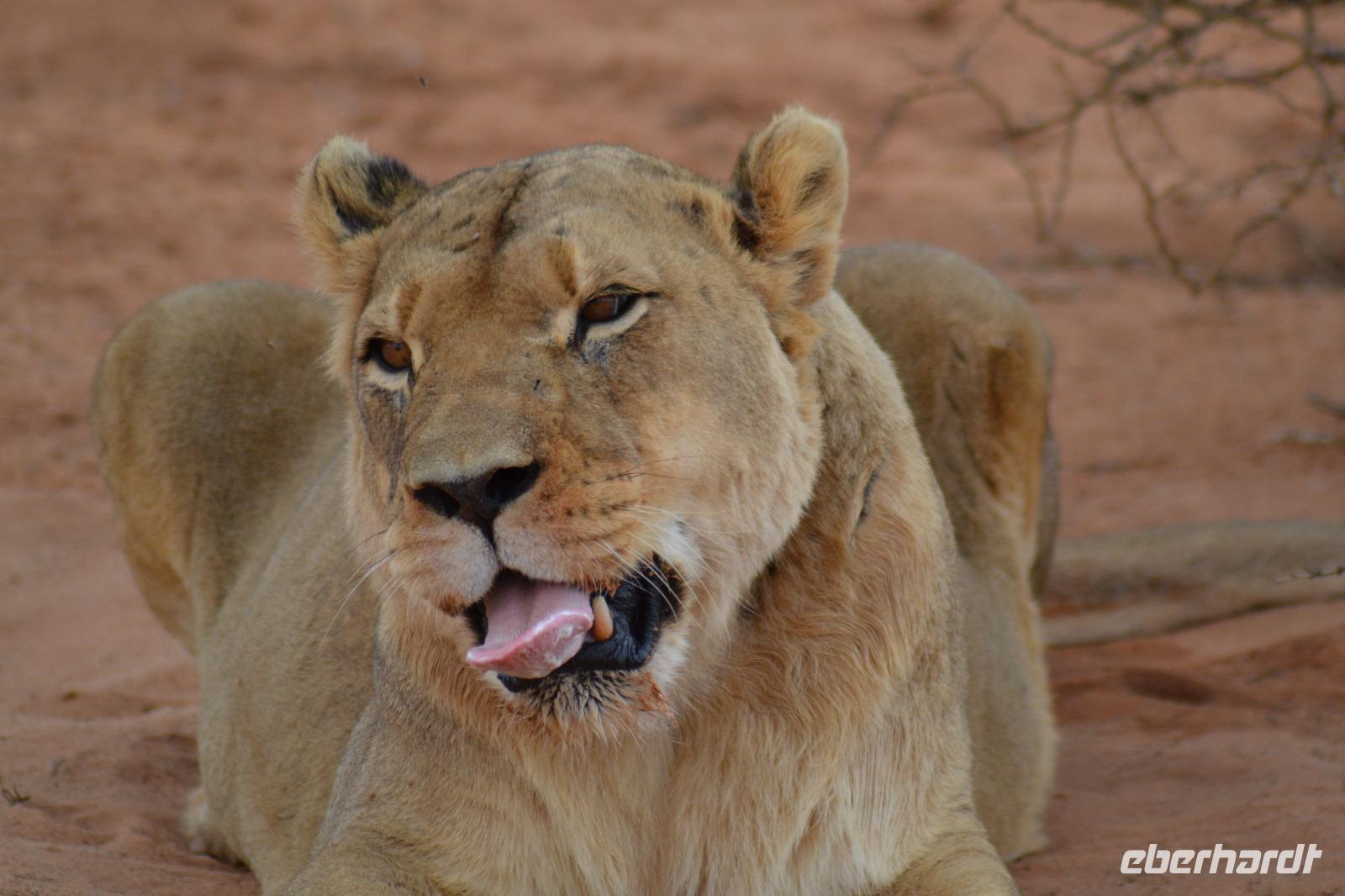 Nach einem ausgiebigen Frühstück mit einem tollen Panoramablick über die Stadt starteten wir unsere erste lange Strecke mit ca. 300 km in die Kalahari Halbwüste. Doch zunächst hatten Laura und Dagmar noch ein paar geheime Erledigungen vor. Nachdem alles im Truck verladen war ging die Fahrt über Heldenacker und somit die Überquerung des südlichen Wendekreises des Steinbocks weiter. An einer Tankstelle in Rehoboth nutzen wir die Gelegenheit unseren Kaffee weg zu bringen. Kurz hinter dem Ort Verliesen wir die asphaltierten Straßen und begaben uns auf die Schotterpisten in die Kalahari. Unterwegs Briefte uns Dagmar mit den wichtigsten Besonderheiten des Landes und worauf man unbedingt achten sollte. Besonders die Malaria Vorsorge mittels eines Gin Tonics blieb uns gut im Gedächtnis. Dies war der erste alkoholische Tipp unserer Reiseleiterin. Daran wollten wir uns auf jeden Fall halten. Mittags erreichten wir bereits unsere tolle Lodge in mitten der Natur! Einer der drei Unterkünfte in diesem privaten Gelände und auch die komfortabelste. Nach einer Pause, die wir für eigene Erkundigungen des Geländes mit ersten Tierbeobachtung, ein Sprung in den kühlen Pool oder ein Getränk an der Bar nutzen. Zum Nachmittag trafen wir uns an der Terrasse auf ein Stück Kuchen und Kaffee. Im Anschluss stand die erste Sundowner Fahrt in offenen Jeeps statt. Wir sahen unwahrscheinlich viele Tiere. Kudus, Springböcke, Zebras, Giraffen, Strauße, Löwe, Löffelhunde, und vieles mehr. Nach einer 2,5 stündigen Fahrt durch die wunderbare Natur genossen wir bei einem kühlen Getränk und kleinen Snacks den Sonnenuntergang auf der Düne. Im Hintergrund der grau bedeckte Himmel und am Ende des Horizontes ein Regenbogen. Es folgte der zweite alkoholische Tipp von Dagmar. Wir sollten alle ein Glas Sekt trinken, damit sollte der Regen kommen. Als wir unsere Lodge wieder erreichten wartet bereits ein romantisch gedeckter Tisch auf der Terrasse auf uns. Wir ließen den Abend bei einem, zwei, oder vielleicht drei Gläsern Wein ausklingen und begaben uns anschließend auf den teilweise abenteuerlichen Weg zurück in unsere Chalets.