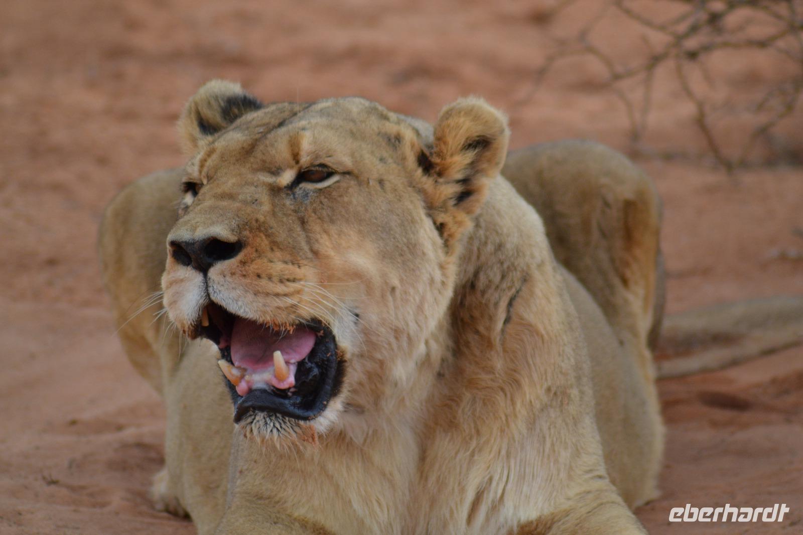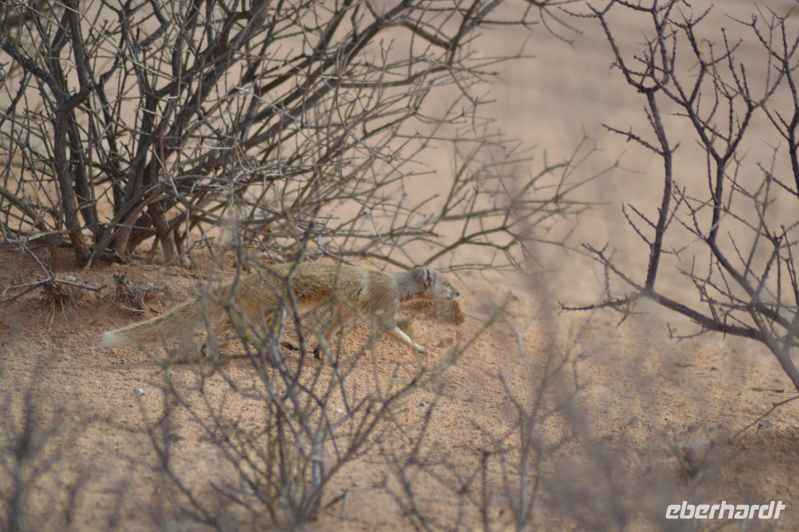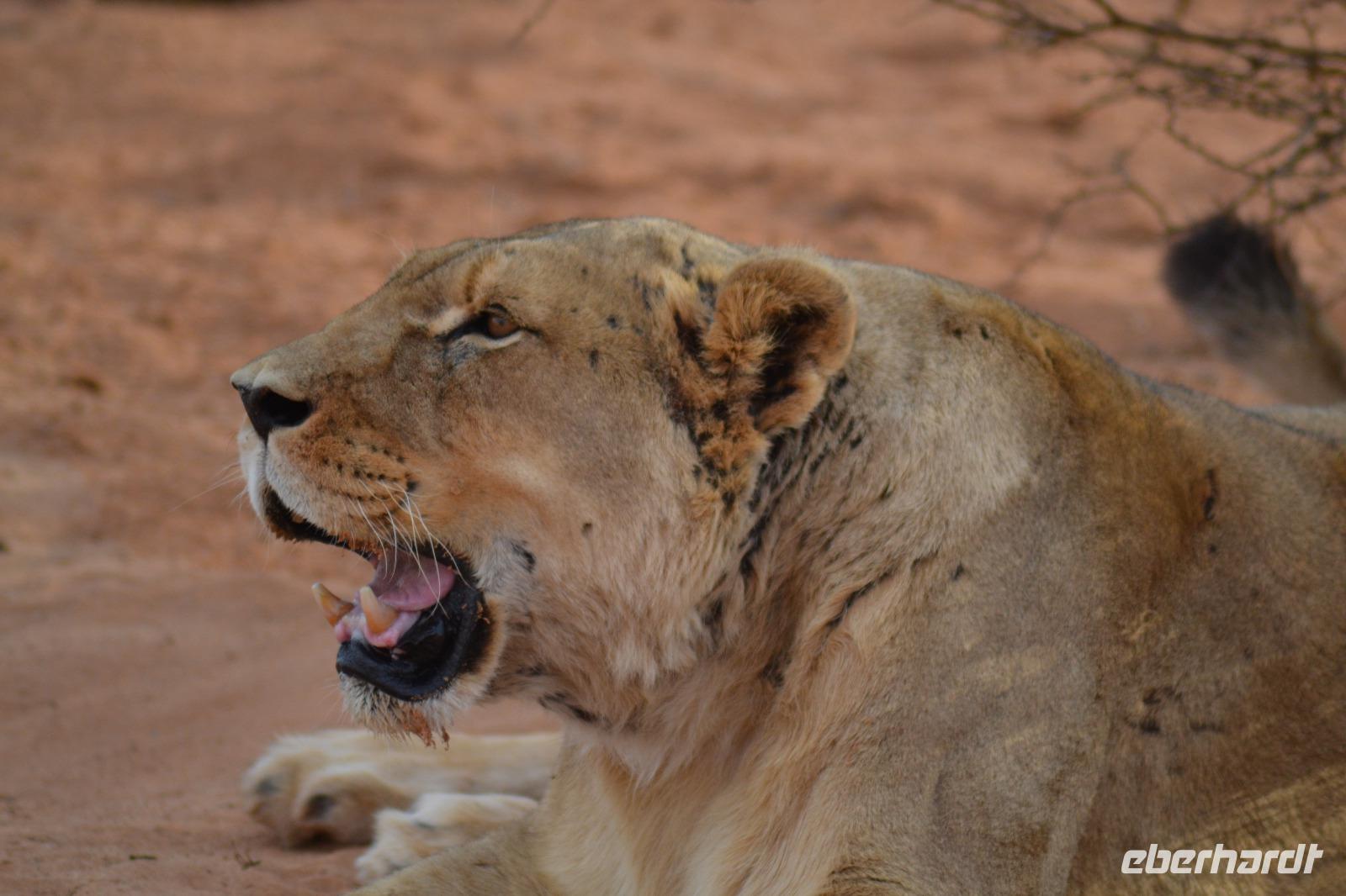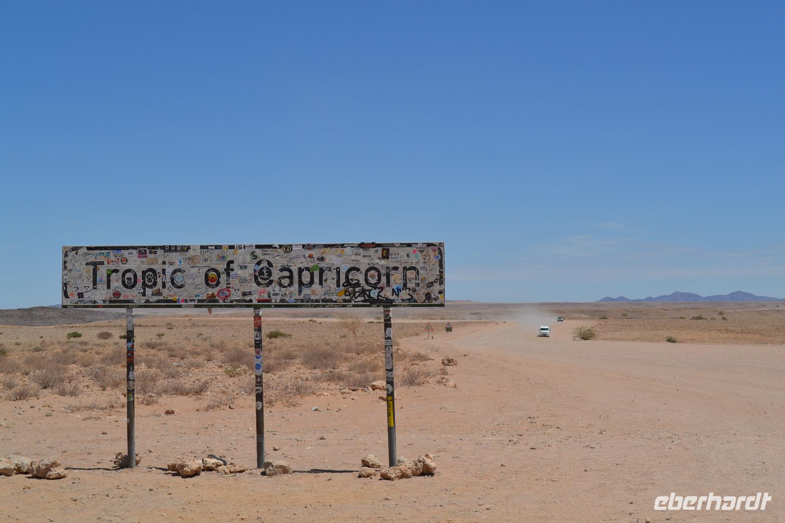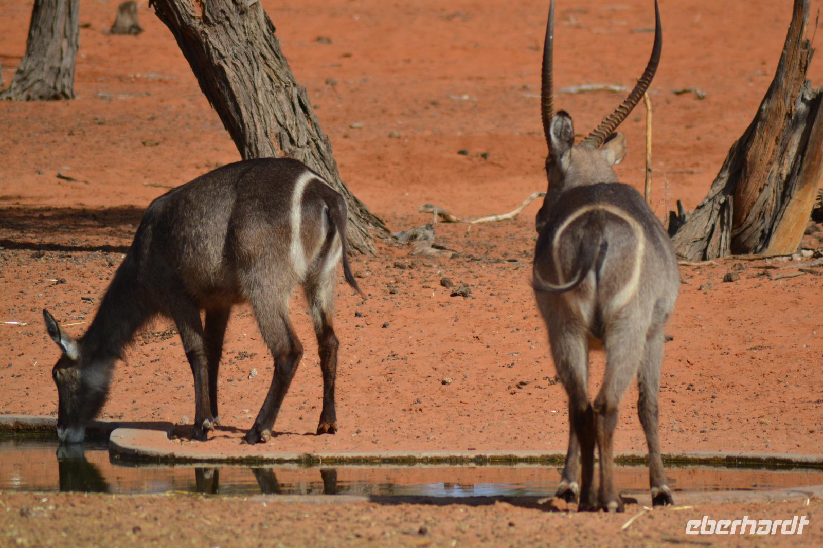 Nach einem ausgiebigen Frühstück mit einem tollen Panoramablick über die Stadt starteten wir unsere erste lange Strecke mit ca. 300 km in die Kalahari Halbwüste. Doch zunächst hatten Laura und Dagmar noch ein paar geheime Erledigungen vor. Nachdem alles im Truck verladen war ging die Fahrt über Heldenacker und somit die Überquerung des südlichen Wendekreises des Steinbocks weiter. An einer Tankstelle in Rehoboth nutzen wir die Gelegenheit unseren Kaffee weg zu bringen. Kurz hinter dem Ort Verliesen wir die asphaltierten Straßen und begaben uns auf die Schotterpisten in die Kalahari. Unterwegs Briefte uns Dagmar mit den wichtigsten Besonderheiten des Landes und worauf man unbedingt achten sollte. Besonders die Malaria Vorsorge mittels eines Gin Tonics blieb uns gut im Gedächtnis. Dies war der erste alkoholische Tipp unserer Reiseleiterin. Daran wollten wir uns auf jeden Fall halten. Mittags erreichten wir bereits unsere tolle Lodge in mitten der Natur! Einer der drei Unterkünfte in diesem privaten Gelände und auch die komfortabelste. Nach einer Pause, die wir für eigene Erkundigungen des Geländes mit ersten Tierbeobachtung, ein Sprung in den kühlen Pool oder ein Getränk an der Bar nutzen. Zum Nachmittag trafen wir uns an der Terrasse auf ein Stück Kuchen und Kaffee. Im Anschluss stand die erste Sundowner Fahrt in offenen Jeeps statt. Wir sahen unwahrscheinlich viele Tiere. Kudus, Springböcke, Zebras, Giraffen, Strauße, Löwe, Löffelhunde, und vieles mehr. Nach einer 2,5 stündigen Fahrt durch die wunderbare Natur genossen wir bei einem kühlen Getränk und kleinen Snacks den Sonnenuntergang auf der Düne. Im Hintergrund der grau bedeckte Himmel und am Ende des Horizontes ein Regenbogen. Es folgte der zweite alkoholische Tipp von Dagmar. Wir sollten alle ein Glas Sekt trinken, damit sollte der Regen kommen. Als wir unsere Lodge wieder erreichten wartet bereits ein romantisch gedeckter Tisch auf der Terrasse auf uns. Wir ließen den Abend bei einem, zwei, oder vielleicht drei Gläsern Wein ausklingen und begaben uns anschließend auf den teilweise abenteuerlichen Weg zurück in unsere Chalets.
