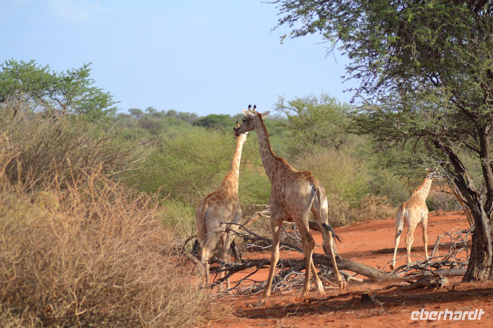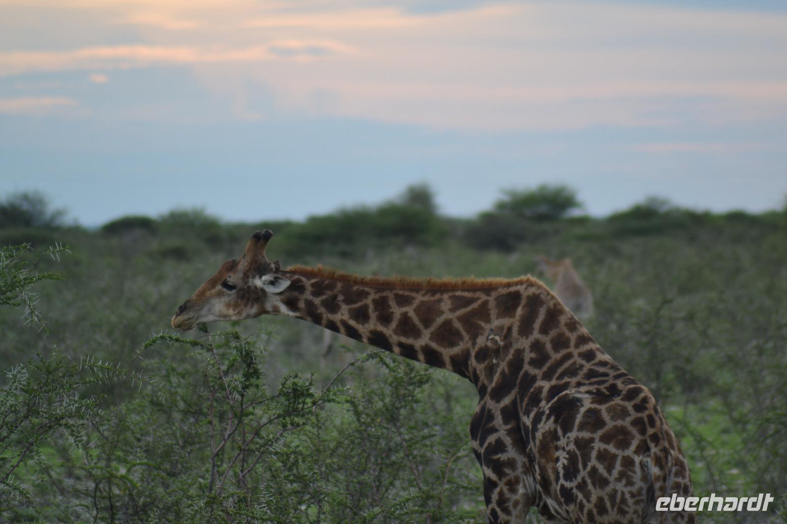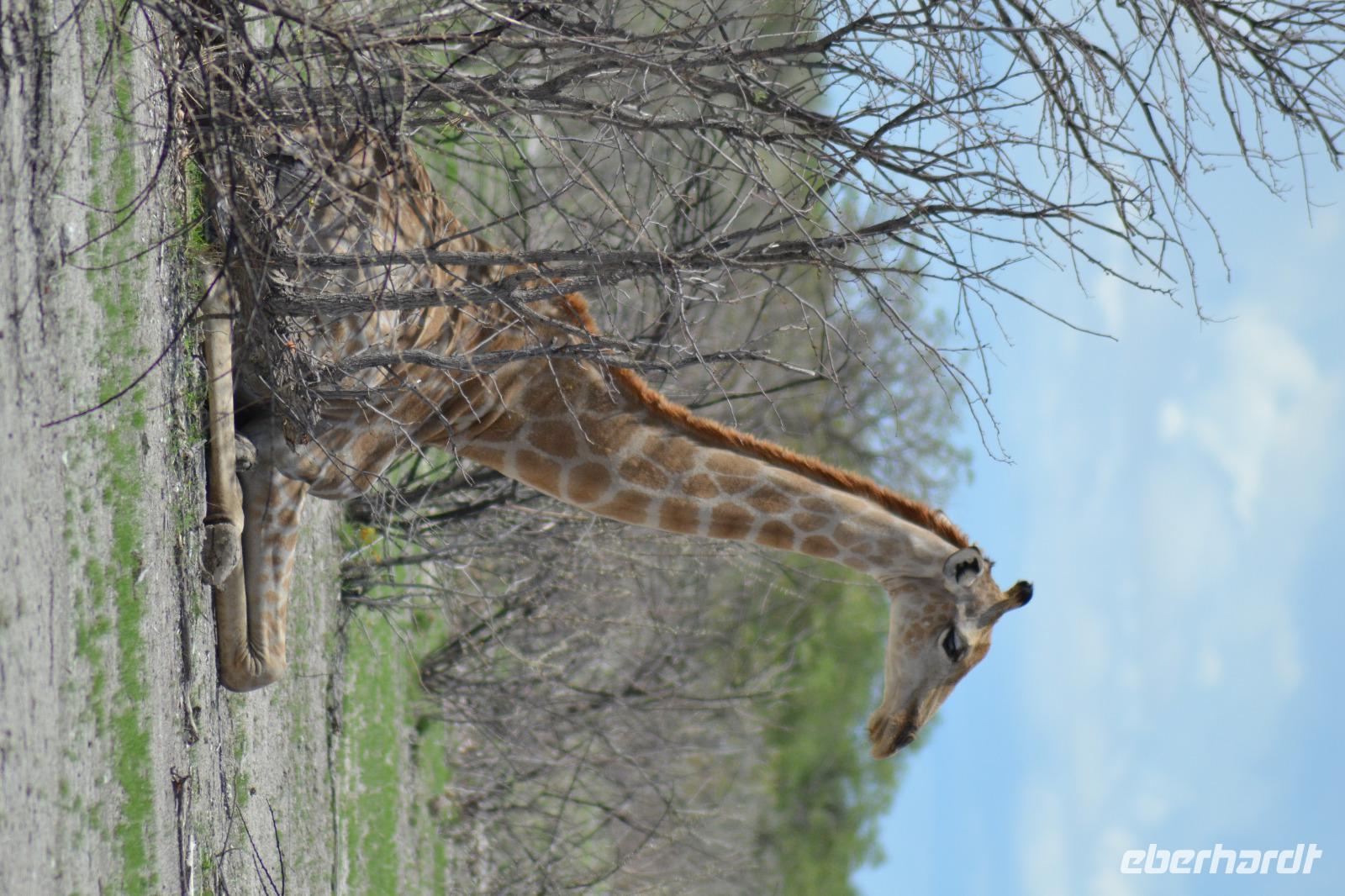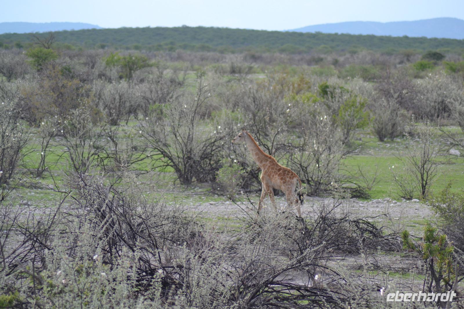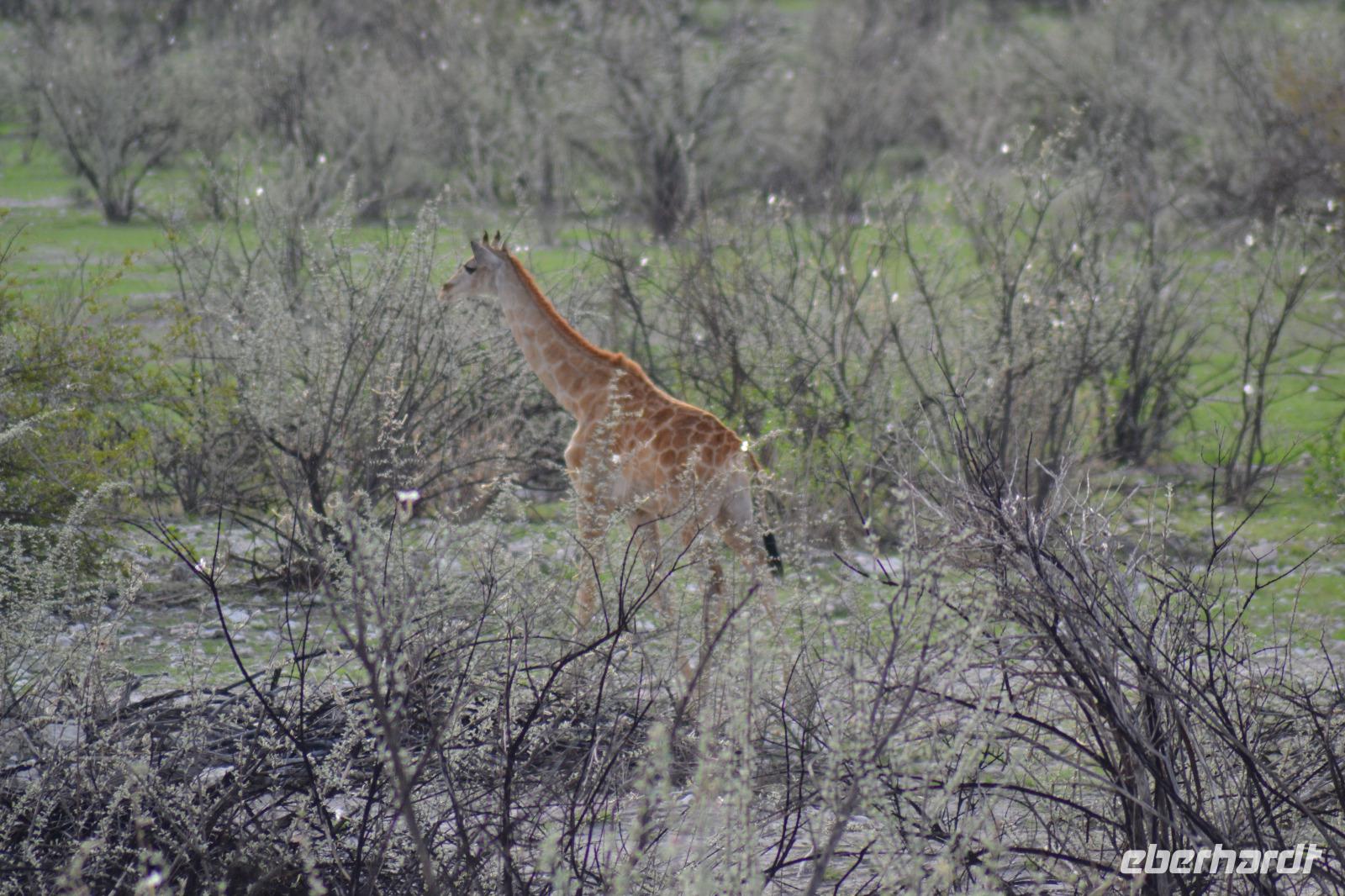 Am Morgen fuhren wir die Schotterstraße durch den Park Richtung Etosha-Nationalpark. Heute war unsere Fahrtstrecke nicht so lang und der Großteil auf einer asphaltierten Straße. Wir legten eine Pause bei der Bäckerei von Anastasia in Outjio ein. Die Namibianerin lebte eine lange Zeit in der Schweiz. Zusammen mit Ihrem Mann gründete sie die Bäckerei mit leckeren deutschen Kuchen. In dem kleinen Ort mit ungefähr 100.000 Einwohnern stöberten wir auch in einem schönen Souvenir Geschäft nach tollen Kunst Artikeln. Mittag trafen wir am Nationalpark ein und fuhren mit unserem Truck direkt auf die erste Pirschfahrt. In den letzten Tagen regnete es in den nördlichen Teil von Namibia sehr viel, sodass man leider nicht allzu viele Tiere sah. Wir gönnten es den Lebewesen, denn sie waren nicht mehr gezwungen die Wasserlöcher aufzusuchen. Dennoch sahen wir große Herden von Zebras, Springböcken, Gnus und Giraffen. Am Abend bezogen wir unsere Zimmer im Hotel und genossen ein kühles Getränk, sowie ein leckeres Buffet auf der Sundowner Terrasse.