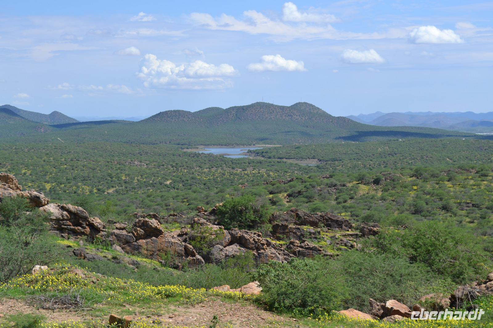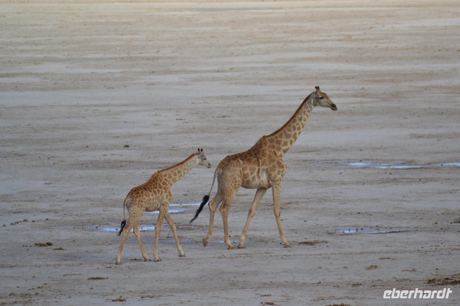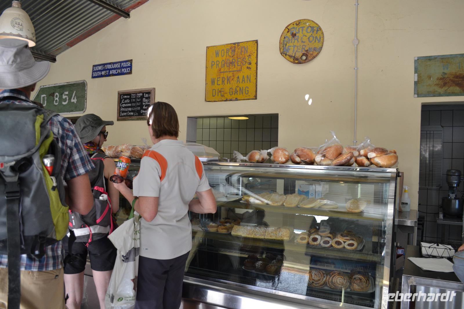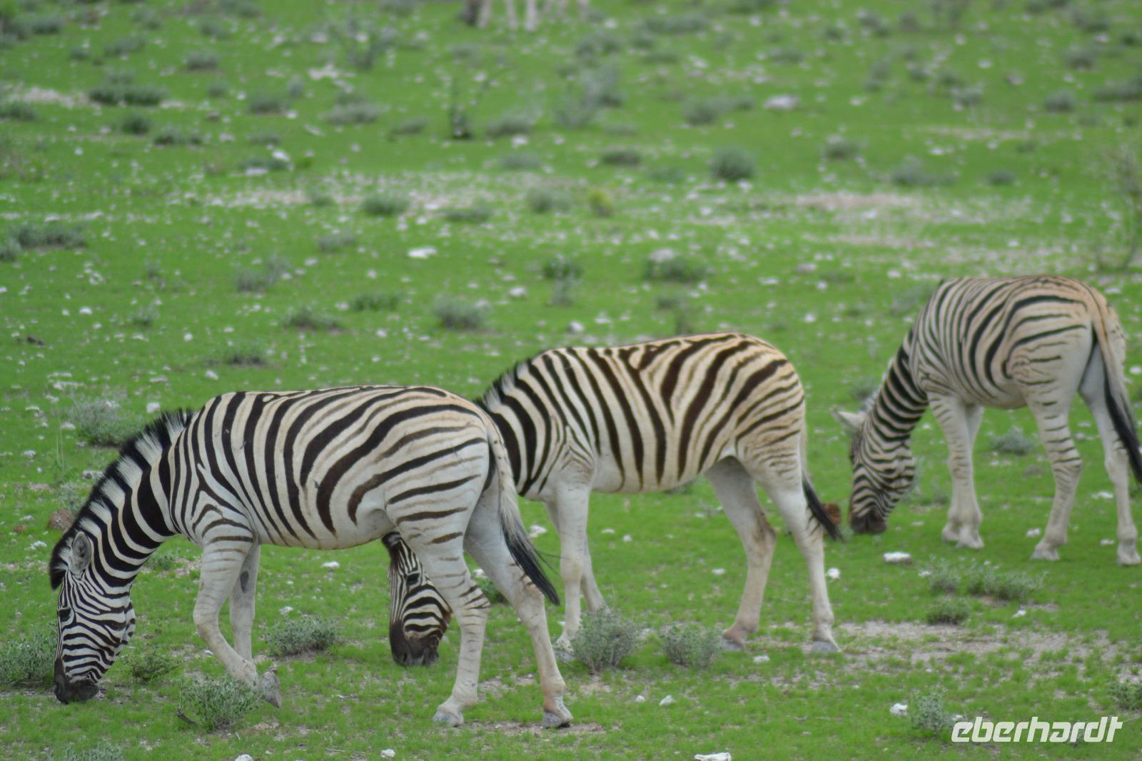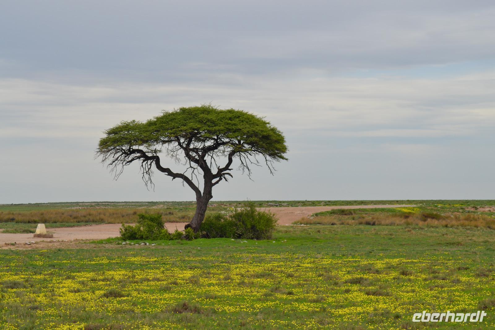 Am Morgen fuhren wir die Schotterstraße durch den Park Richtung Etosha-Nationalpark. Heute war unsere Fahrtstrecke nicht so lang und der Großteil auf einer asphaltierten Straße. Wir legten eine Pause bei der Bäckerei von Anastasia in Outjio ein. Die Namibianerin lebte eine lange Zeit in der Schweiz. Zusammen mit Ihrem Mann gründete sie die Bäckerei mit leckeren deutschen Kuchen. In dem kleinen Ort mit ungefähr 100.000 Einwohnern stöberten wir auch in einem schönen Souvenir Geschäft nach tollen Kunst Artikeln. Mittag trafen wir am Nationalpark ein und fuhren mit unserem Truck direkt auf die erste Pirschfahrt. In den letzten Tagen regnete es in den nördlichen Teil von Namibia sehr viel, sodass man leider nicht allzu viele Tiere sah. Wir gönnten es den Lebewesen, denn sie waren nicht mehr gezwungen die Wasserlöcher aufzusuchen. Dennoch sahen wir große Herden von Zebras, Springböcken, Gnus und Giraffen. Am Abend bezogen wir unsere Zimmer im Hotel und genossen ein kühles Getränk, sowie ein leckeres Buffet auf der Sundowner Terrasse.