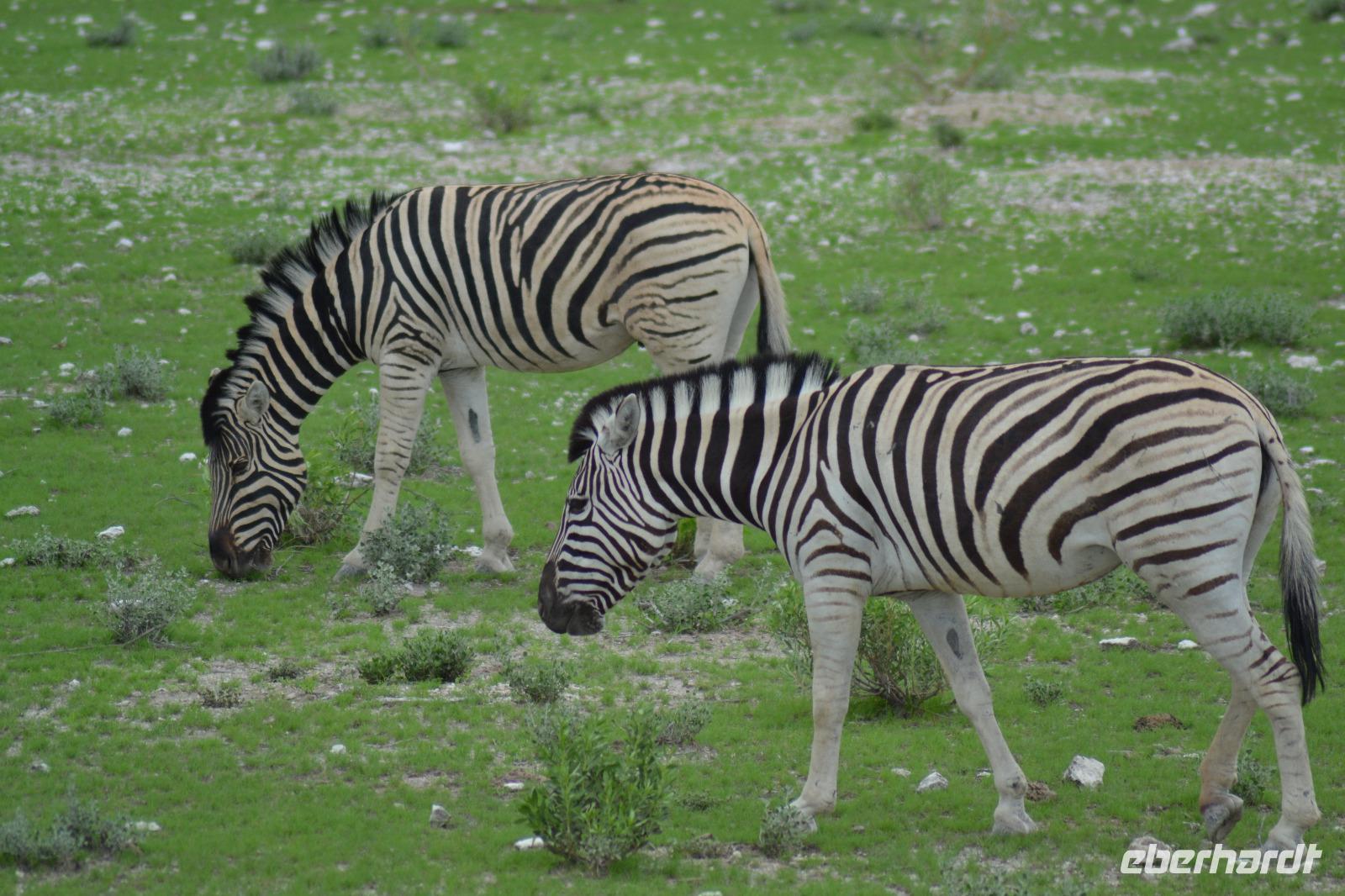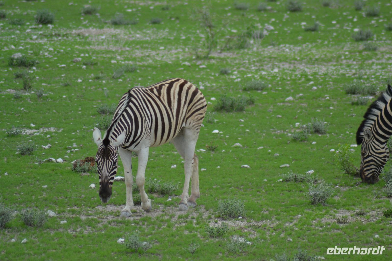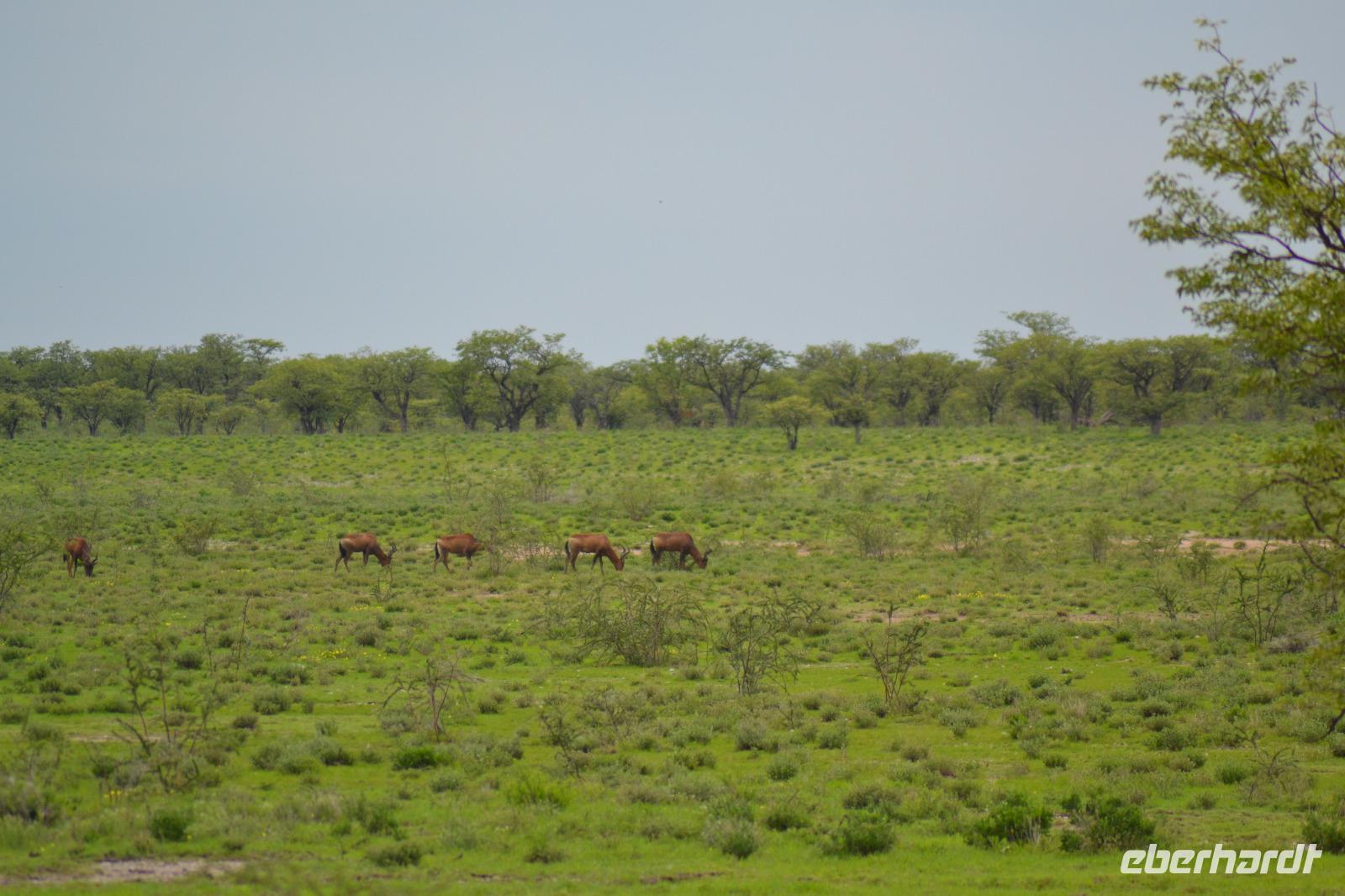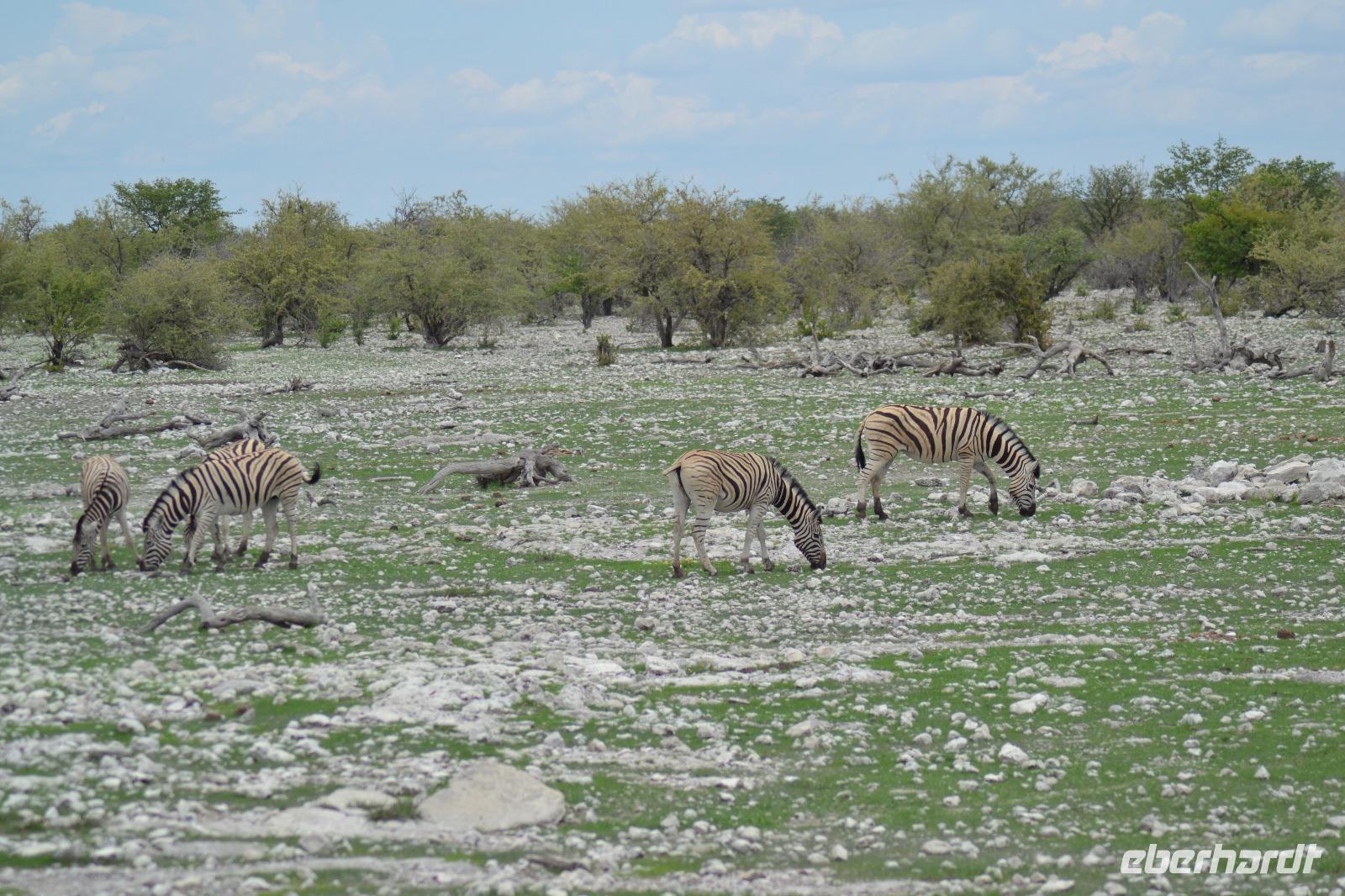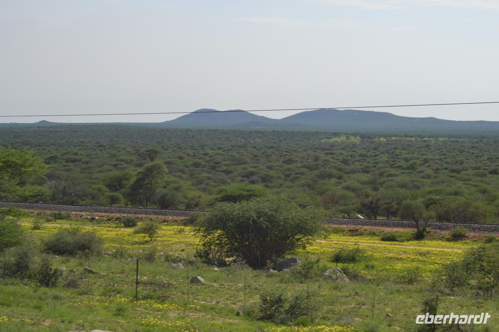 Am Morgen fuhren wir die Schotterstraße durch den Park Richtung Etosha-Nationalpark. Heute war unsere Fahrtstrecke nicht so lang und der Großteil auf einer asphaltierten Straße. Wir legten eine Pause bei der Bäckerei von Anastasia in Outjio ein. Die Namibianerin lebte eine lange Zeit in der Schweiz. Zusammen mit Ihrem Mann gründete sie die Bäckerei mit leckeren deutschen Kuchen. In dem kleinen Ort mit ungefähr 100.000 Einwohnern stöberten wir auch in einem schönen Souvenir Geschäft nach tollen Kunst Artikeln. Mittag trafen wir am Nationalpark ein und fuhren mit unserem Truck direkt auf die erste Pirschfahrt. In den letzten Tagen regnete es in den nördlichen Teil von Namibia sehr viel, sodass man leider nicht allzu viele Tiere sah. Wir gönnten es den Lebewesen, denn sie waren nicht mehr gezwungen die Wasserlöcher aufzusuchen. Dennoch sahen wir große Herden von Zebras, Springböcken, Gnus und Giraffen. Am Abend bezogen wir unsere Zimmer im Hotel und genossen ein kühles Getränk, sowie ein leckeres Buffet auf der Sundowner Terrasse.