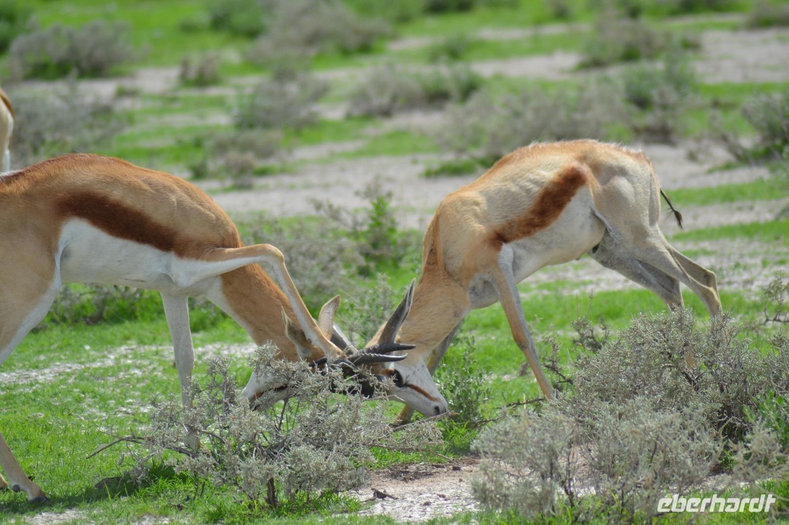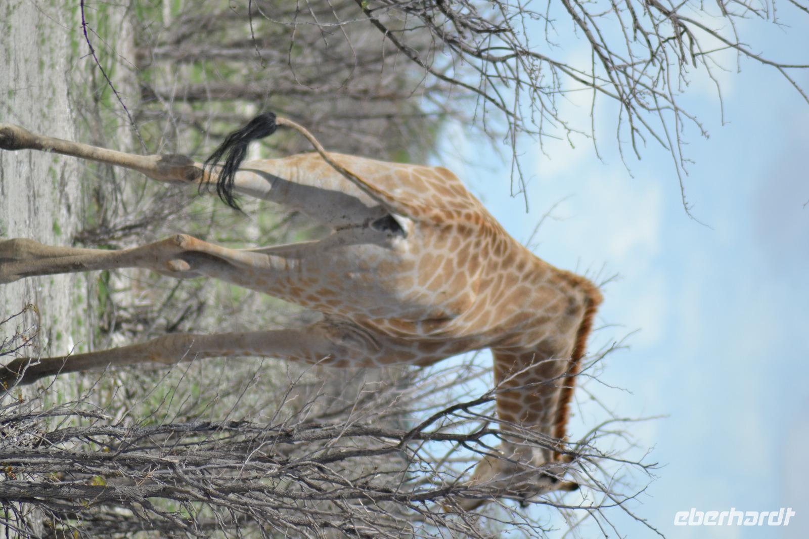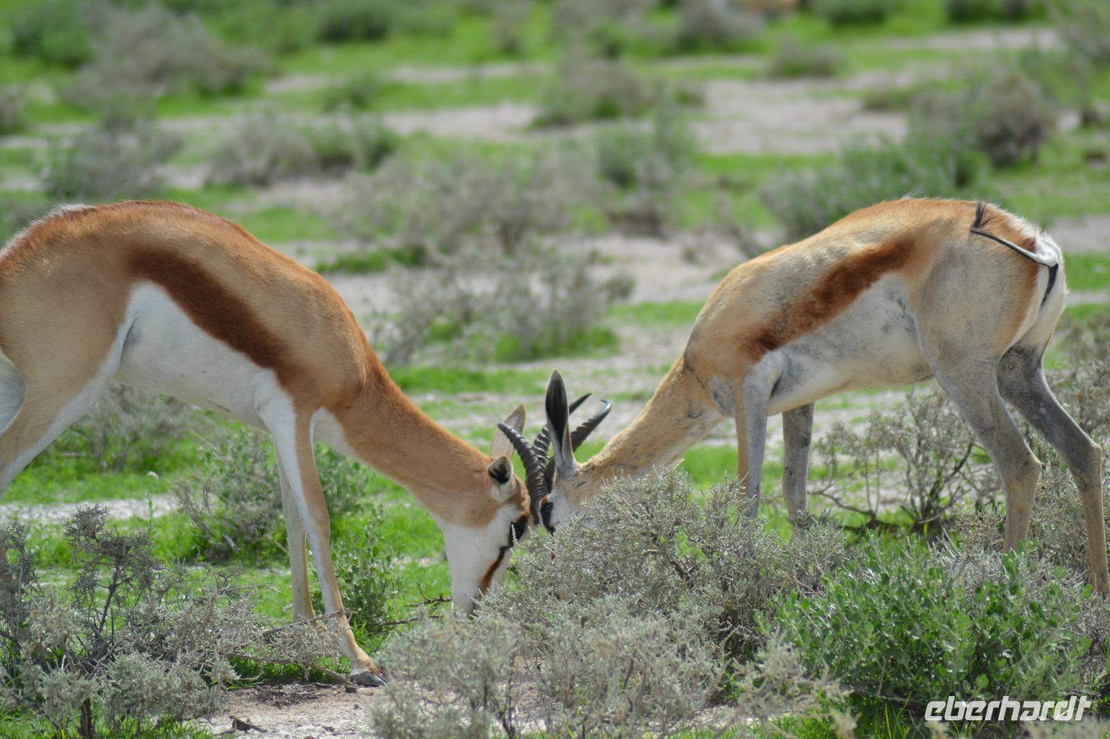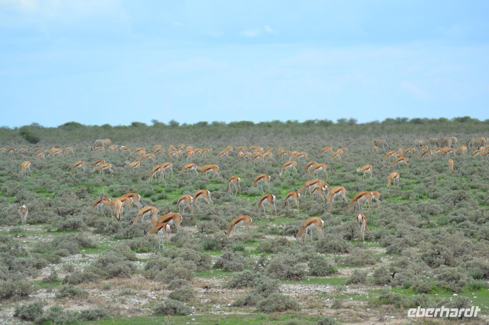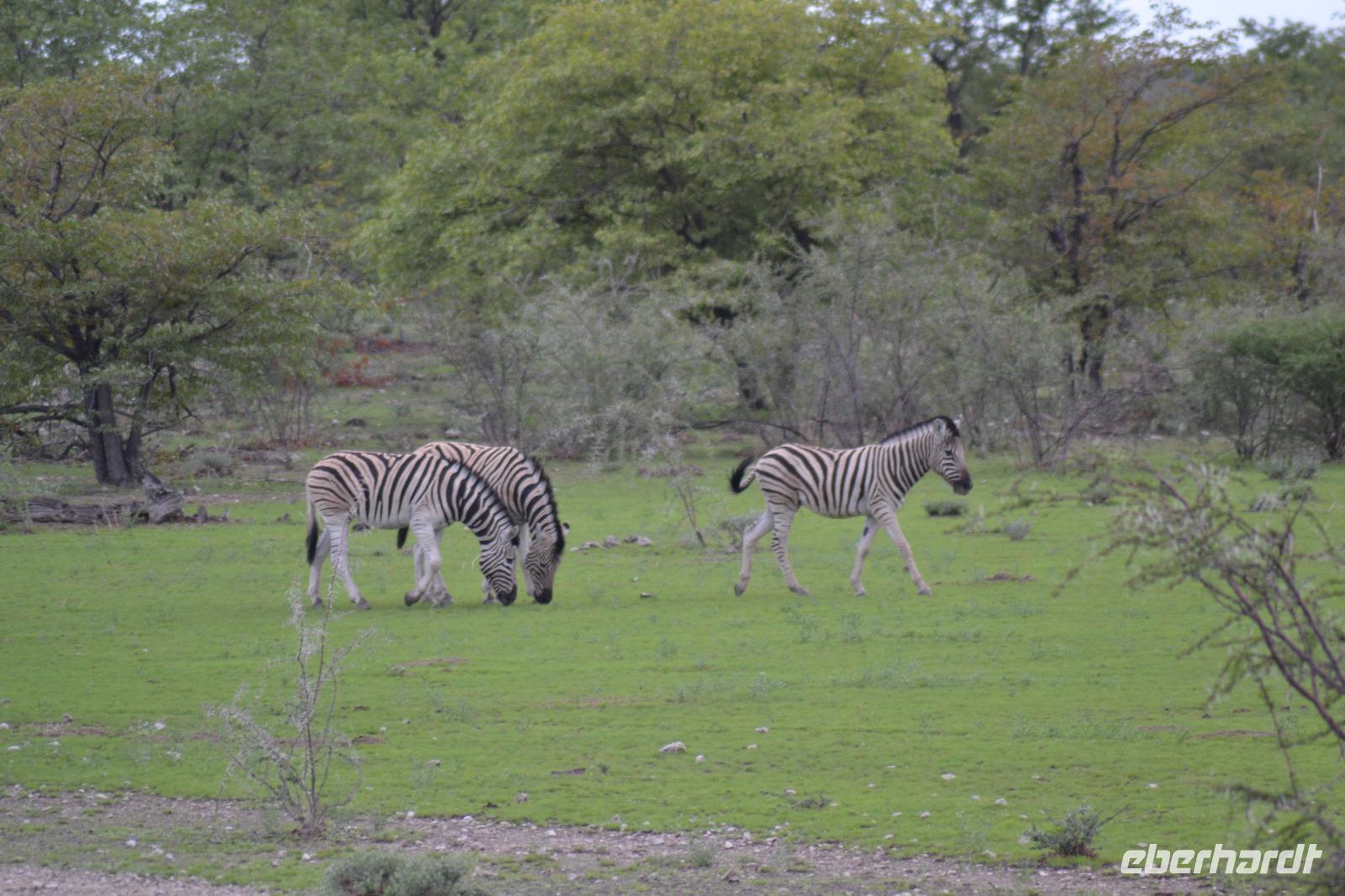 Am Morgen fuhren wir die Schotterstraße durch den Park Richtung Etosha-Nationalpark. Heute war unsere Fahrtstrecke nicht so lang und der Großteil auf einer asphaltierten Straße. Wir legten eine Pause bei der Bäckerei von Anastasia in Outjio ein. Die Namibianerin lebte eine lange Zeit in der Schweiz. Zusammen mit Ihrem Mann gründete sie die Bäckerei mit leckeren deutschen Kuchen. In dem kleinen Ort mit ungefähr 100.000 Einwohnern stöberten wir auch in einem schönen Souvenir Geschäft nach tollen Kunst Artikeln. Mittag trafen wir am Nationalpark ein und fuhren mit unserem Truck direkt auf die erste Pirschfahrt. In den letzten Tagen regnete es in den nördlichen Teil von Namibia sehr viel, sodass man leider nicht allzu viele Tiere sah. Wir gönnten es den Lebewesen, denn sie waren nicht mehr gezwungen die Wasserlöcher aufzusuchen. Dennoch sahen wir große Herden von Zebras, Springböcken, Gnus und Giraffen. Am Abend bezogen wir unsere Zimmer im Hotel und genossen ein kühles Getränk, sowie ein leckeres Buffet auf der Sundowner Terrasse.